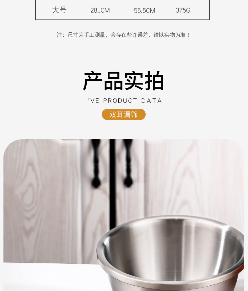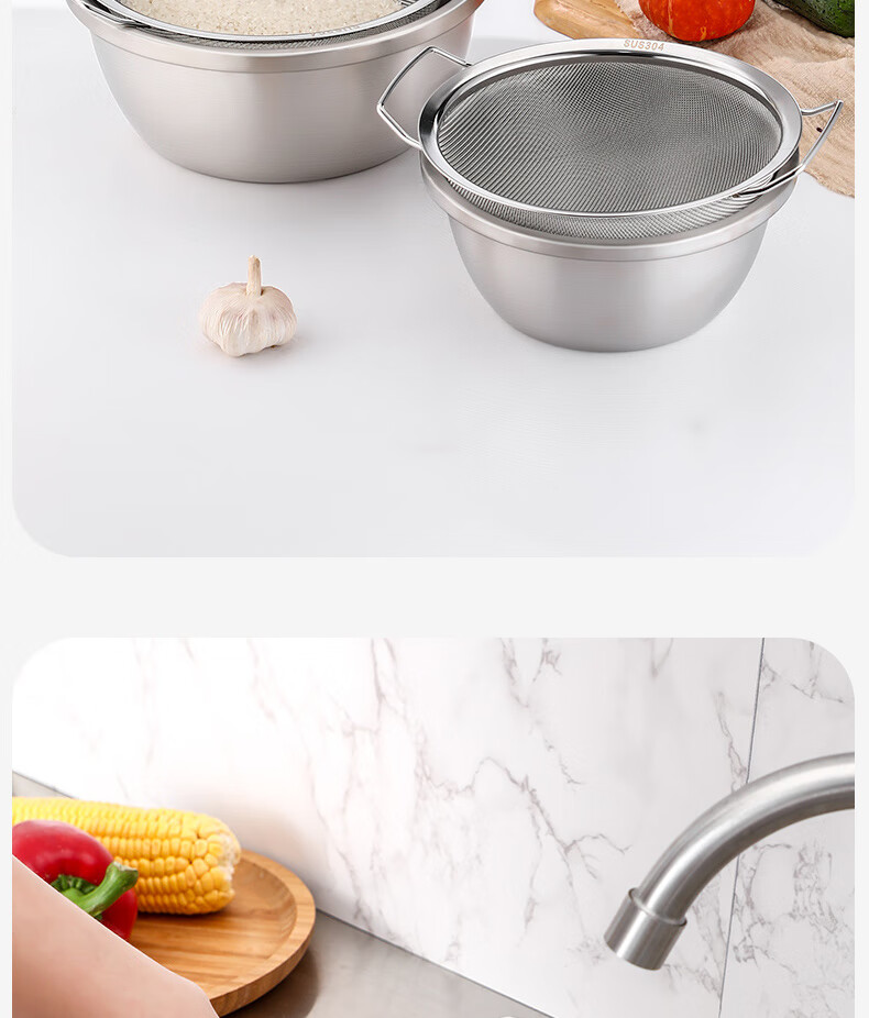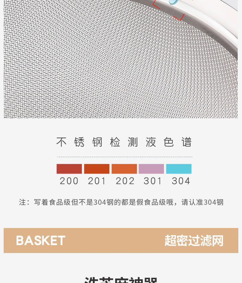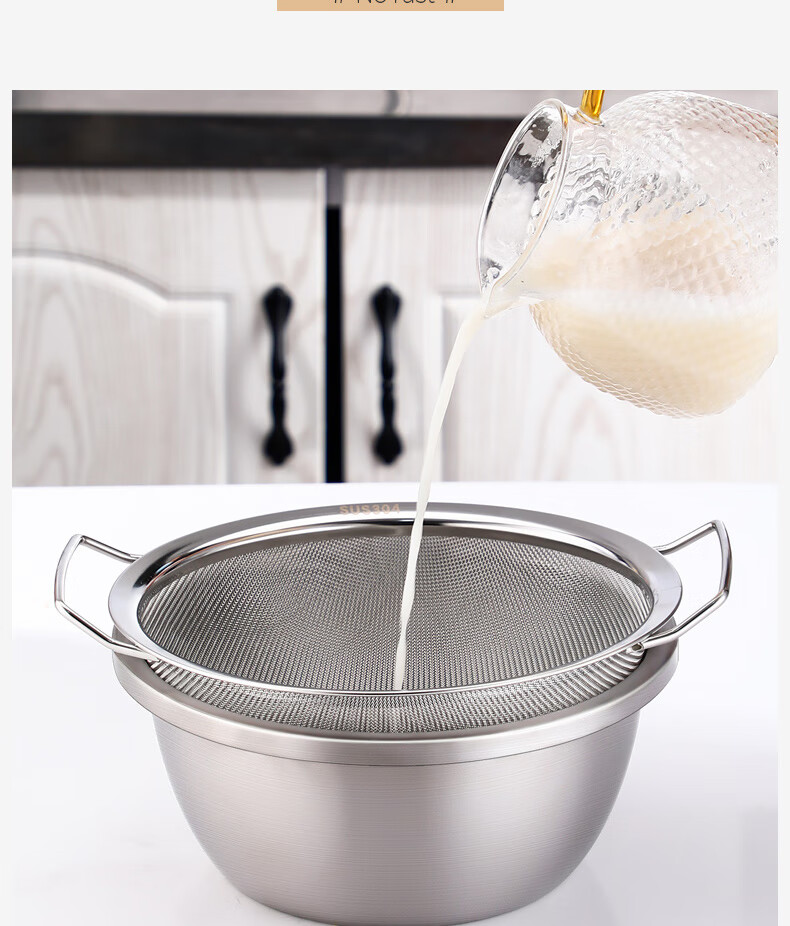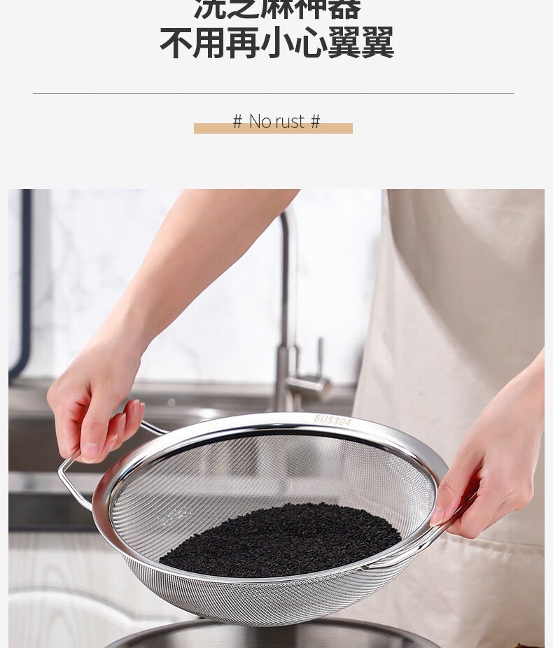 HAIDI 304 stainless steel sesame washing artifact rice basket fine hole rice washing sieve drain basket drain basin drain rice sieve household large 304 double ear rice basket no specifications