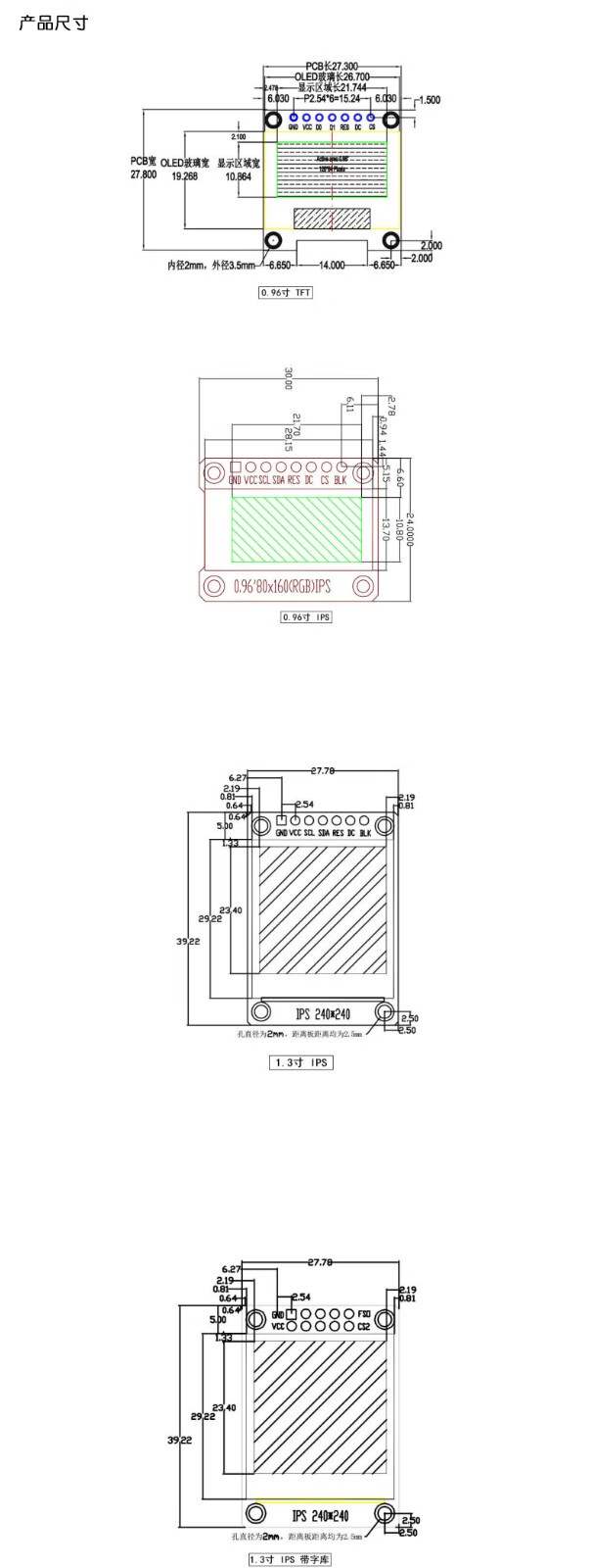 HD IPS LCD screen 7/8/10 pins 0.96/1.14/1.3 inch TFT LCD display module 0.96 inch TFT screen module/ST7735-7PIN