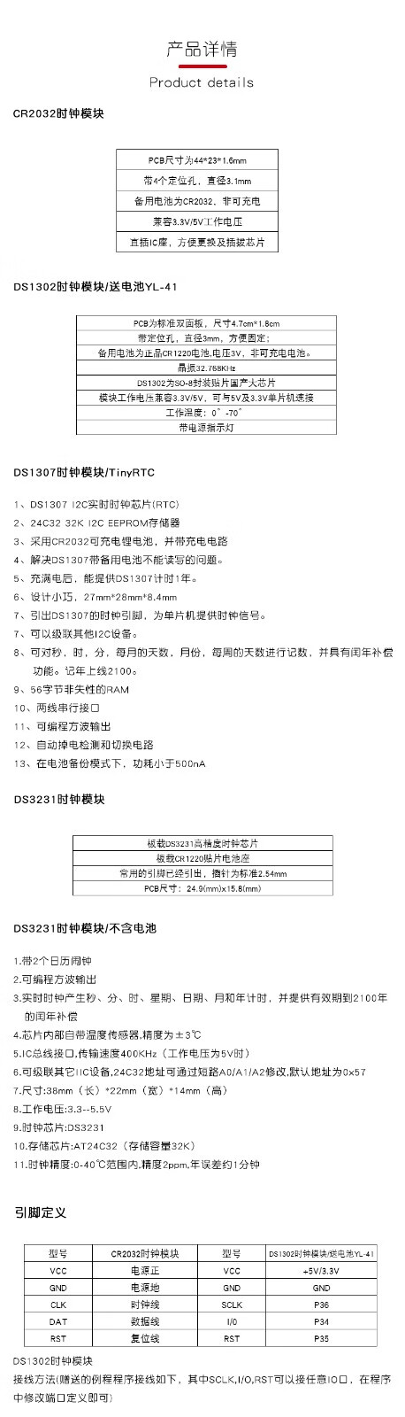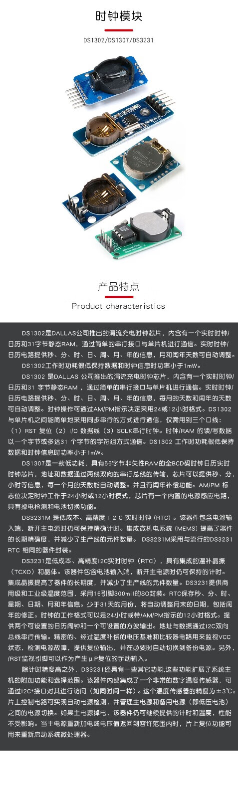 Real-time clock module high-precision CR2032 battery/microcontroller DS1302/1307/3231 clock CR2032 clock module/battery not included