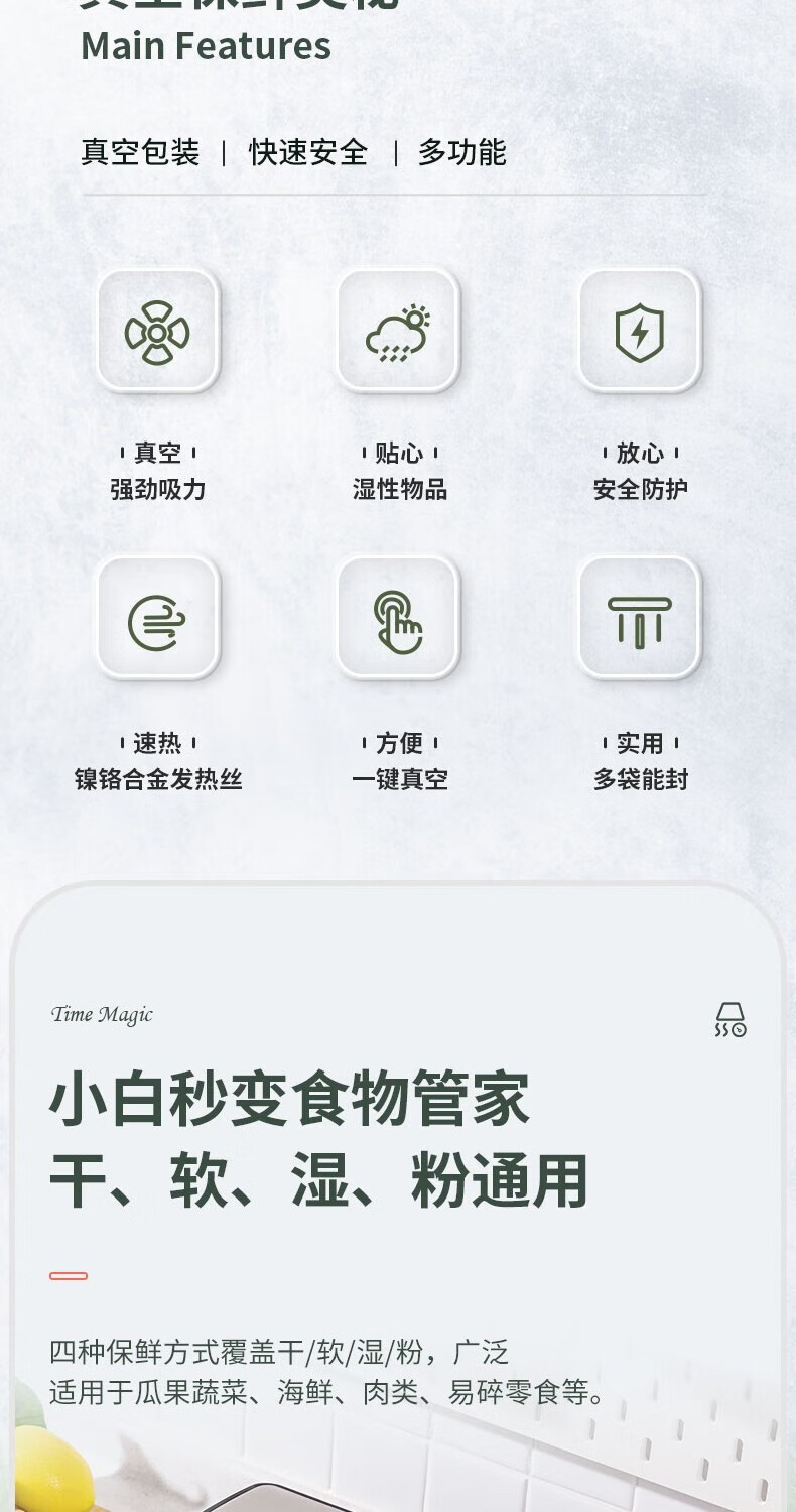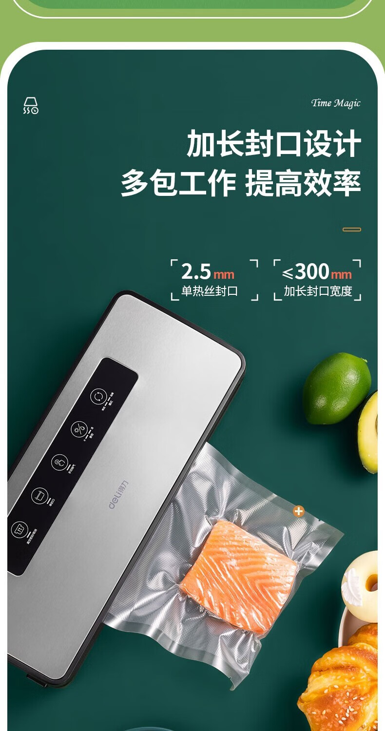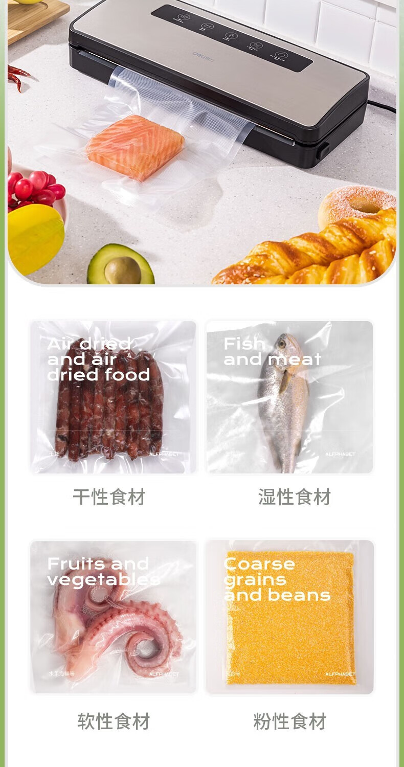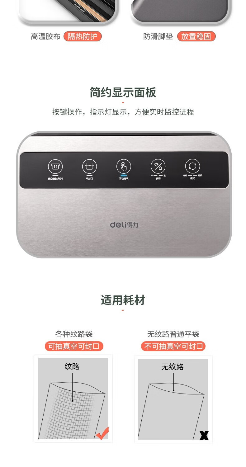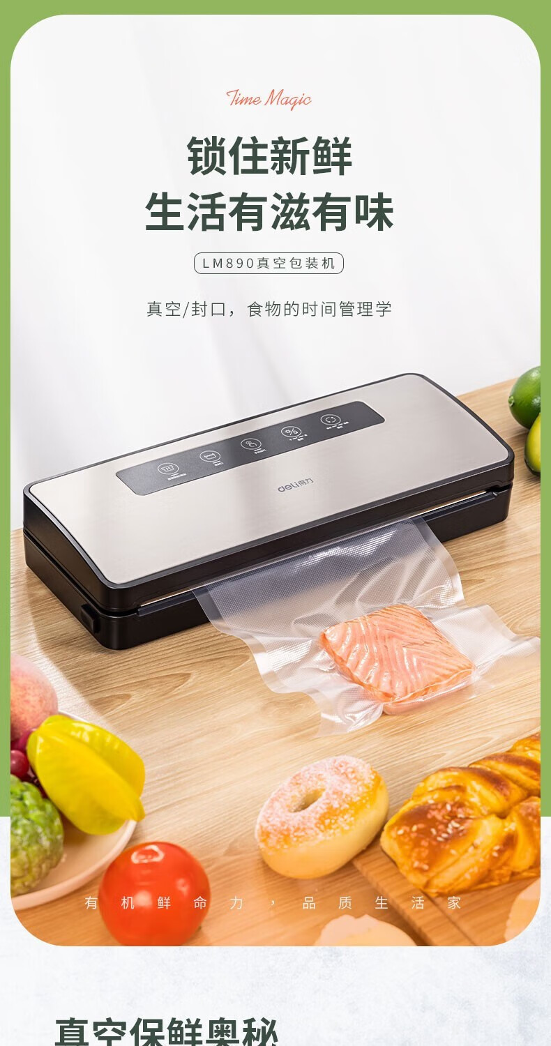 Deli vacuum sealing packaging machine, fully automatic household vacuum machine, food sealing machine, commercial food dry goods vacuum plastic sealing machine, dry and wet dual-use sealing and fresh-keeping packaging machine, silver standard + 50 30*40cm vacuum bags