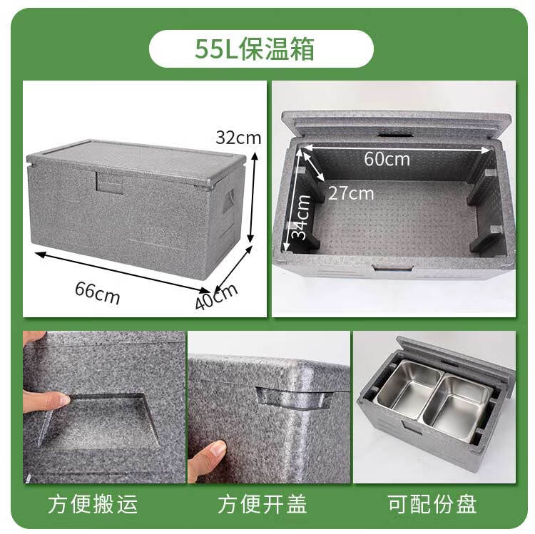 Warm Ice Bear Insulated Box Foam Box EPP Takeaway Box with Handle Food Grade Lunch Box Commercial Stall Insulated Refrigerated Fresh Box 65L New Handleless