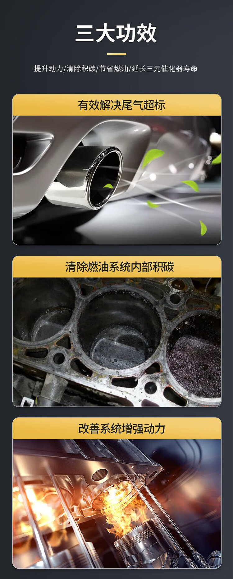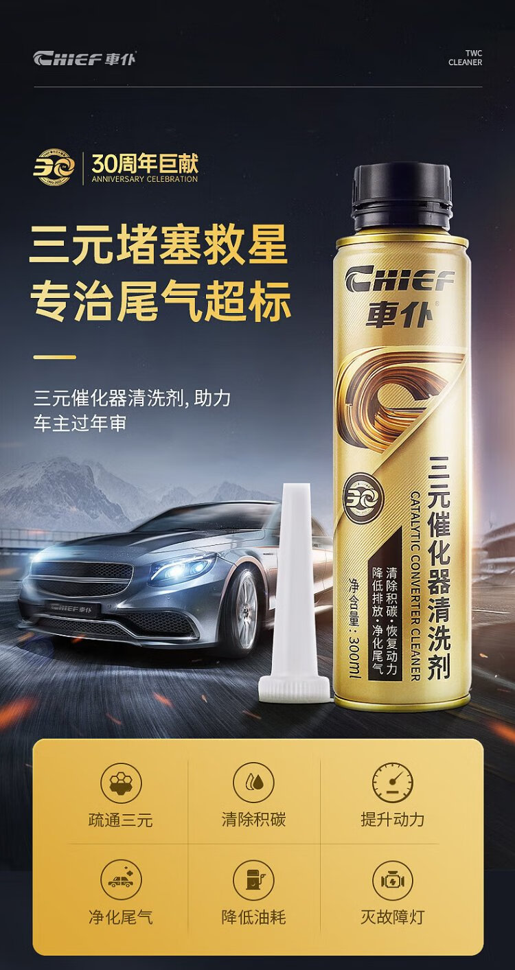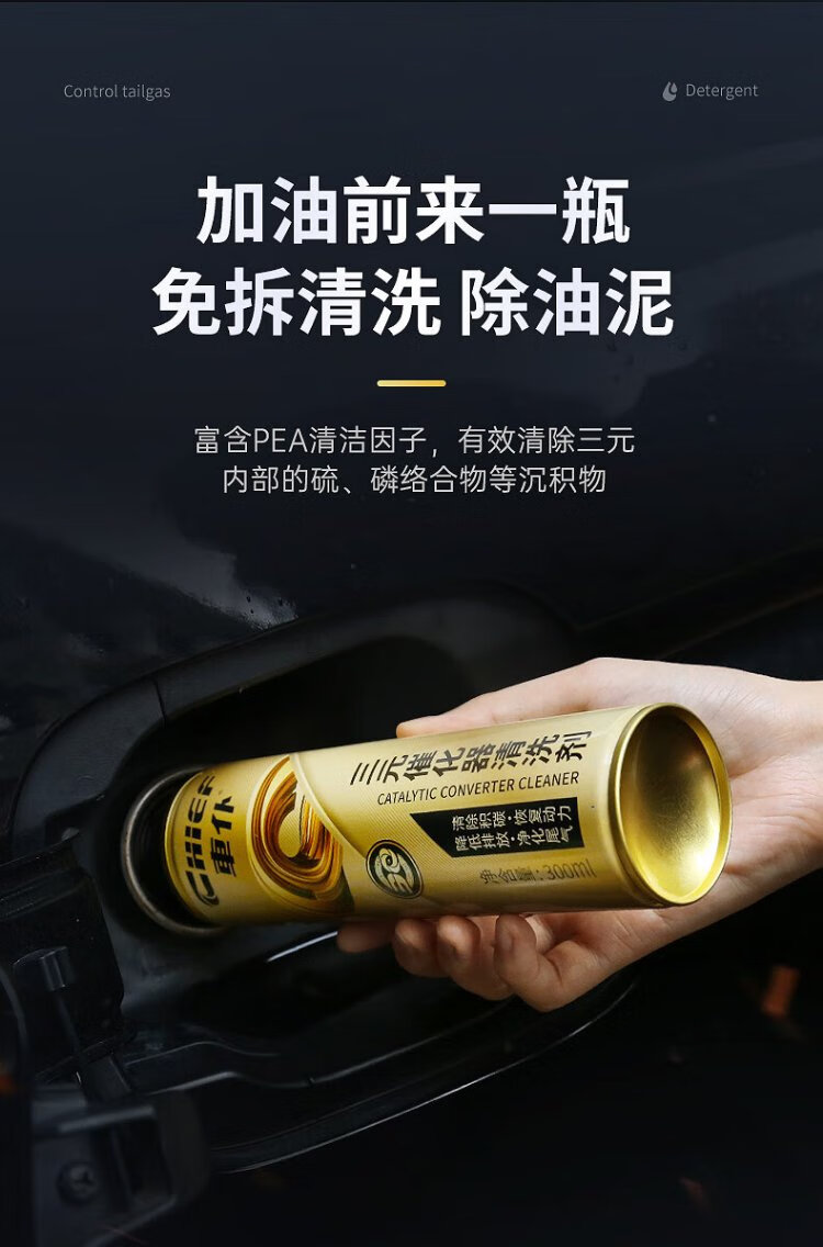 Cheval 300ml large capacity Cheval gold three-way catalytic cleaner to remove carbon deposits inside the engine fuel treasure gold three-way catalytic cleaner (3 bottles)