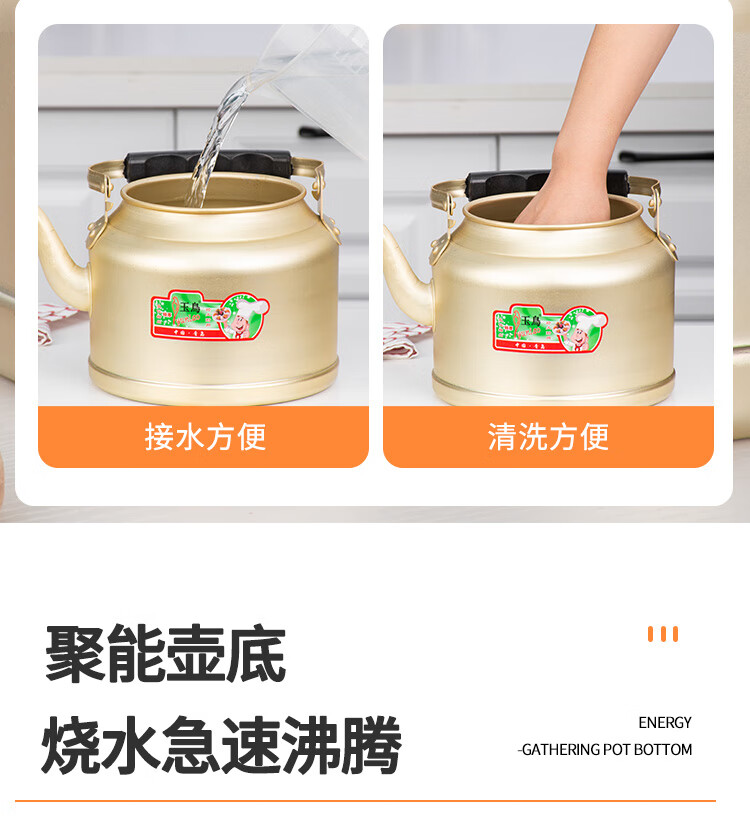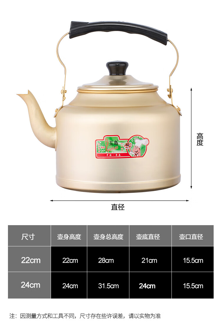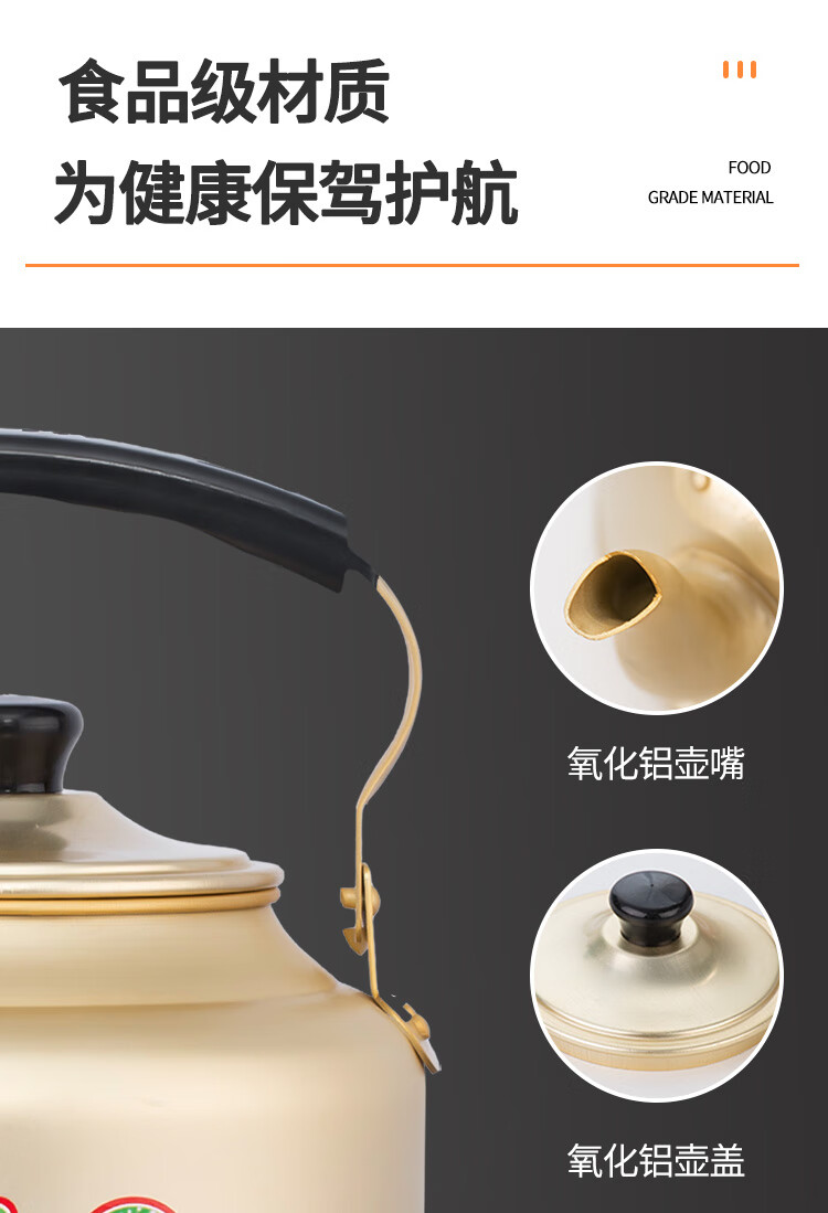 Yuniao oxidized yellow aluminum kettle aluminum kettle aluminum teapot old-fashioned kettle household large capacity hot water kettle coal stove gas 22cm extra thick yellow aluminum kettle 4L