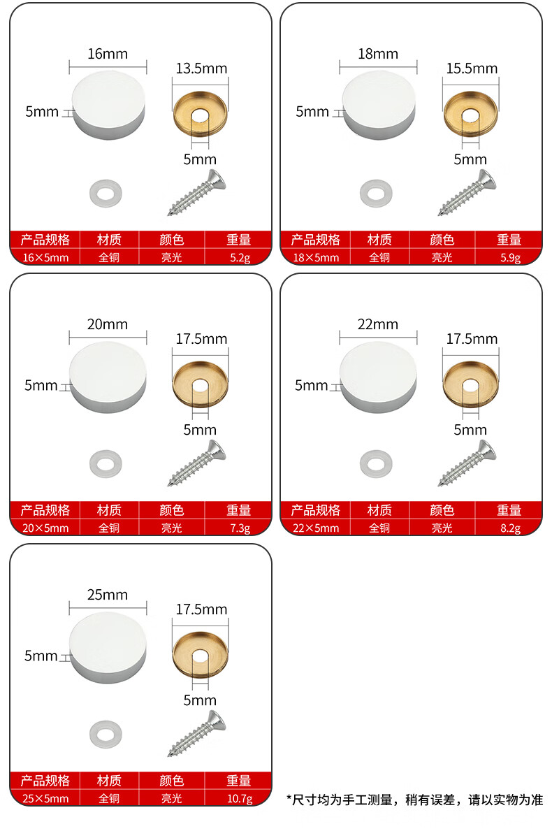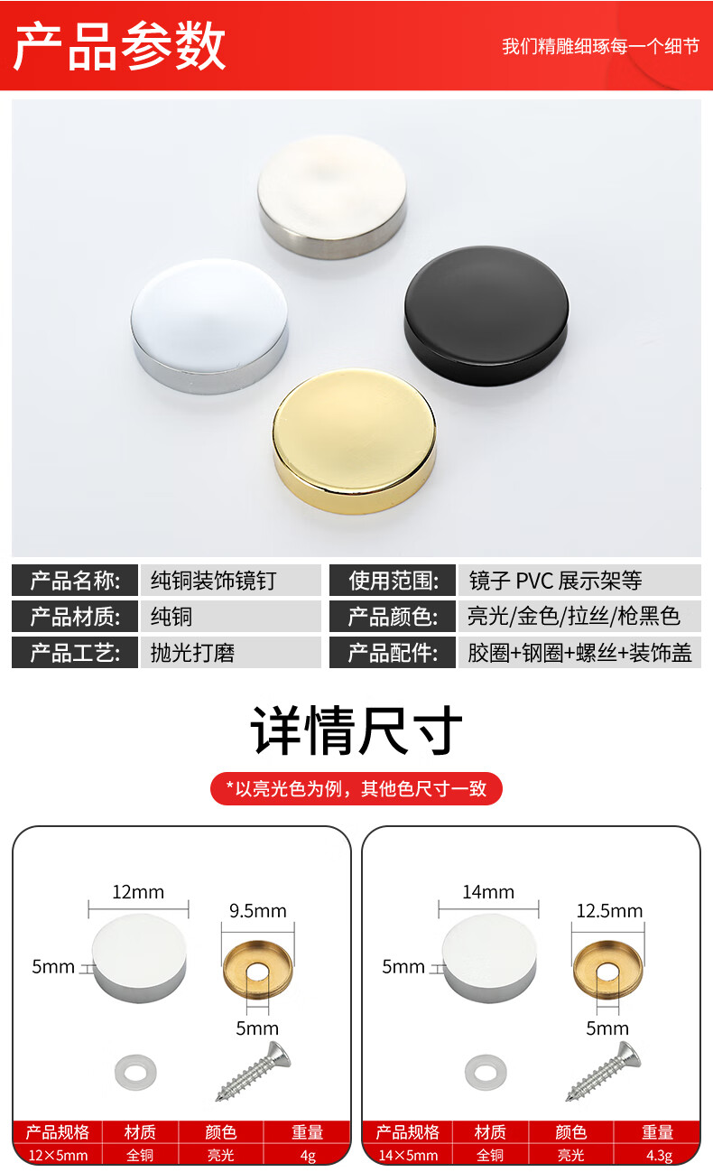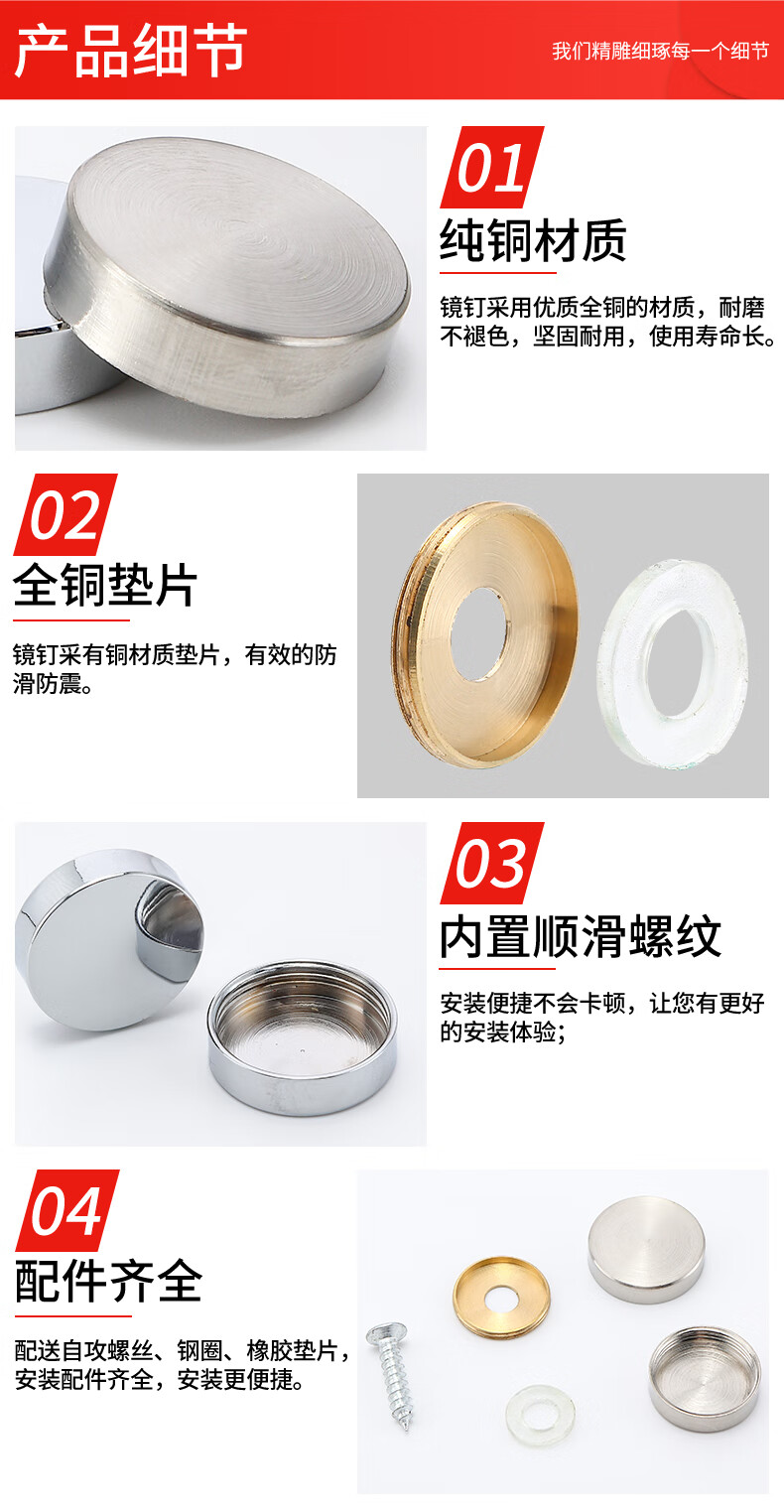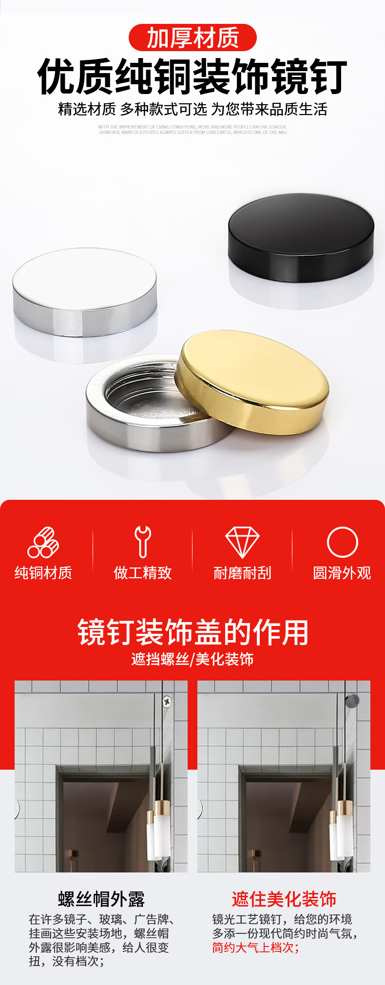 Yali 304 stainless steel mirror nails decorative nails advertising glass nails mirror fixing nails decorative cap screws acrylic brushed color diameter 16mm (pack of 8)