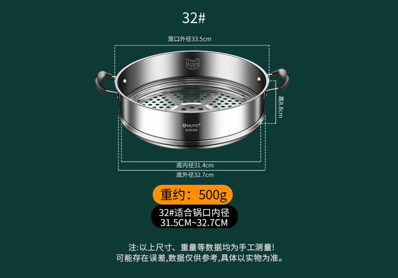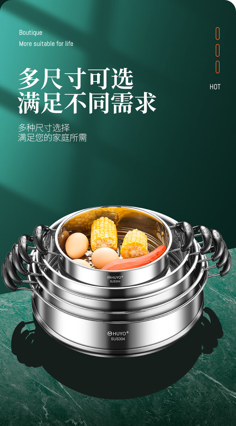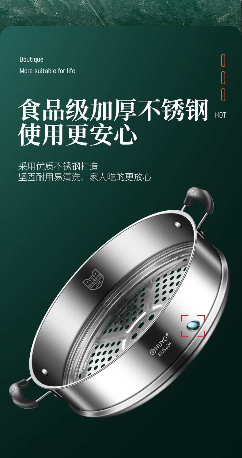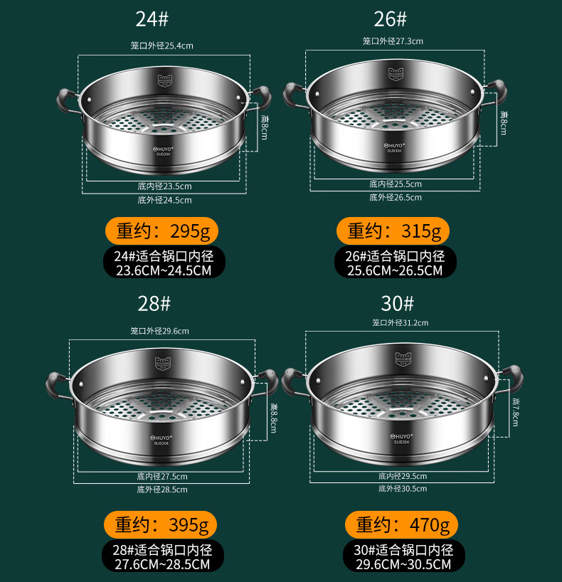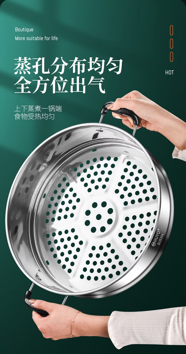 HUYO German 304 stainless steel steam grid household ear steamer rice cooker universal rack food grade wok thickened steamer steam grid suitable for pot inner diameter 25.6~26.5cm