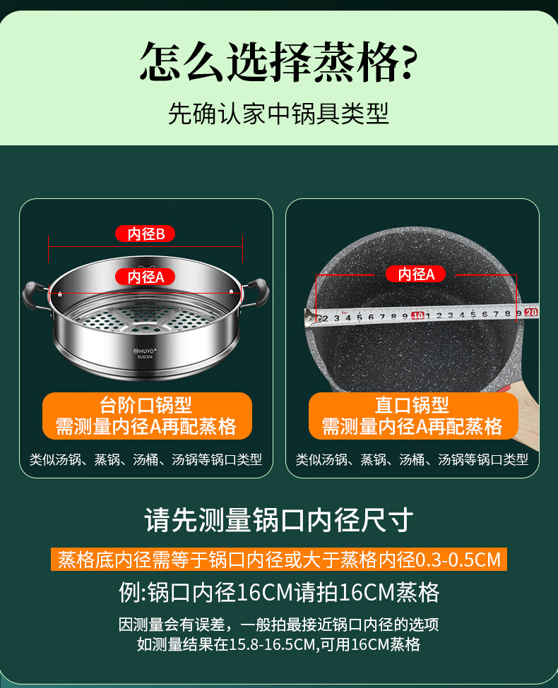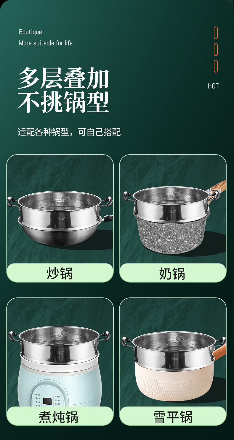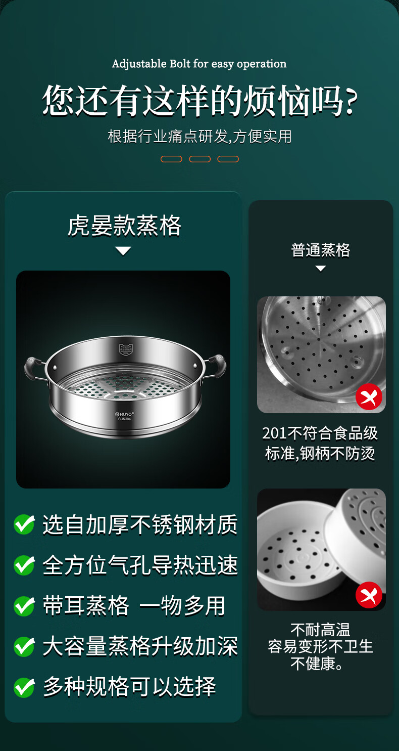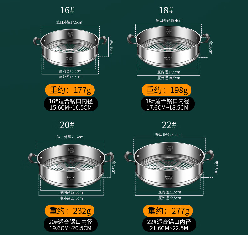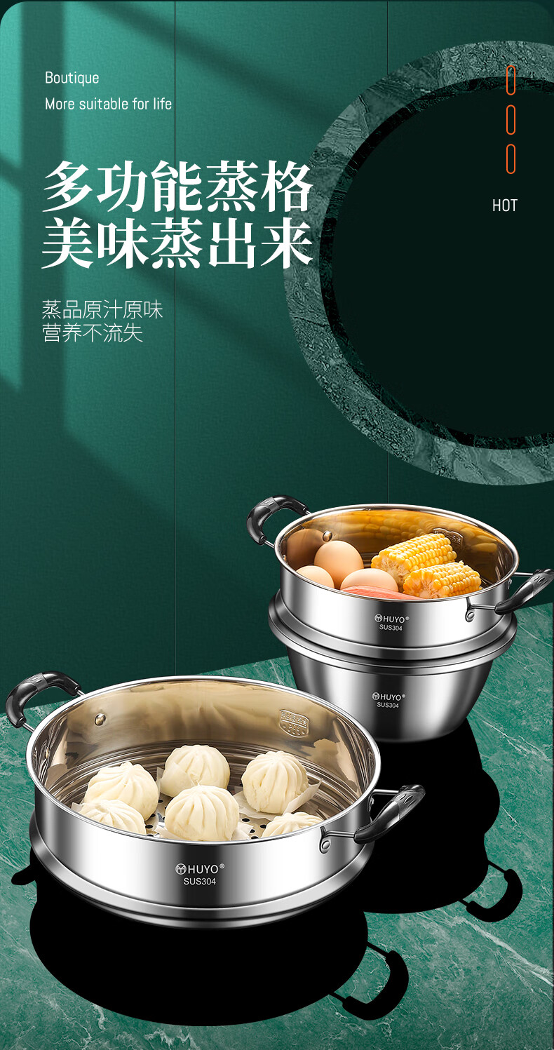 HUYO German 304 stainless steel steam grid household ear steamer rice cooker universal rack food grade wok thickened steamer steam grid suitable for pot inner diameter 25.6~26.5cm