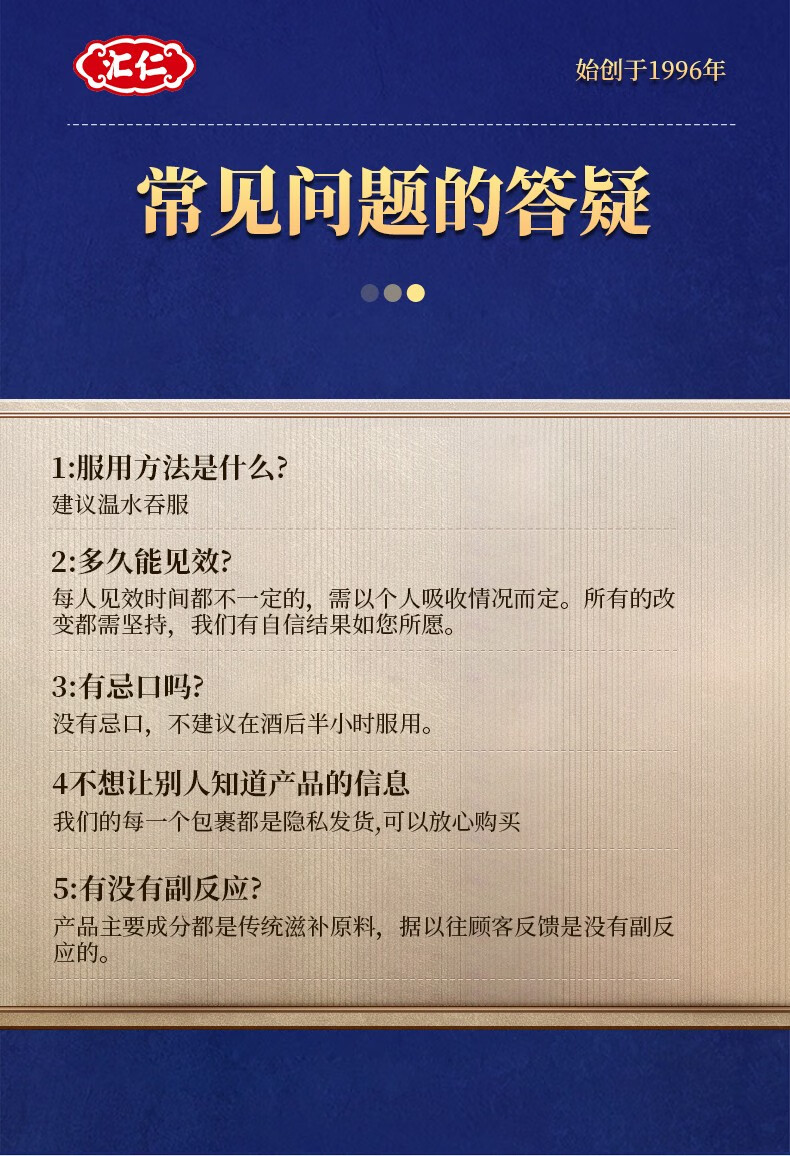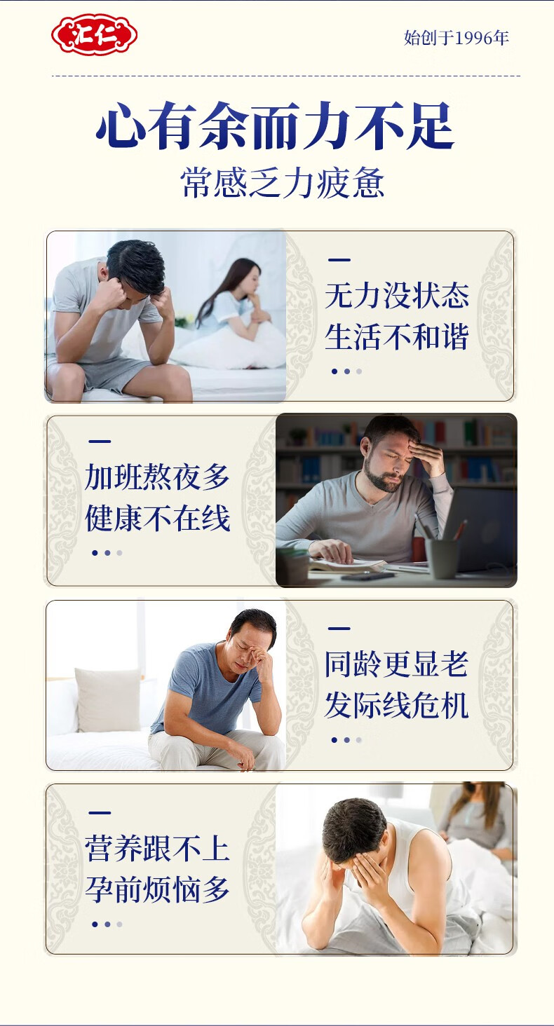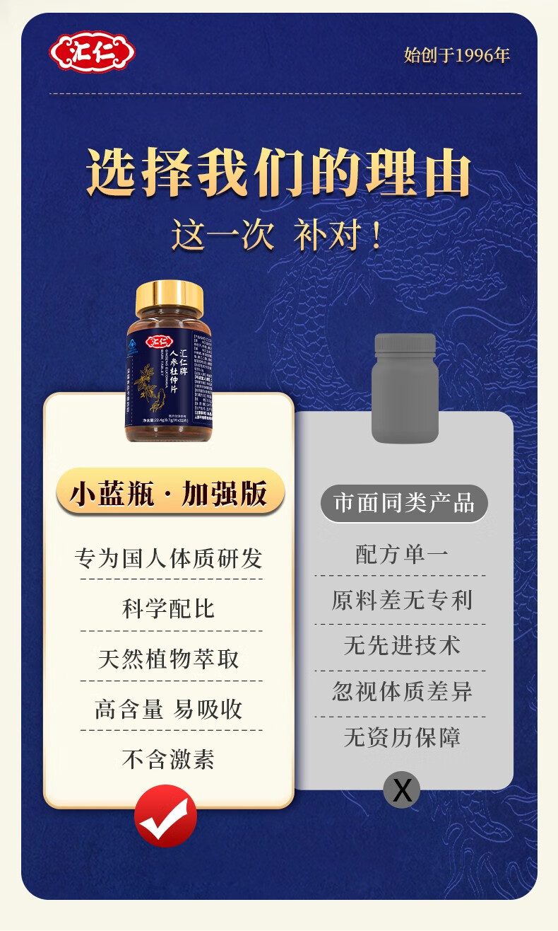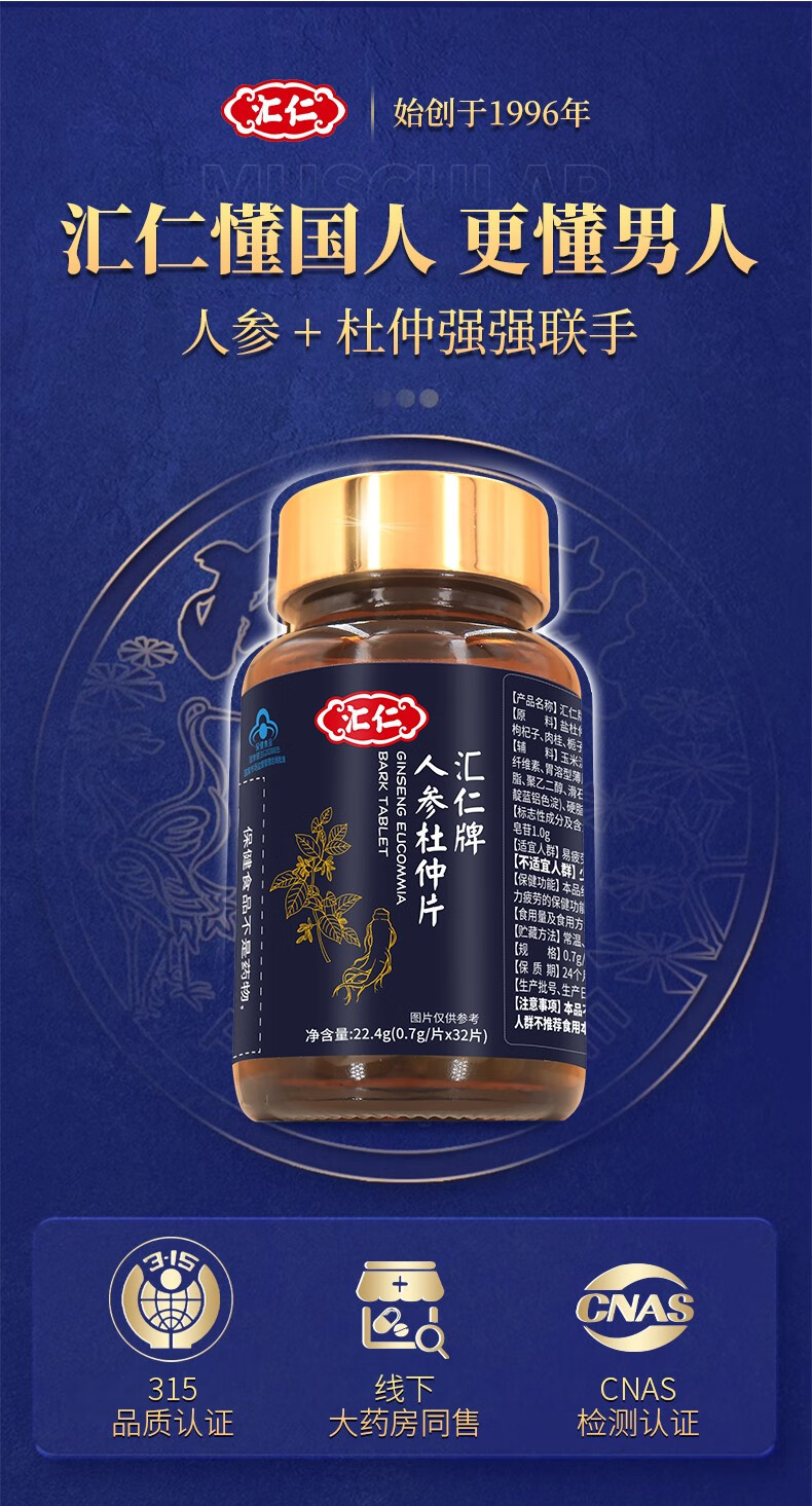 Huiren Pharmaceutical's Ginseng and Eucommia Tablets are oral anti-fatigue health products for men to relieve physical fatigue. Three bottles will get one bottle of the original product (4 bottles for real delivery). Over 90% of customers choose it.