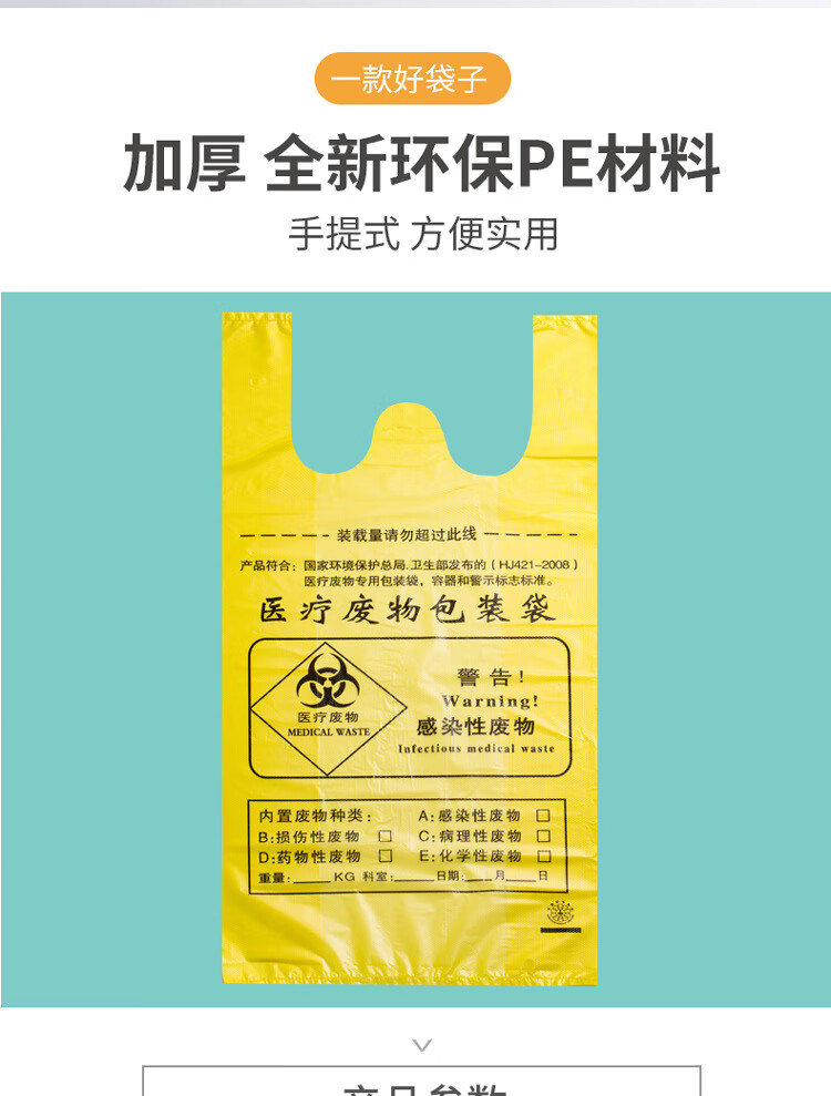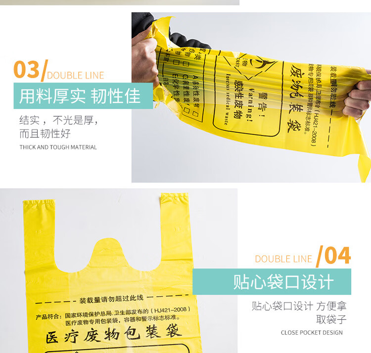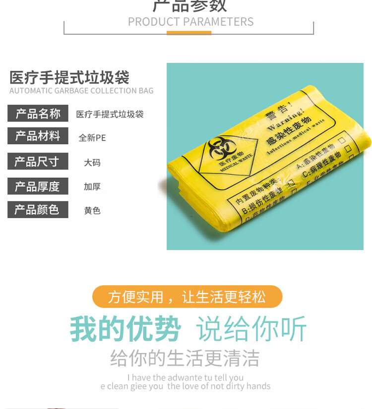 Yellow medical waste bag thickened portable clinic hospital medical waste garbage bag large portable 80*90 (100 pieces)