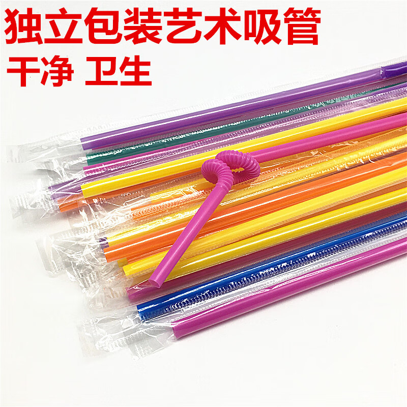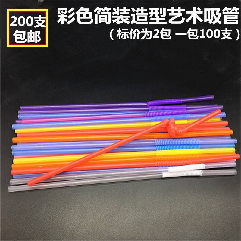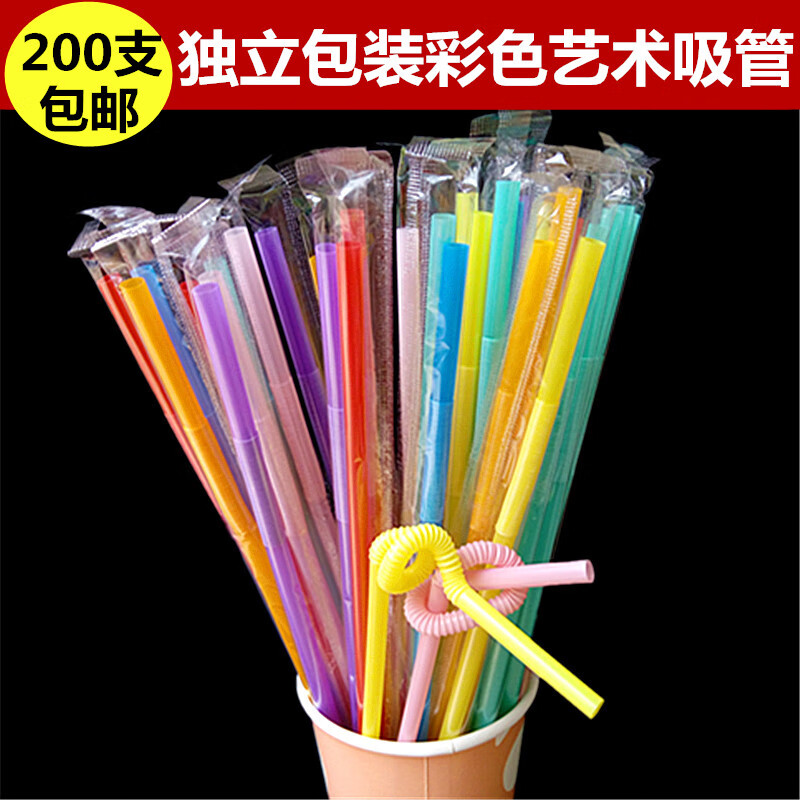Jidaocook disposable straws, individually packaged, colorful, artistic straws, elbow juice drink slender straws, colored, individually packaged, 200 pieces