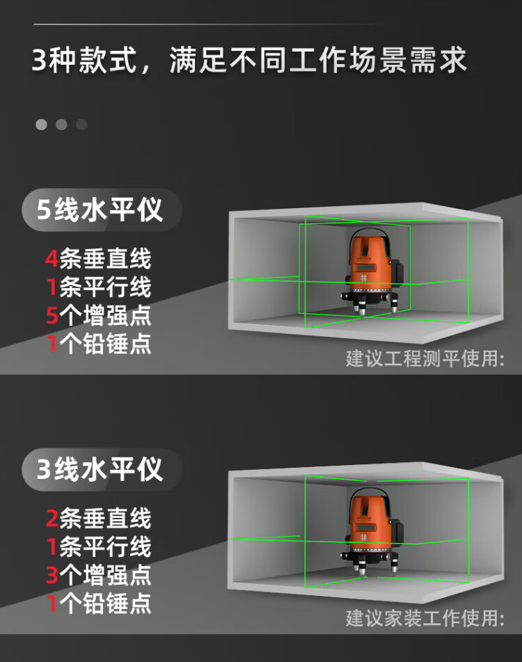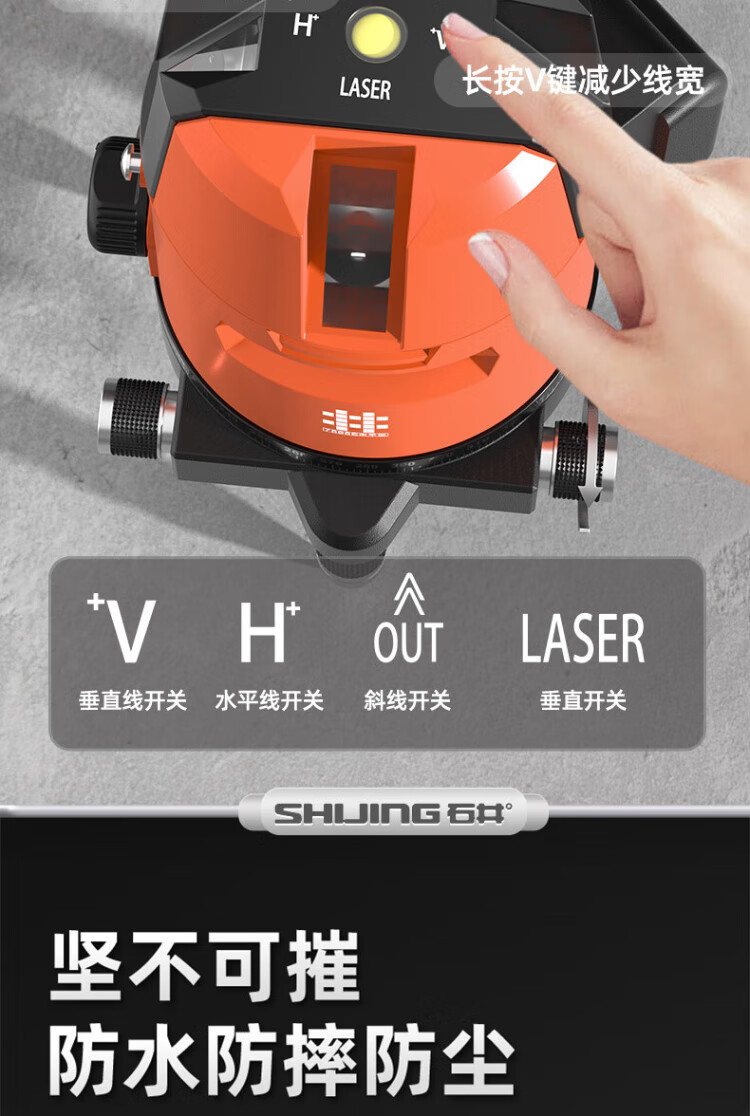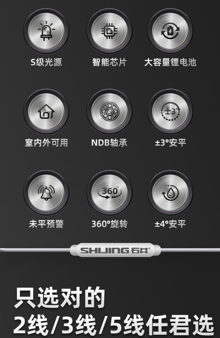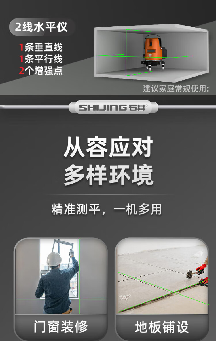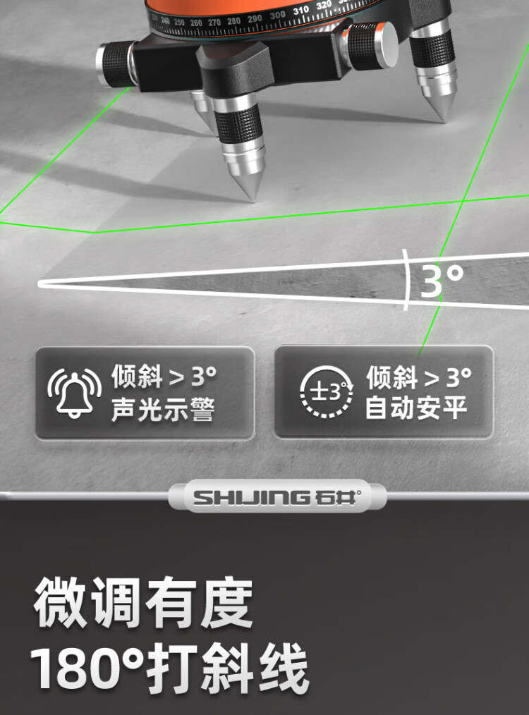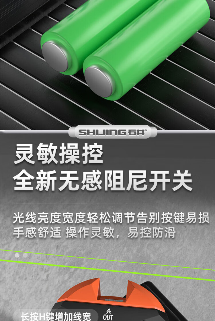 Ishijing (SHIJING) level green light floor-sticking instrument infrared 2-line high-precision leveling instrument 3-line laser level 5-line level 3600 mAh - rechargeable battery