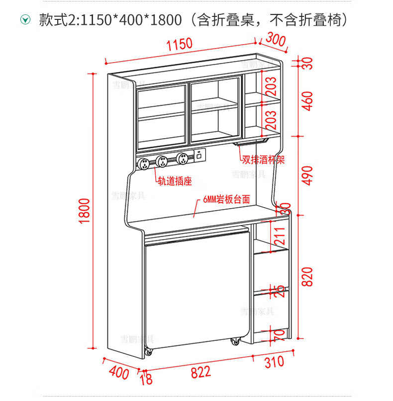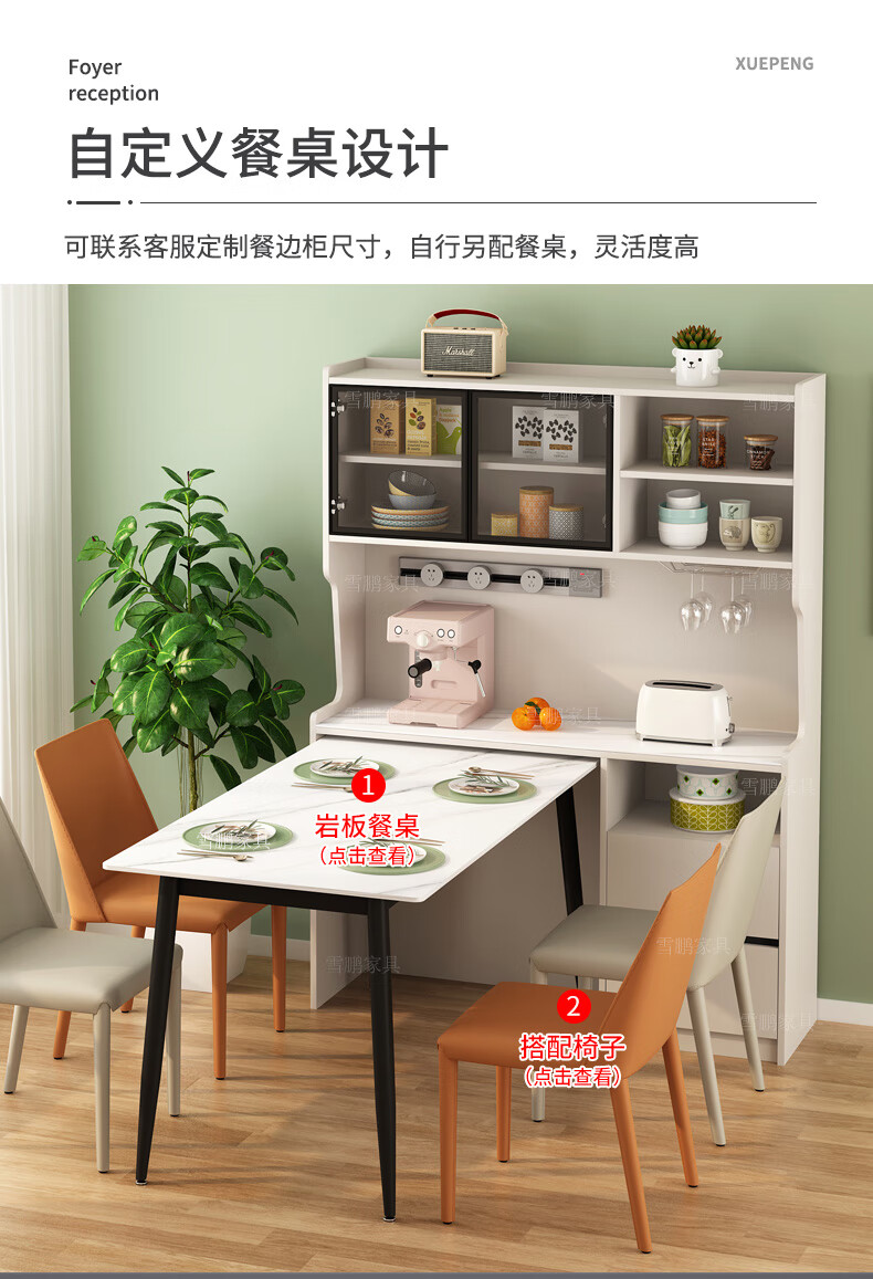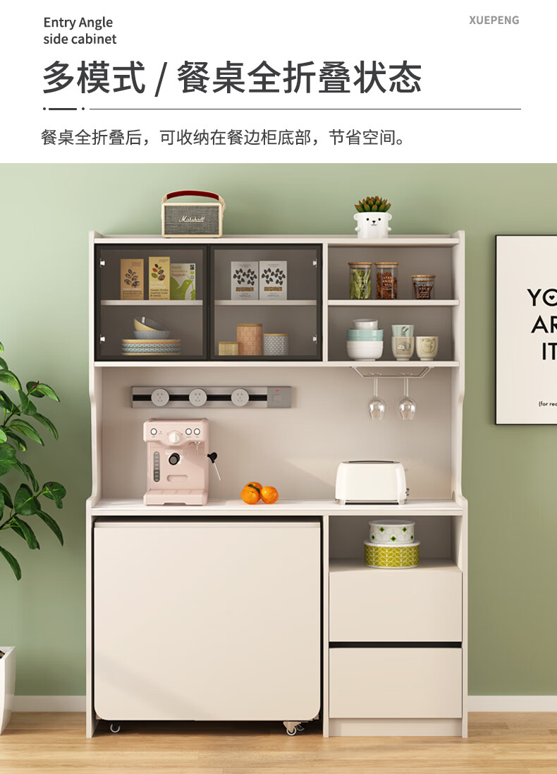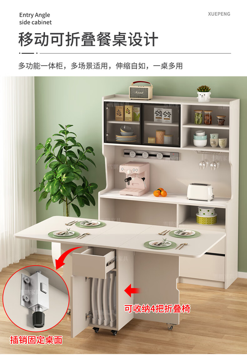 Xuepeng (Xuepeng) simple and light luxury folding dining table with dining table and chairs sideboard multi-functional all-in-one small apartment restaurant wall cabinet style 2 1150*400*1800