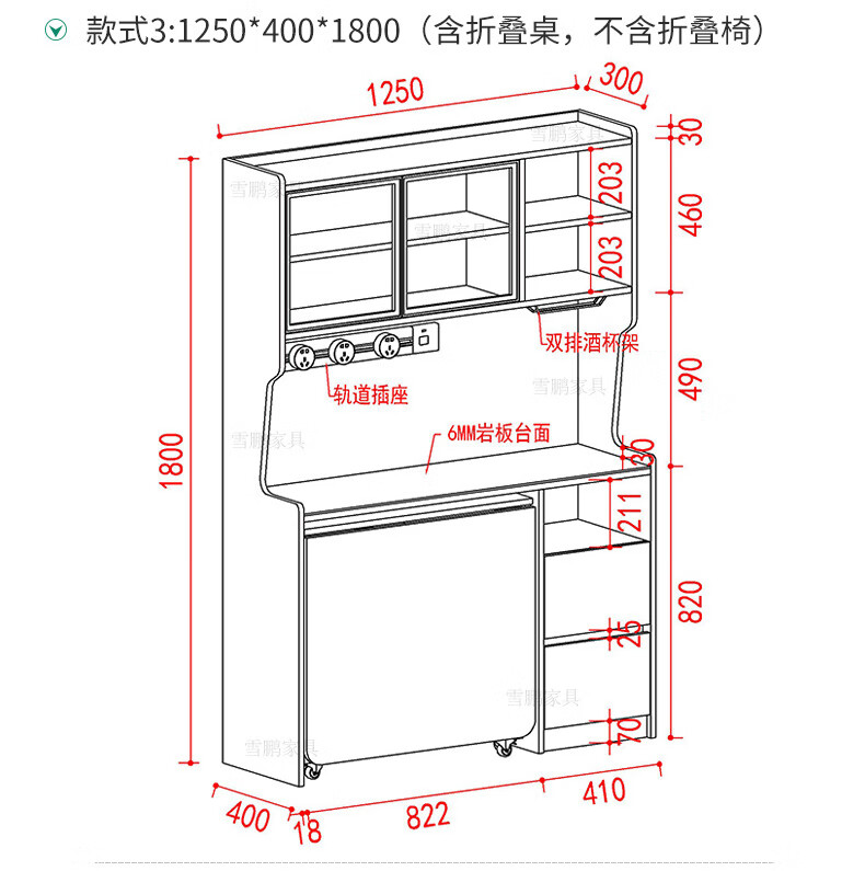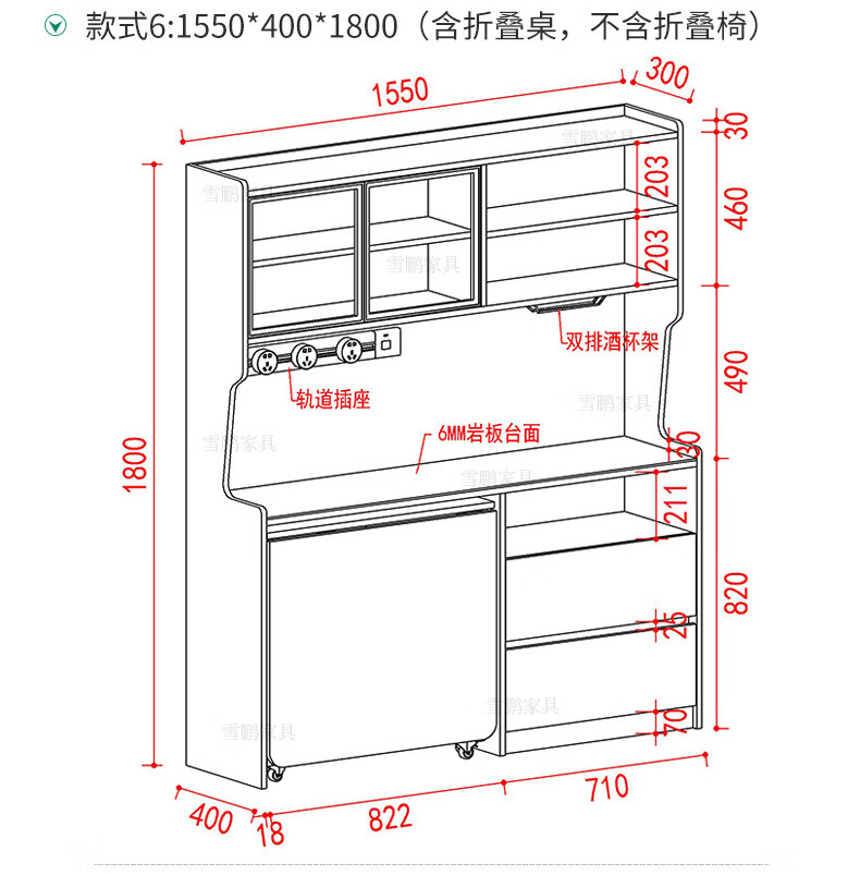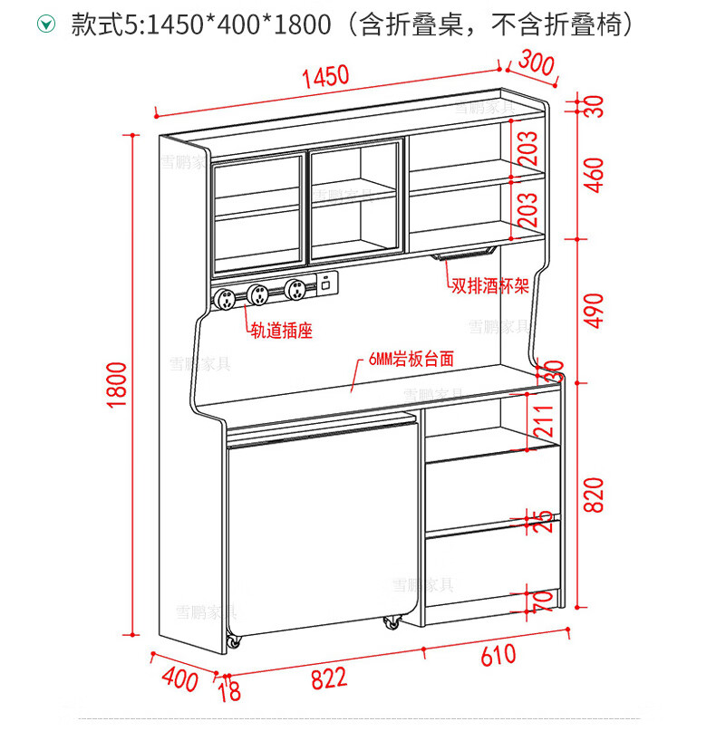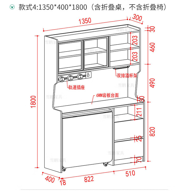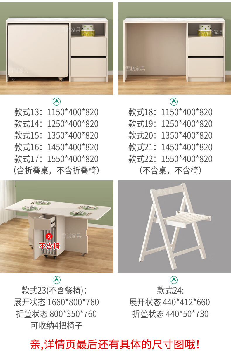 Xuepeng (Xuepeng) simple and light luxury folding dining table with dining table and chairs sideboard multi-functional all-in-one small apartment restaurant wall cabinet style 2 1150*400*1800