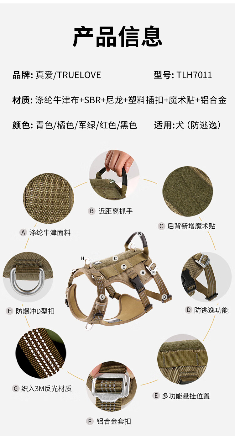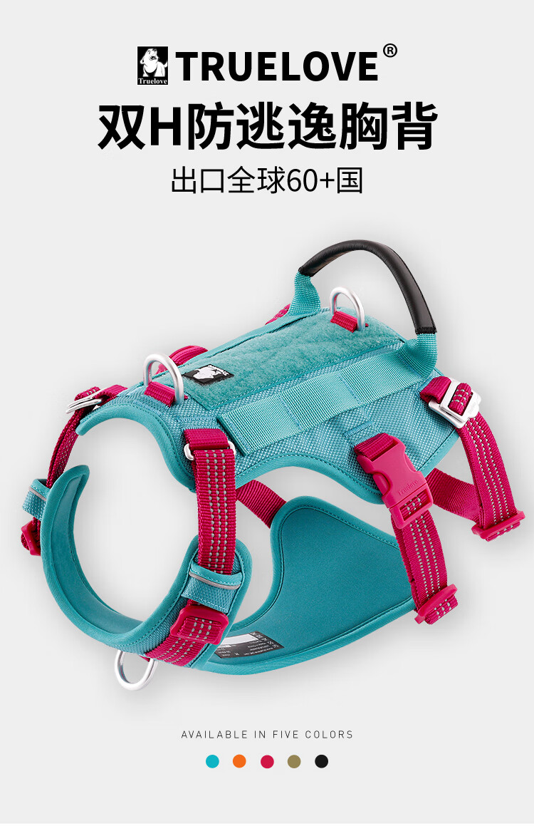 TRUELOVE dog leash harness chain vest type medium and large dog walking pet supplies anti-escape blue M-bust 56-69cm, recommended 8-18kg