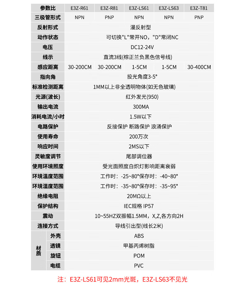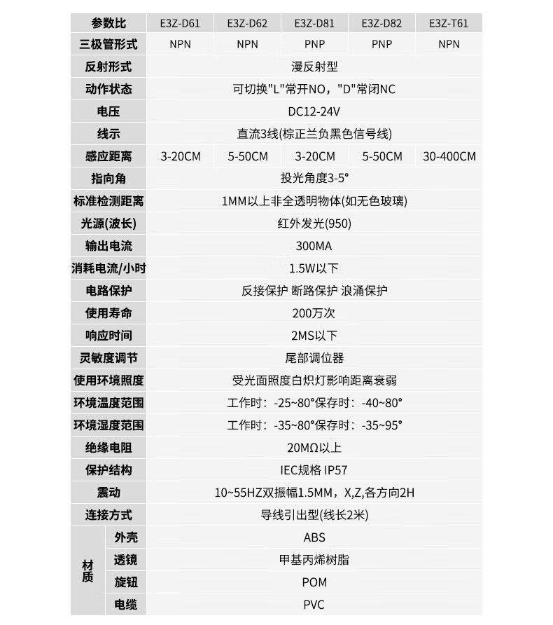 Diffuse reflection infrared through-beam photoelectric switch E3Z-D61 D62 D81 R61 LS61 T61 sensor 24v E3Z-R61 (NPN mirror reflection type) adjustable within 2 meters