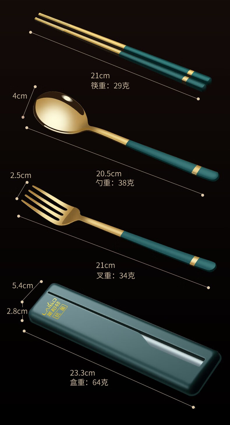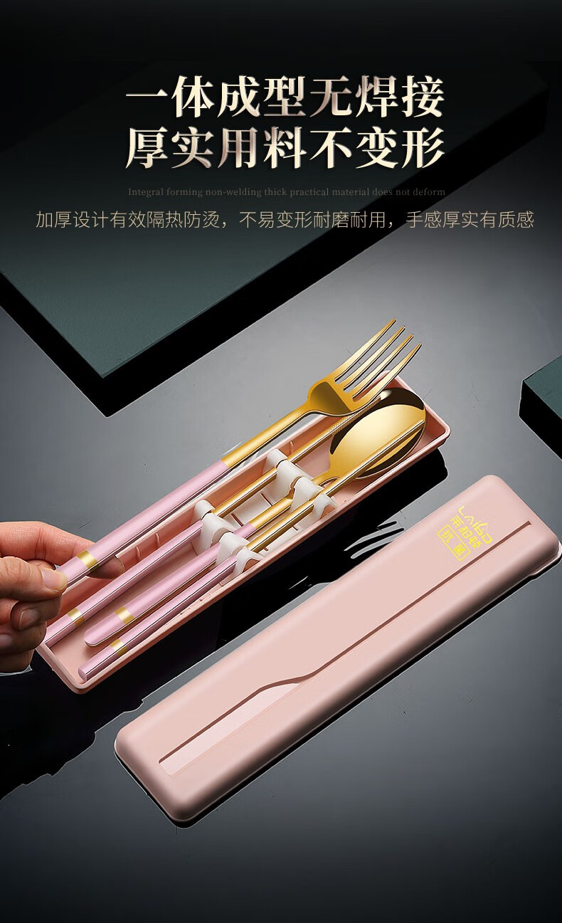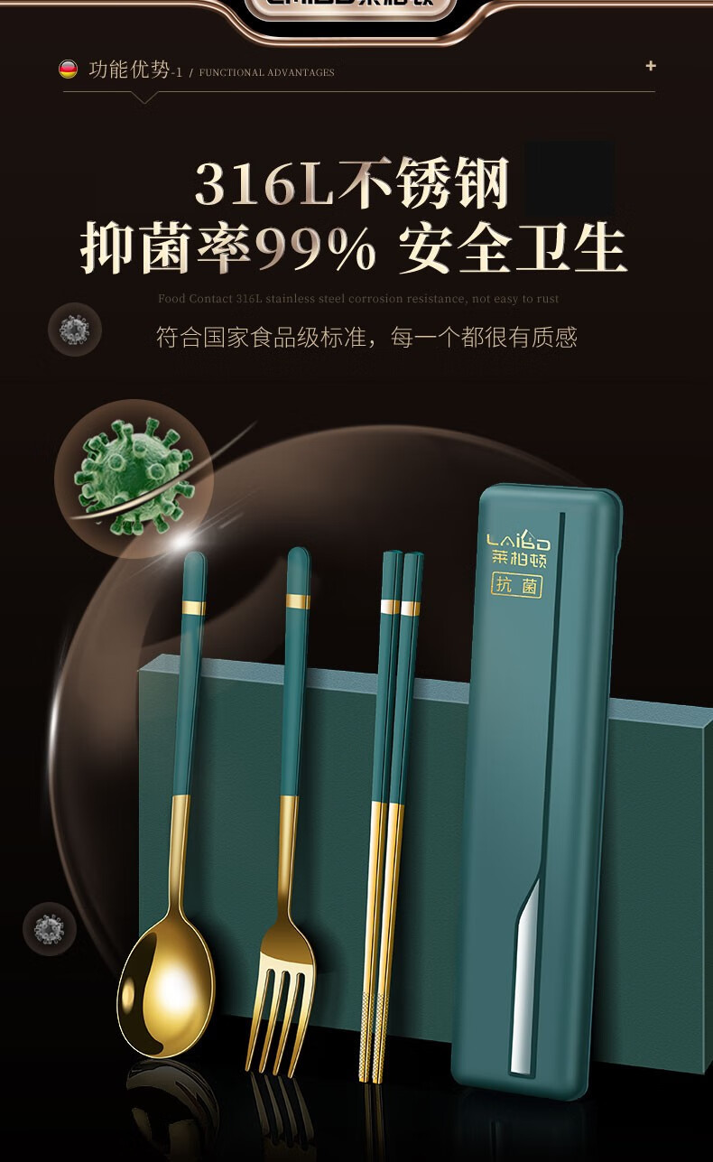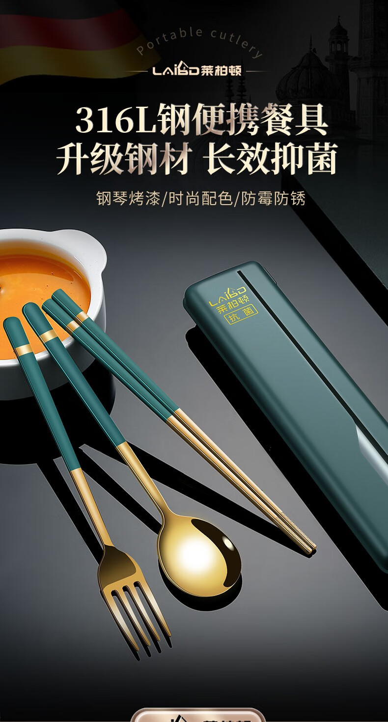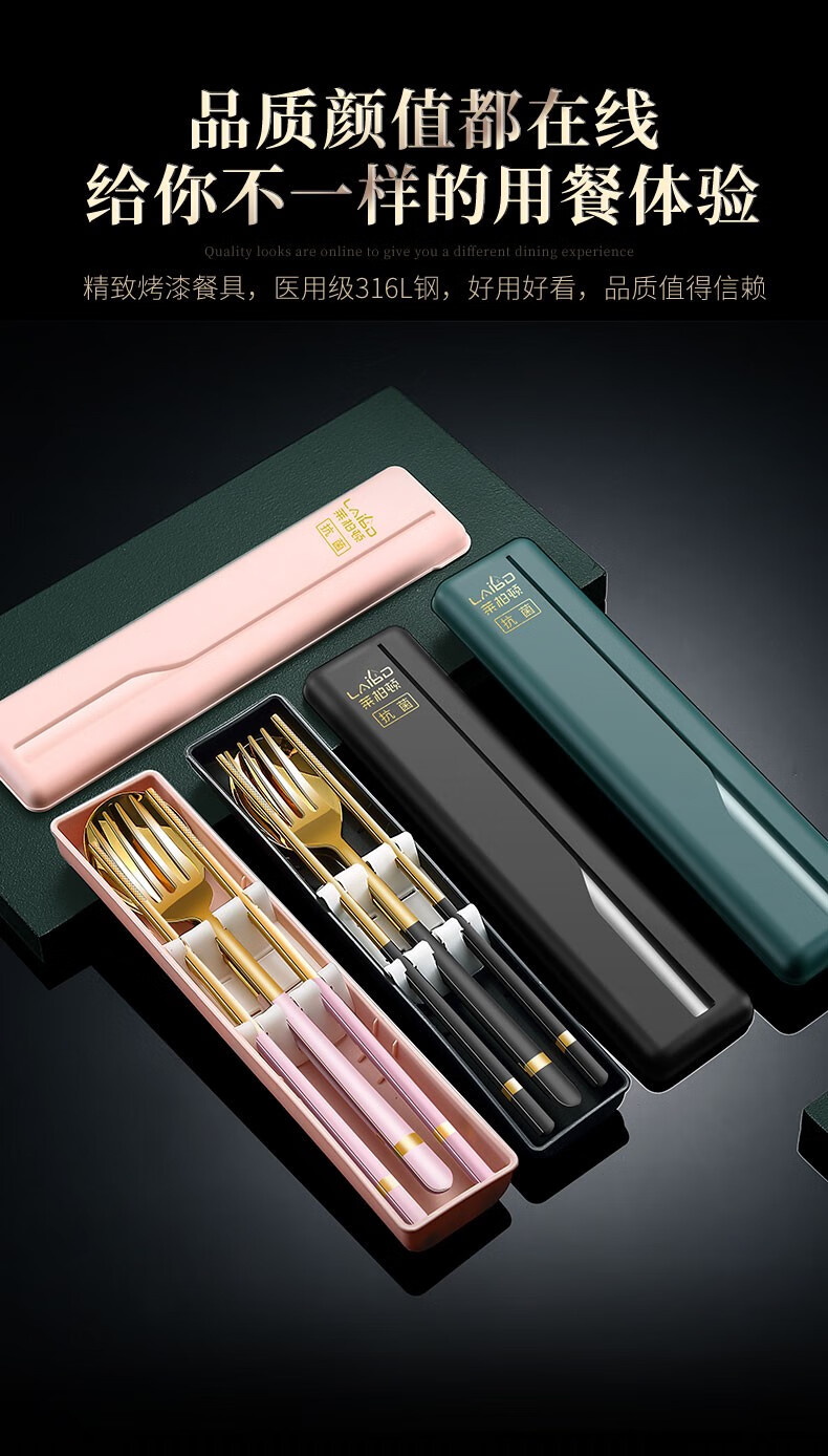 Labton 316L Stainless Steel Portable Chopsticks Spoon Set Tableware Portable Student Adult Office Worker Three-piece Set Gold Black 316L-Chopsticks Spoon Fork Black Box
