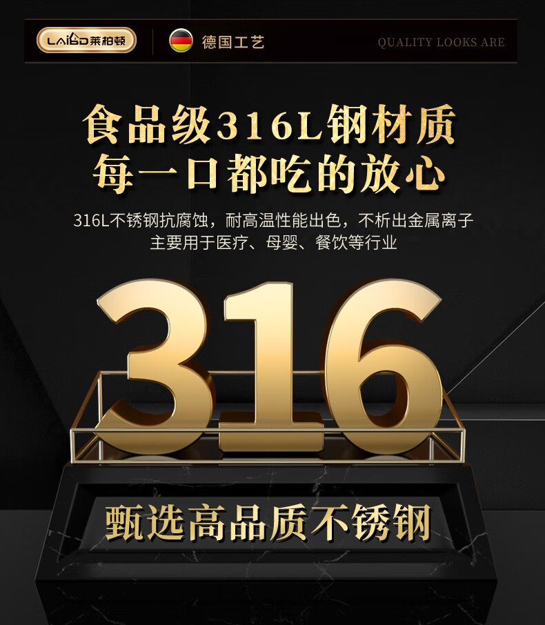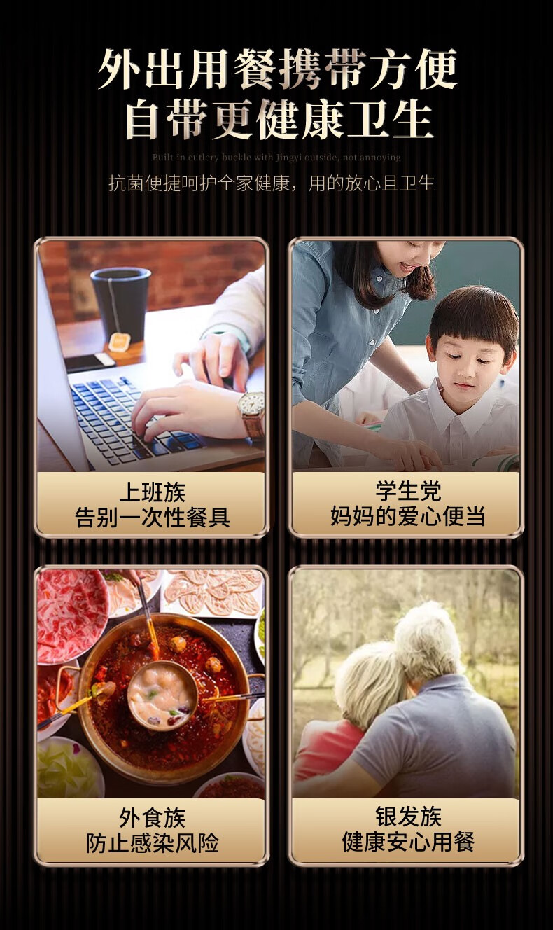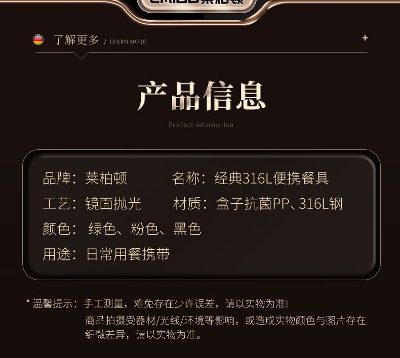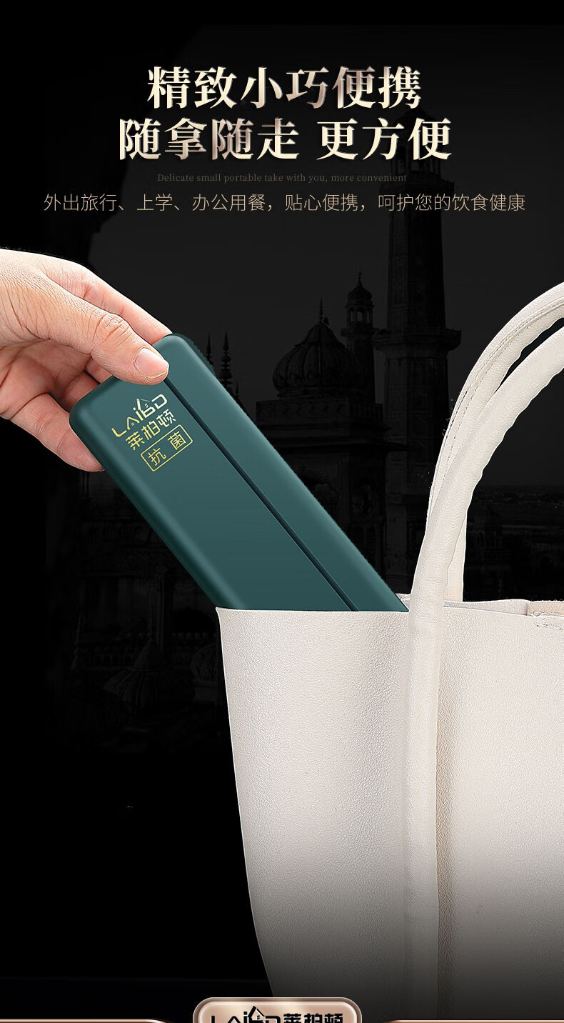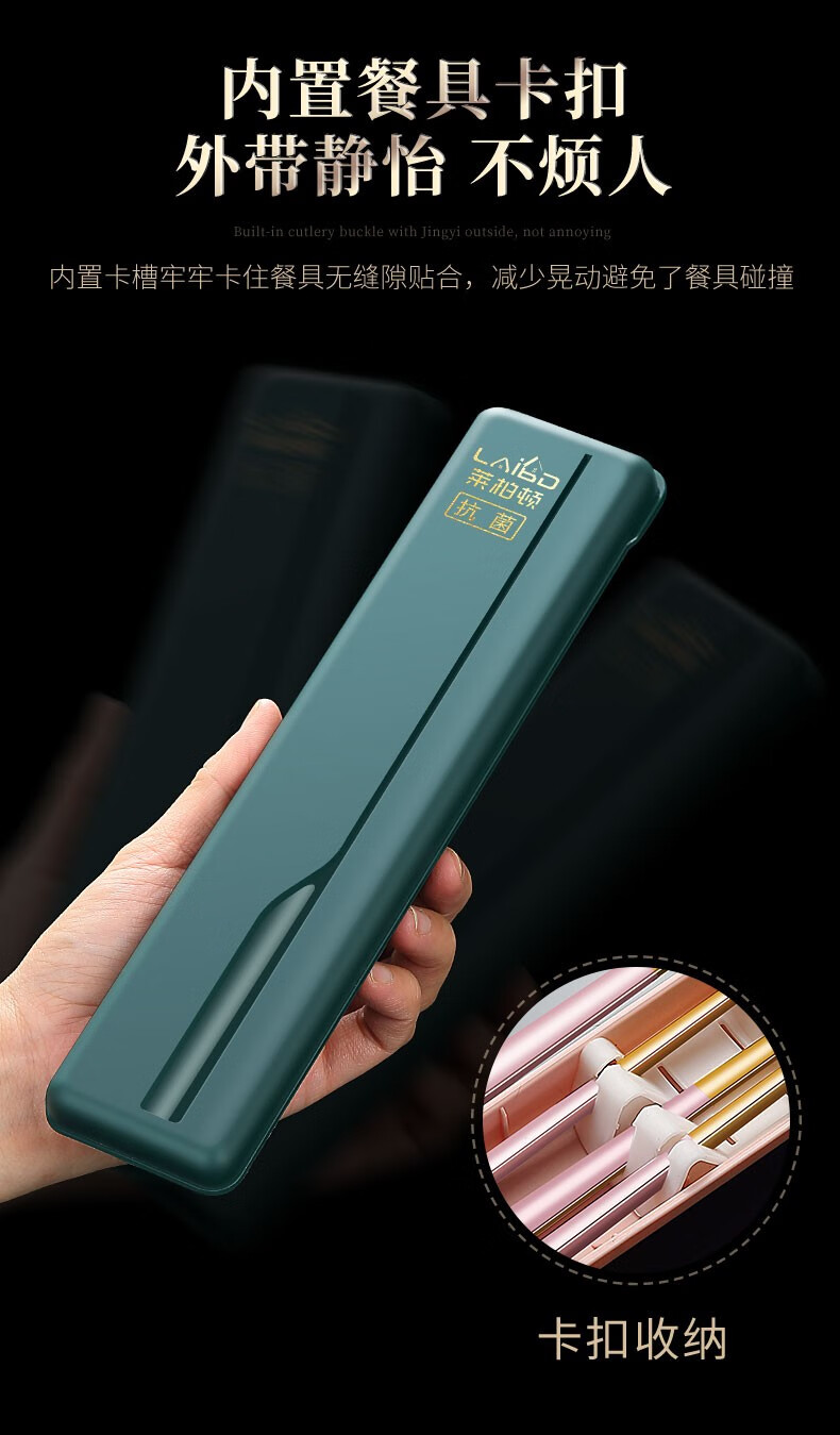 Labton 316L Stainless Steel Portable Chopsticks Spoon Set Tableware Portable Student Adult Office Worker Three-piece Set Gold Black 316L-Chopsticks Spoon Fork Black Box