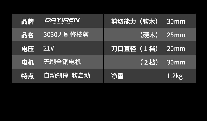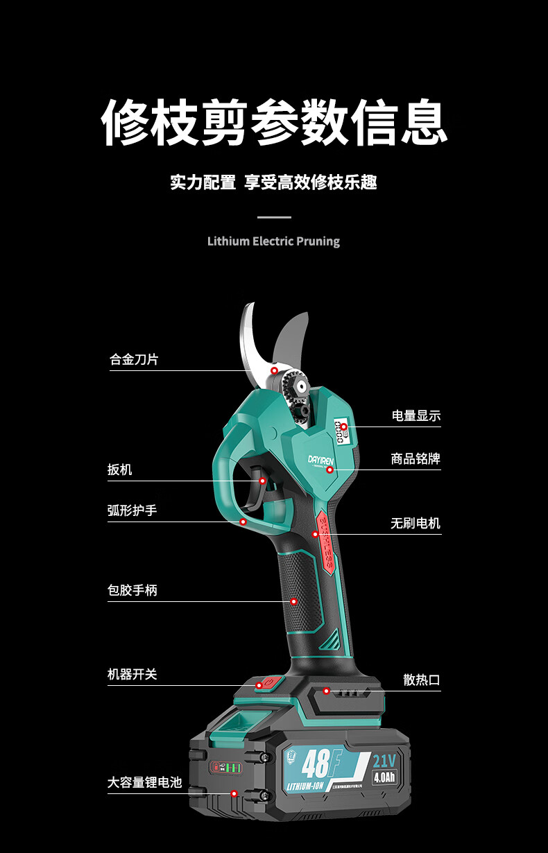 DAYIREN Brushless Electric Scissors Pruning Shears for Branches Rechargeable Gardening Scissors Adapted to Dayi A3 Battery Model 3030 Bare Metal