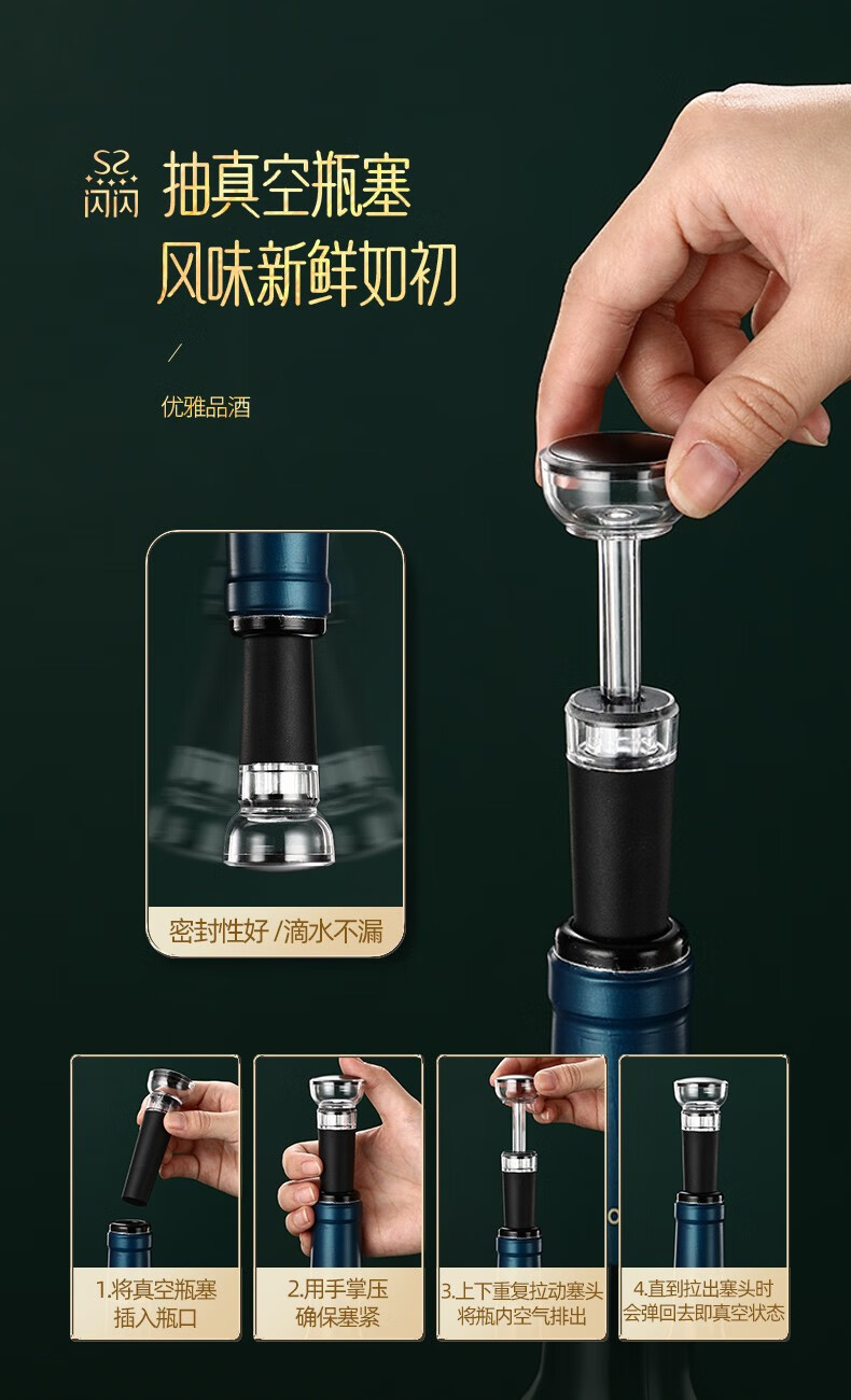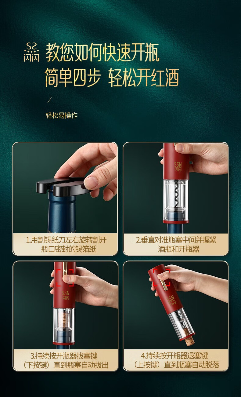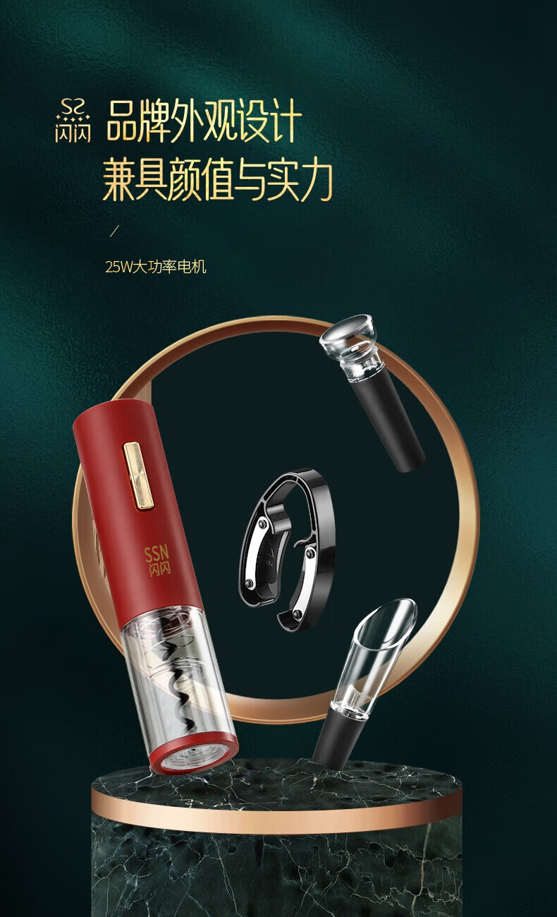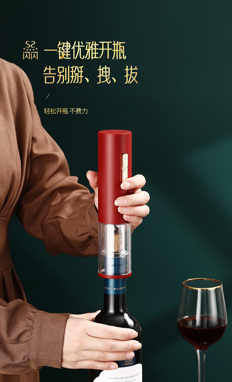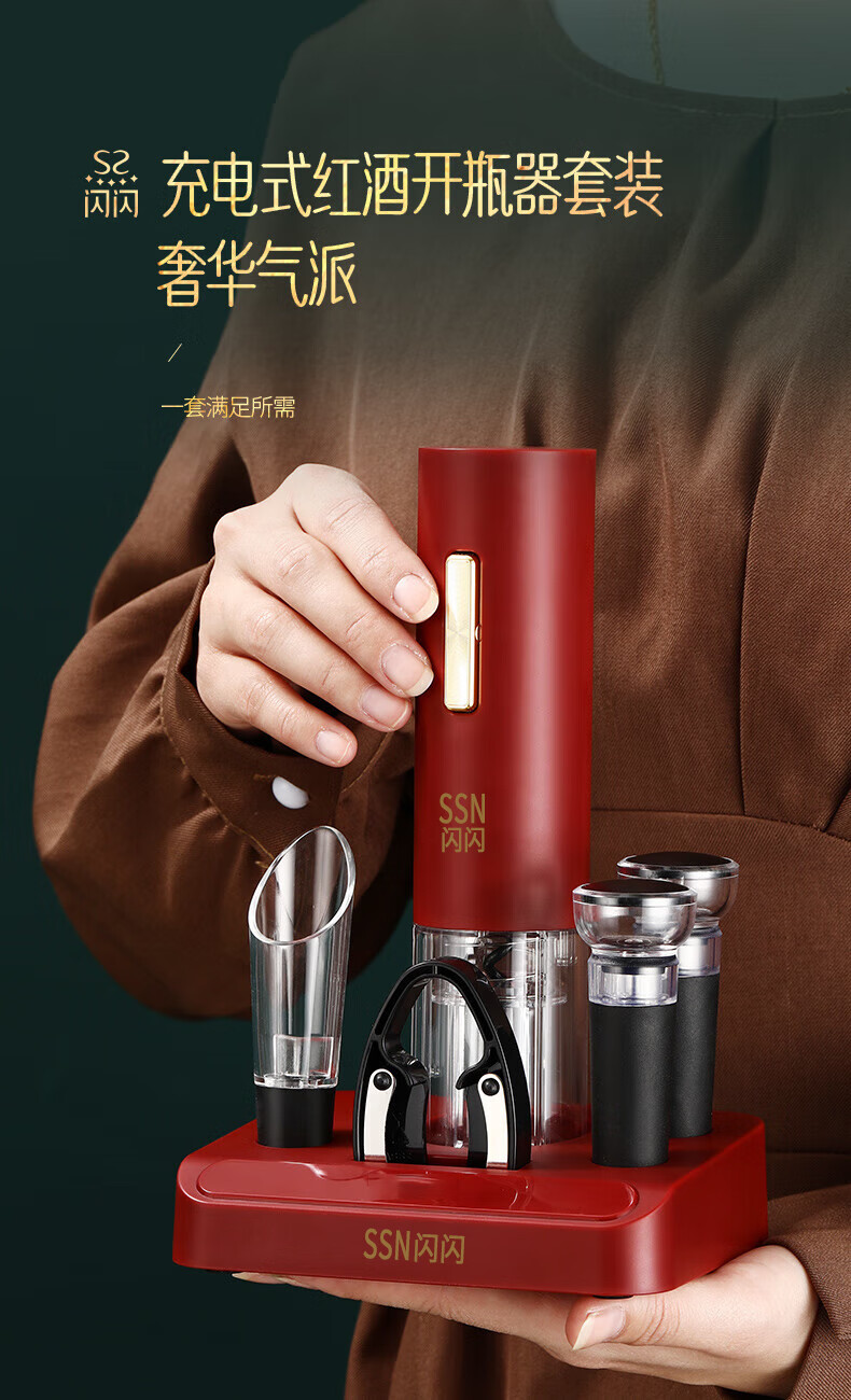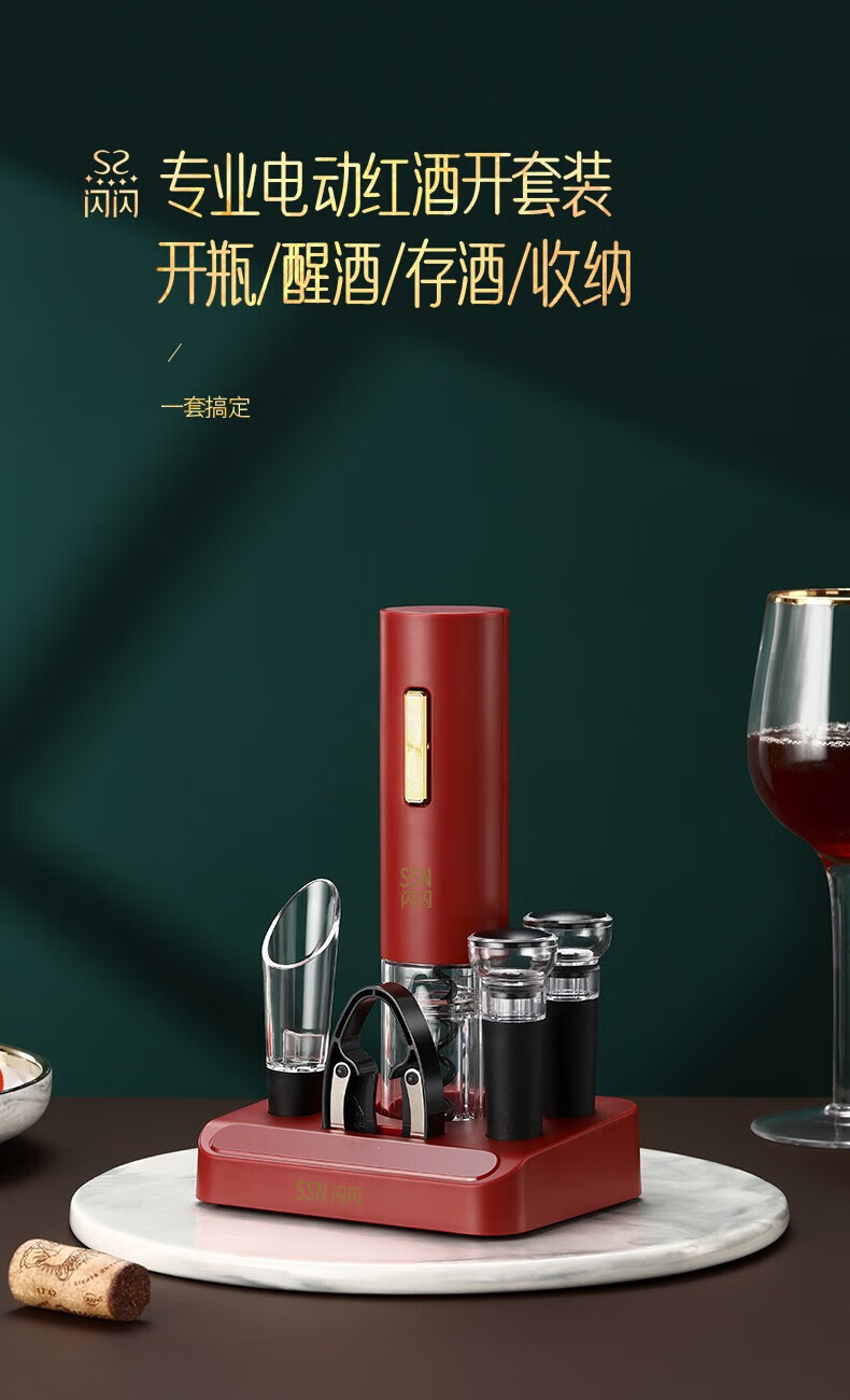 Shining Premium Electric Wine Bottle Opener Wedding Box Fully Automatic Wine Divider Decanter Wine Cork Opener Gift Set Electric Wine Bottle Opener 7-piece Set Includes USB Charging Cable