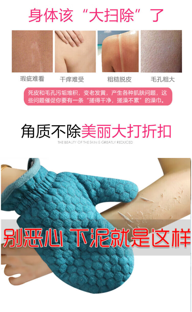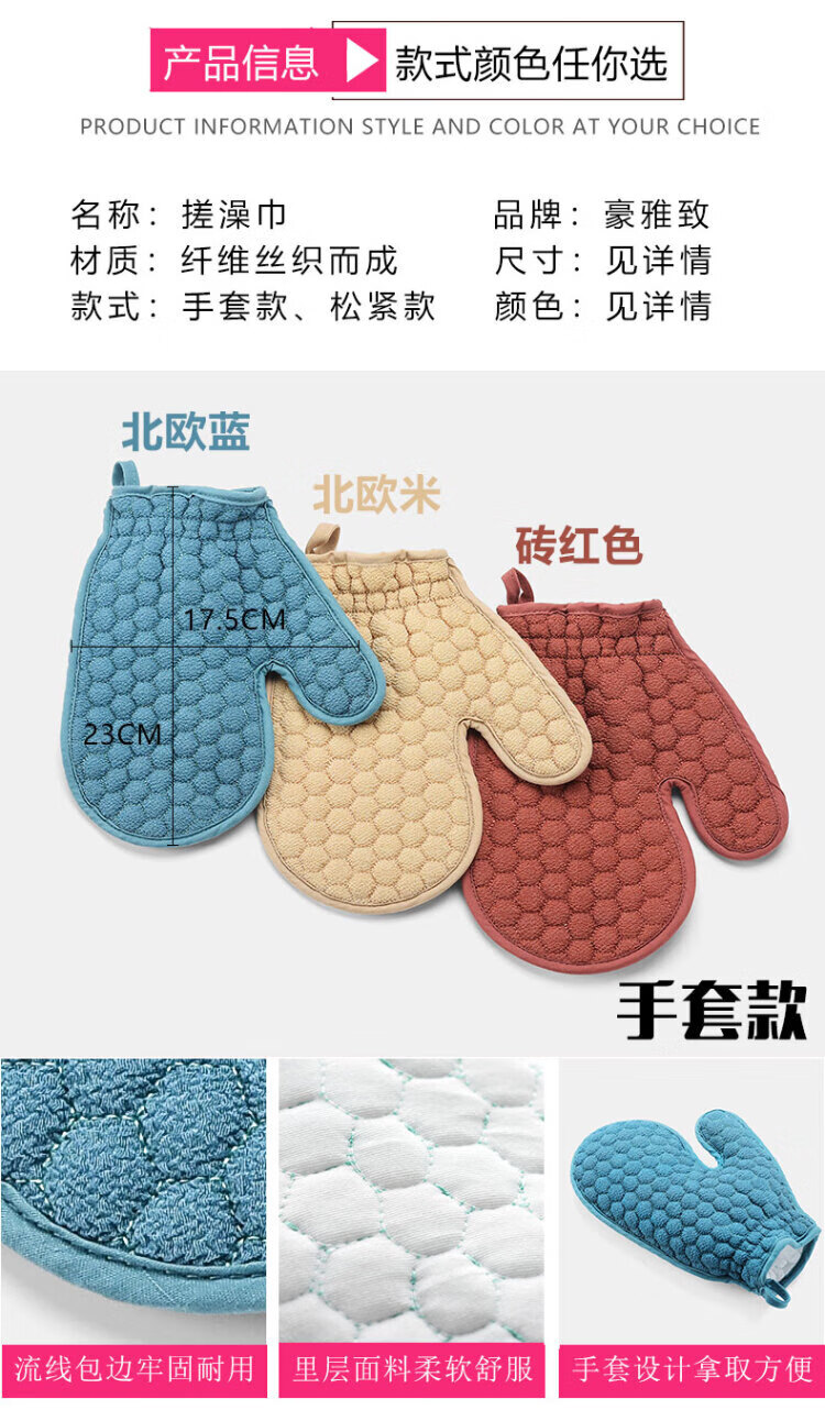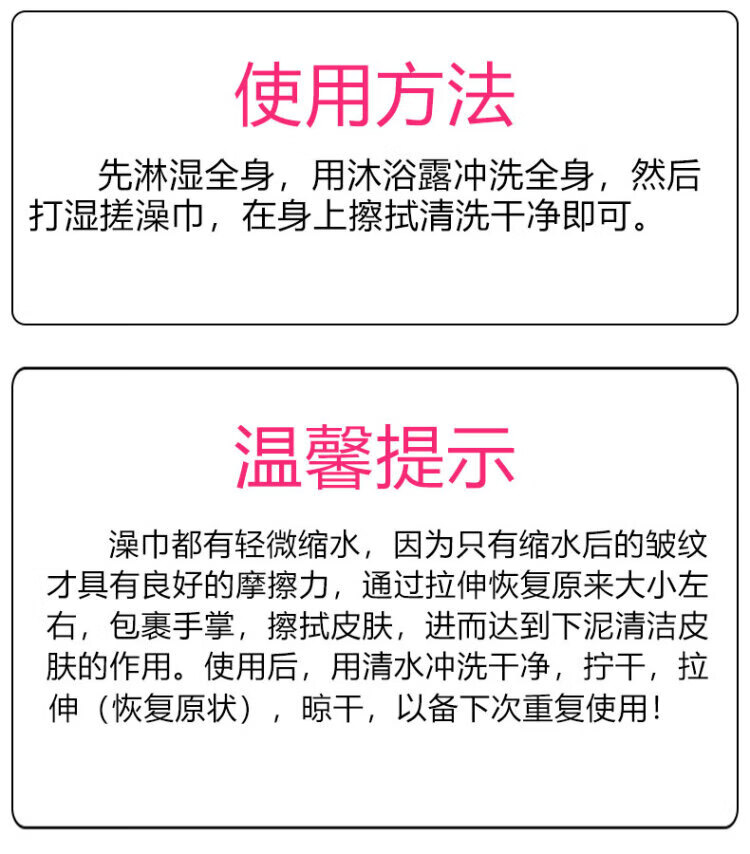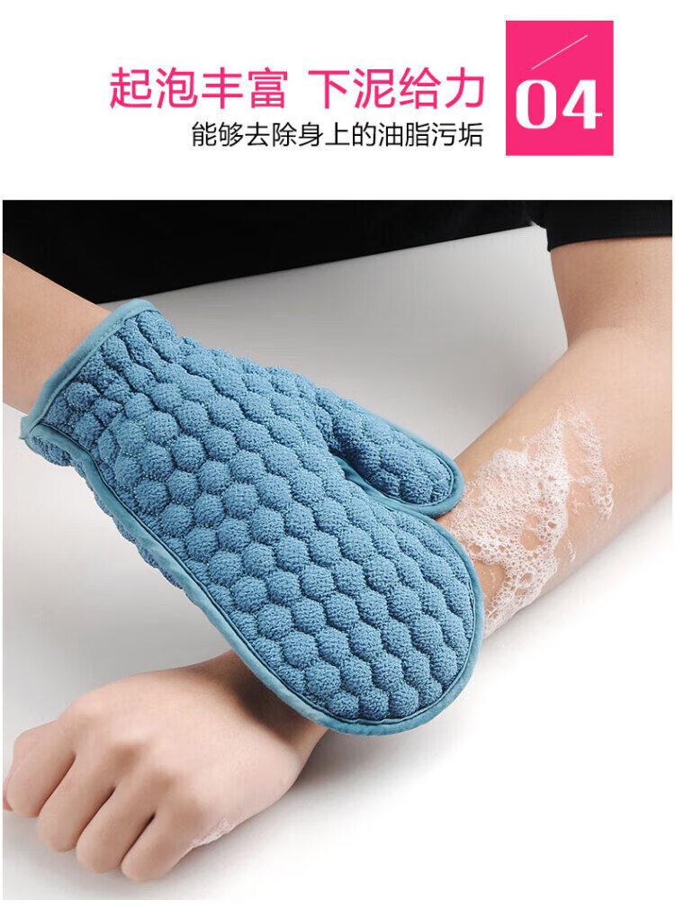 Rub-free bath towel for women, double-sided strong gloves for mud rub and bath towel for men, rub back and dust in the shower, pink glove, one pack