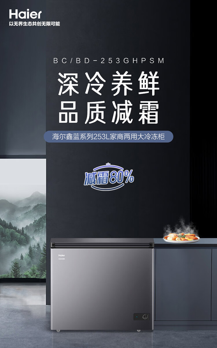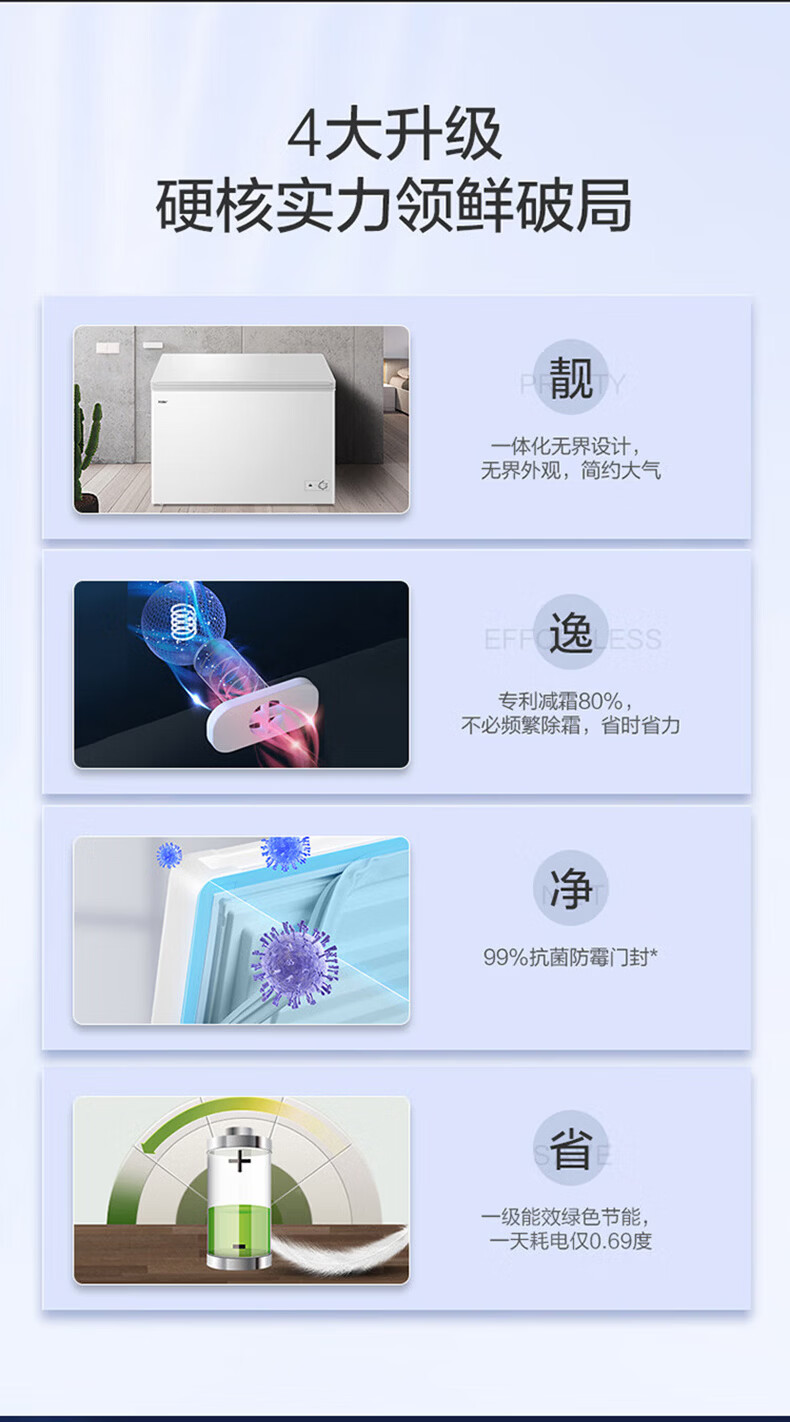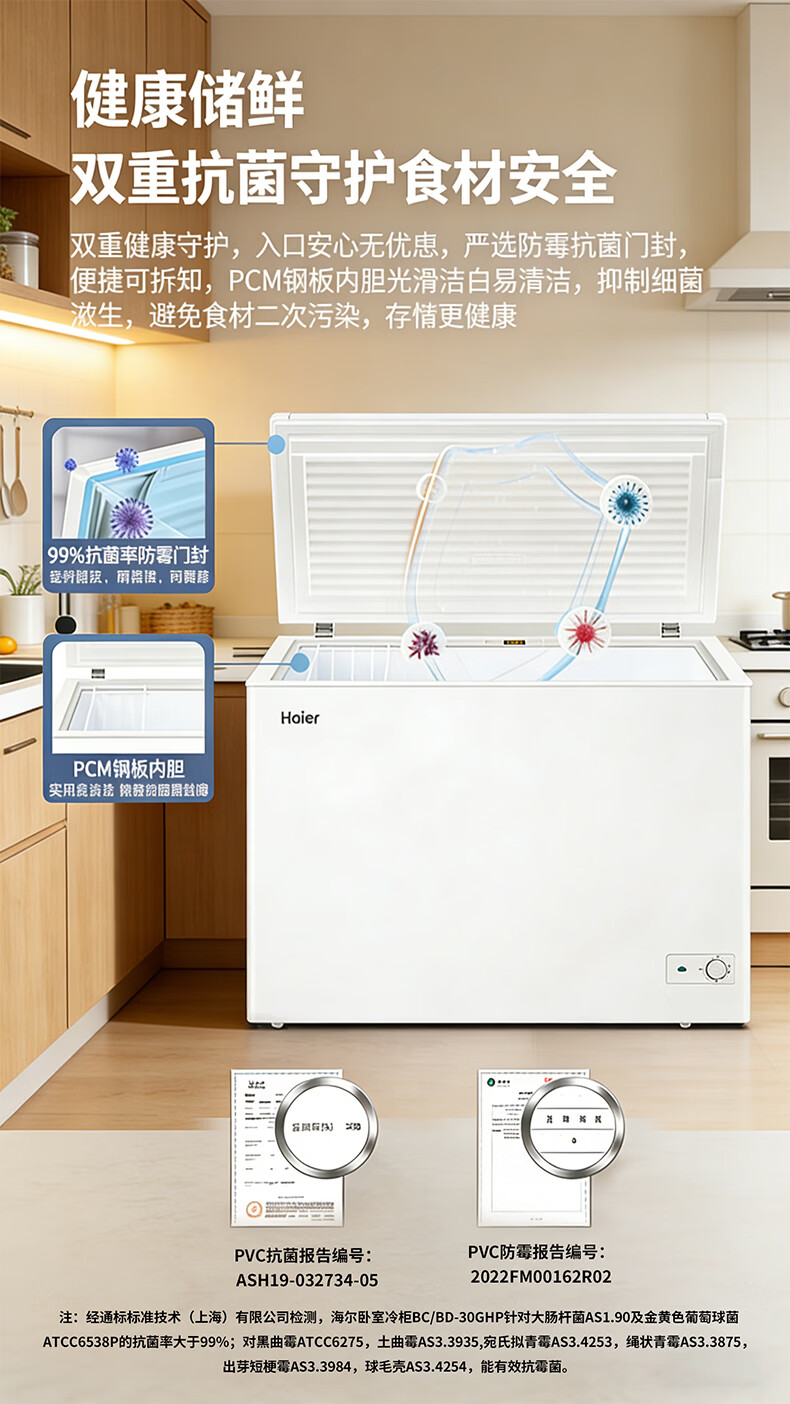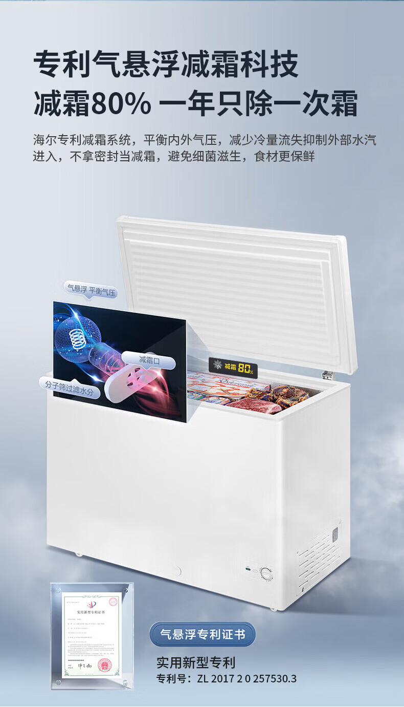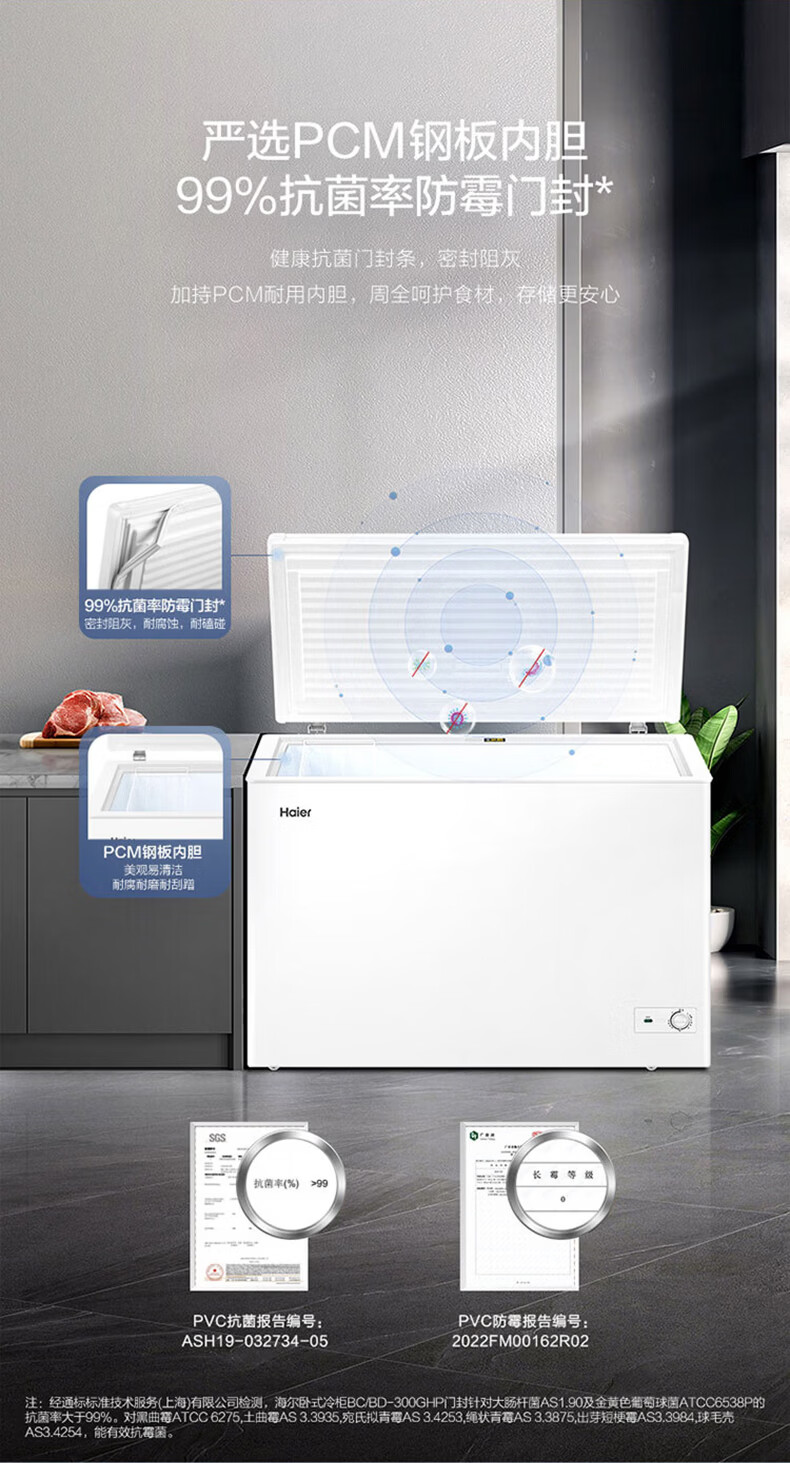 Haier Freezer Small household large-capacity frozen fresh-keeping horizontal top-door refrigerator 200 liters/300 liters first-class energy efficiency and energy saving dual-purpose small refrigerator without frequent defrosting 228 liters -35 deep cold丨PCM steel plate liner丨triple antibacterial