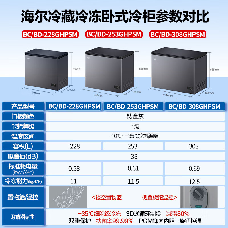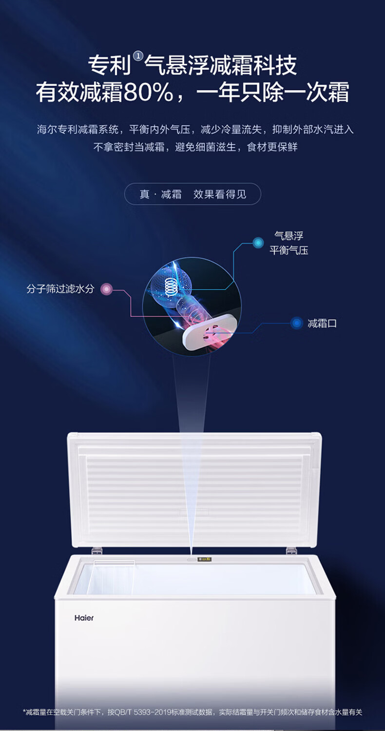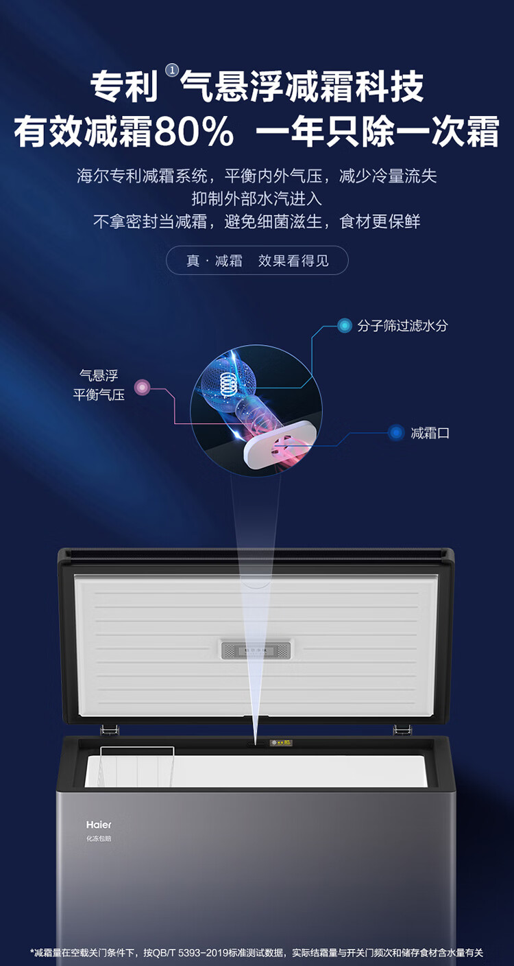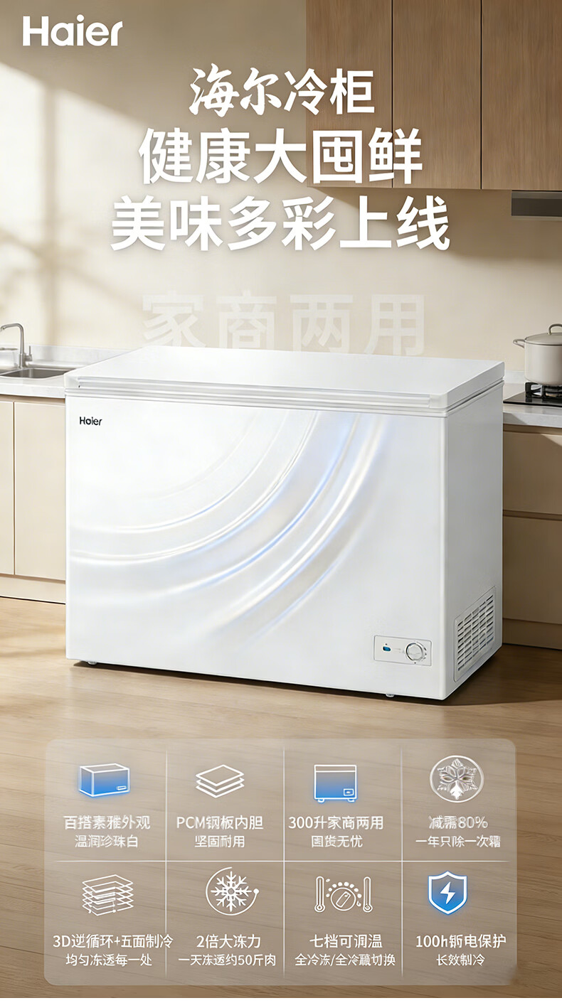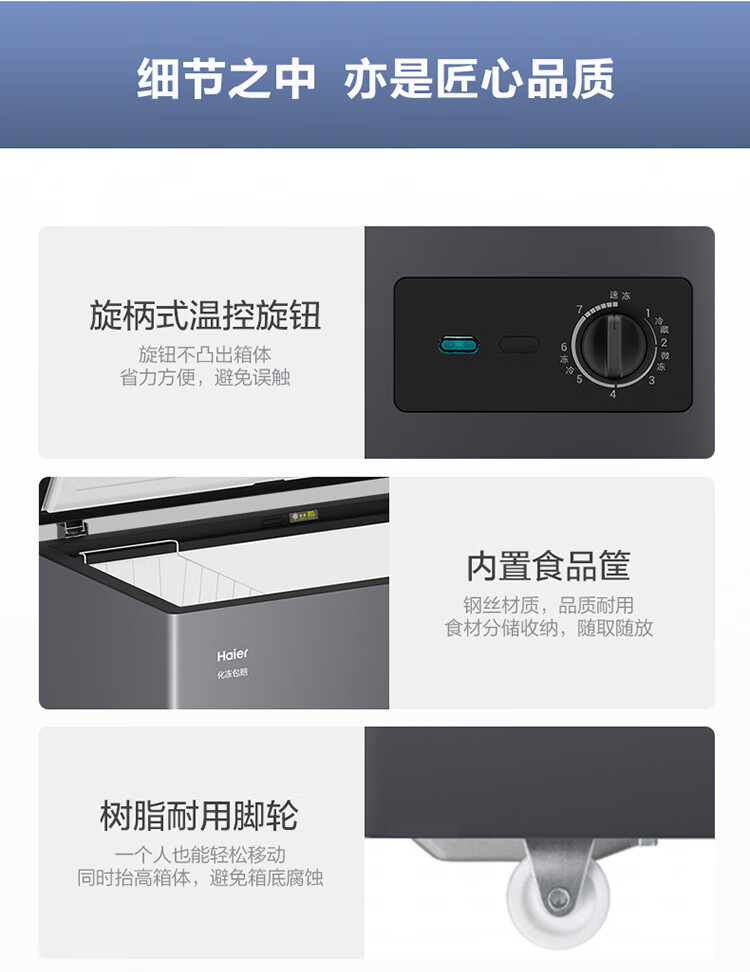Haier Freezer Small household large-capacity frozen fresh-keeping horizontal top-door refrigerator 200 liters/300 liters first-class energy efficiency and energy saving dual-purpose small refrigerator without frequent defrosting 228 liters -35 deep cold丨PCM steel plate liner丨triple antibacterial