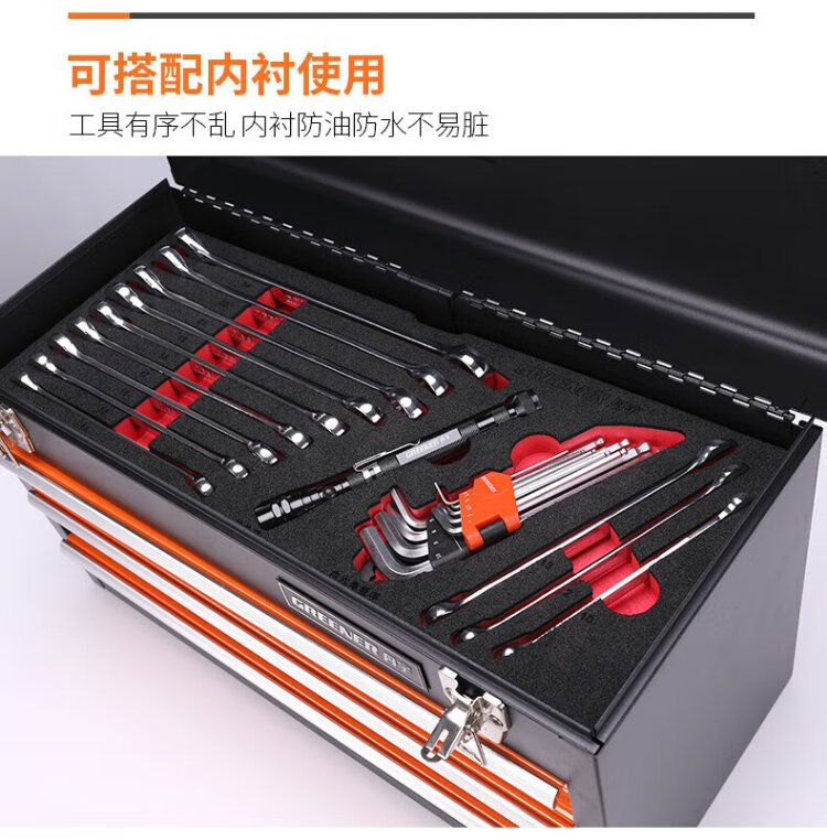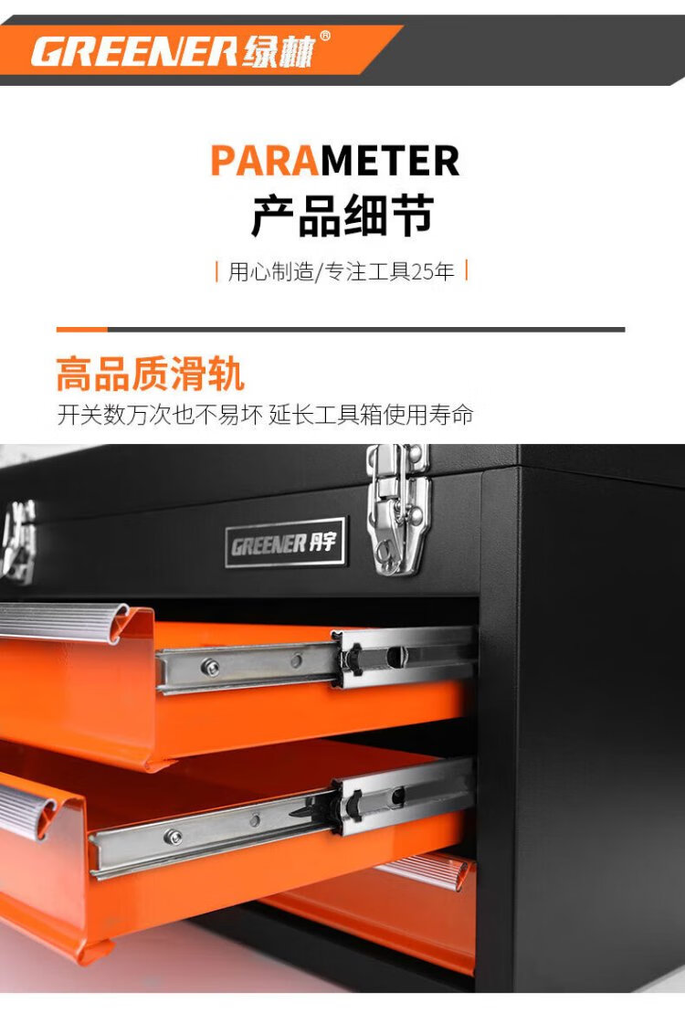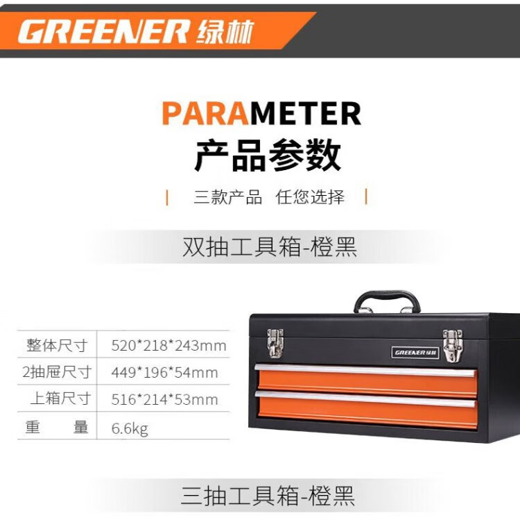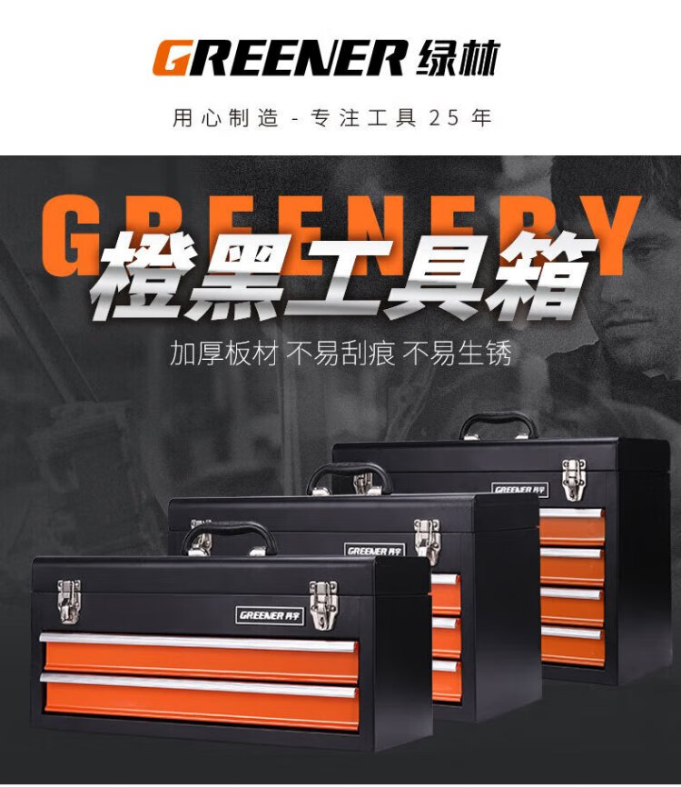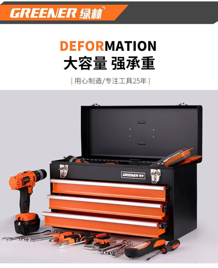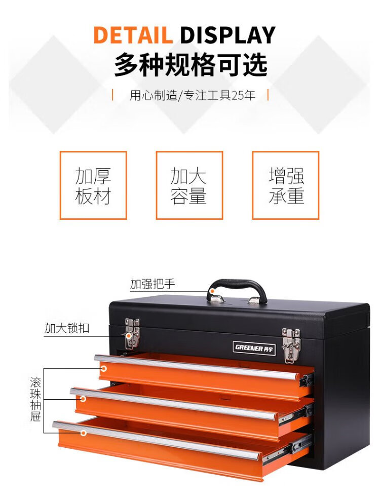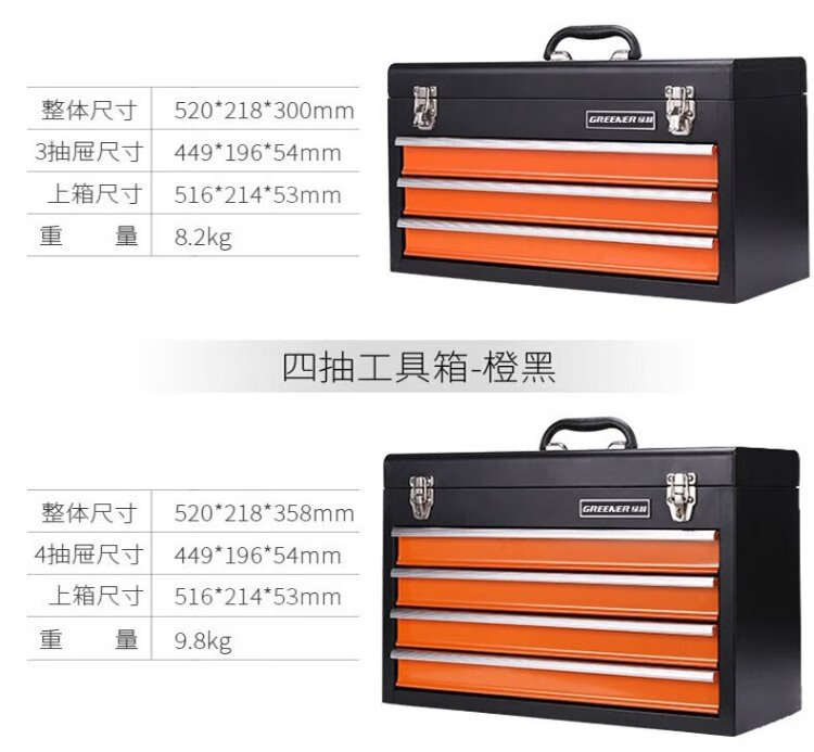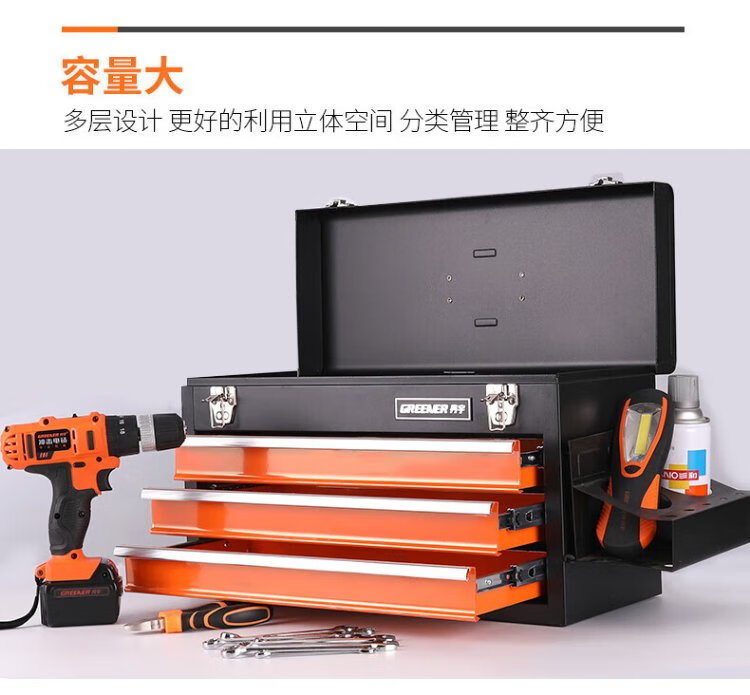 GREENER multi-layer hardware tool box large portable multi-functional repair tool storage box portable iron box with multiple drawers three drawer tool box - orange and black