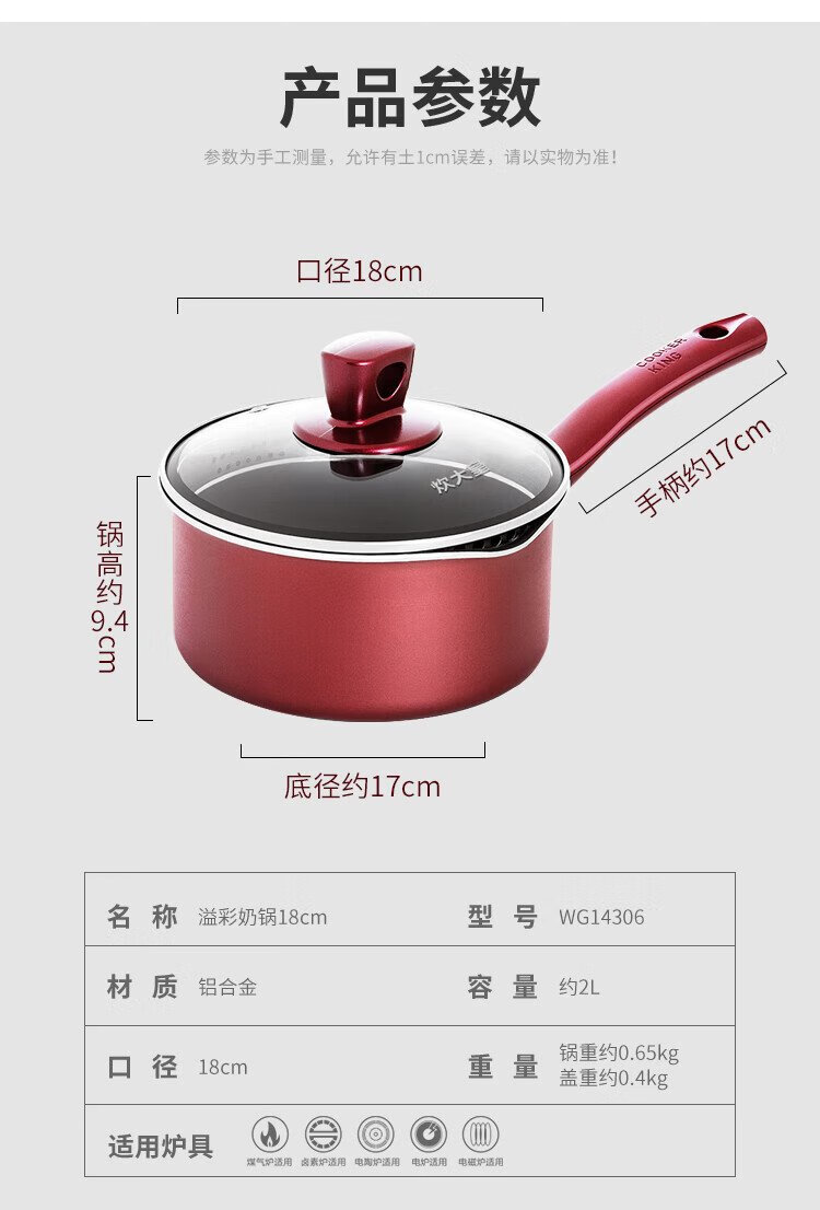 Cuidahuang milk pot non-stick pot instant noodles baby food supplement multi-purpose soup milk pot 18cm induction cooker universal Yicai WG14306