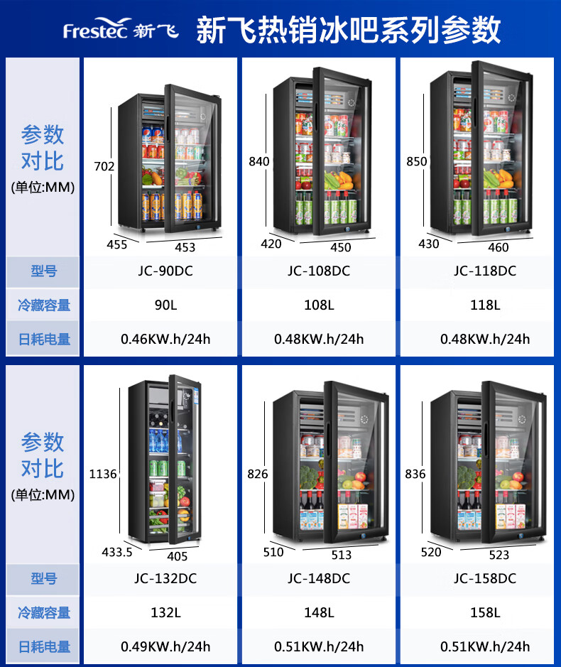 Xinfei (Frestec) ice bar refrigerated cabinet fresh cabinet European style constant temperature red wine cabinet hotel home living room refrigerator mini small single door office fresh display display sample tea beverage cabinet 118 liter black liner refrigerated + micro-freezing + with light + lock