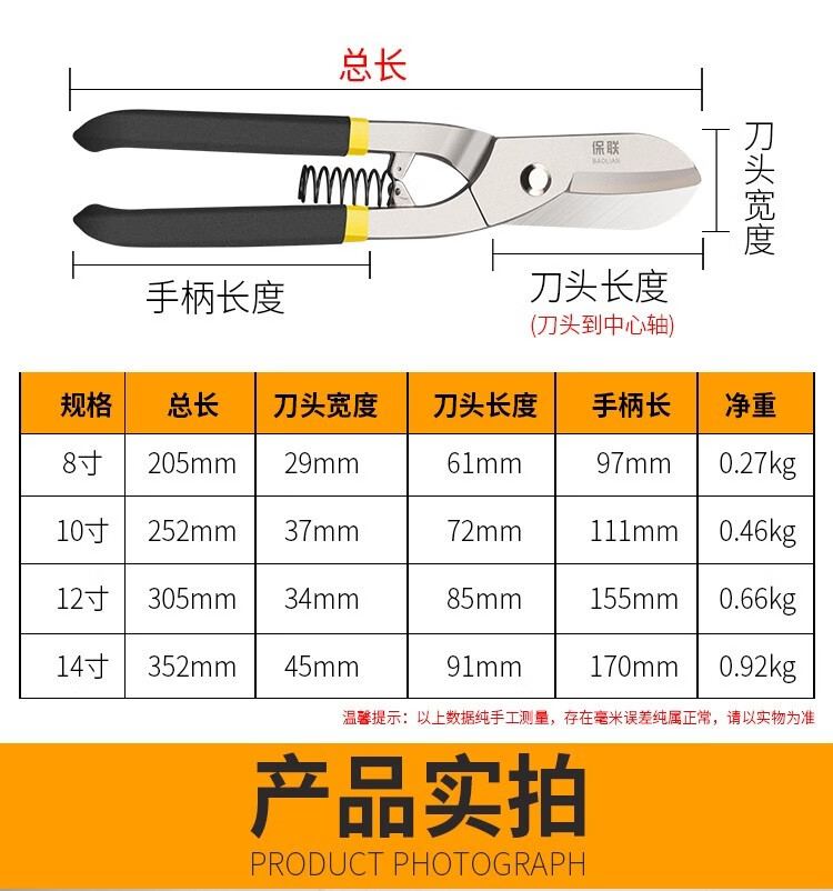 Baolian iron scissors industrial strong shears keel scissors aviation scissors wire scissors stainless steel aluminum buckle plate special scissors large German style iron scissors 8 inches