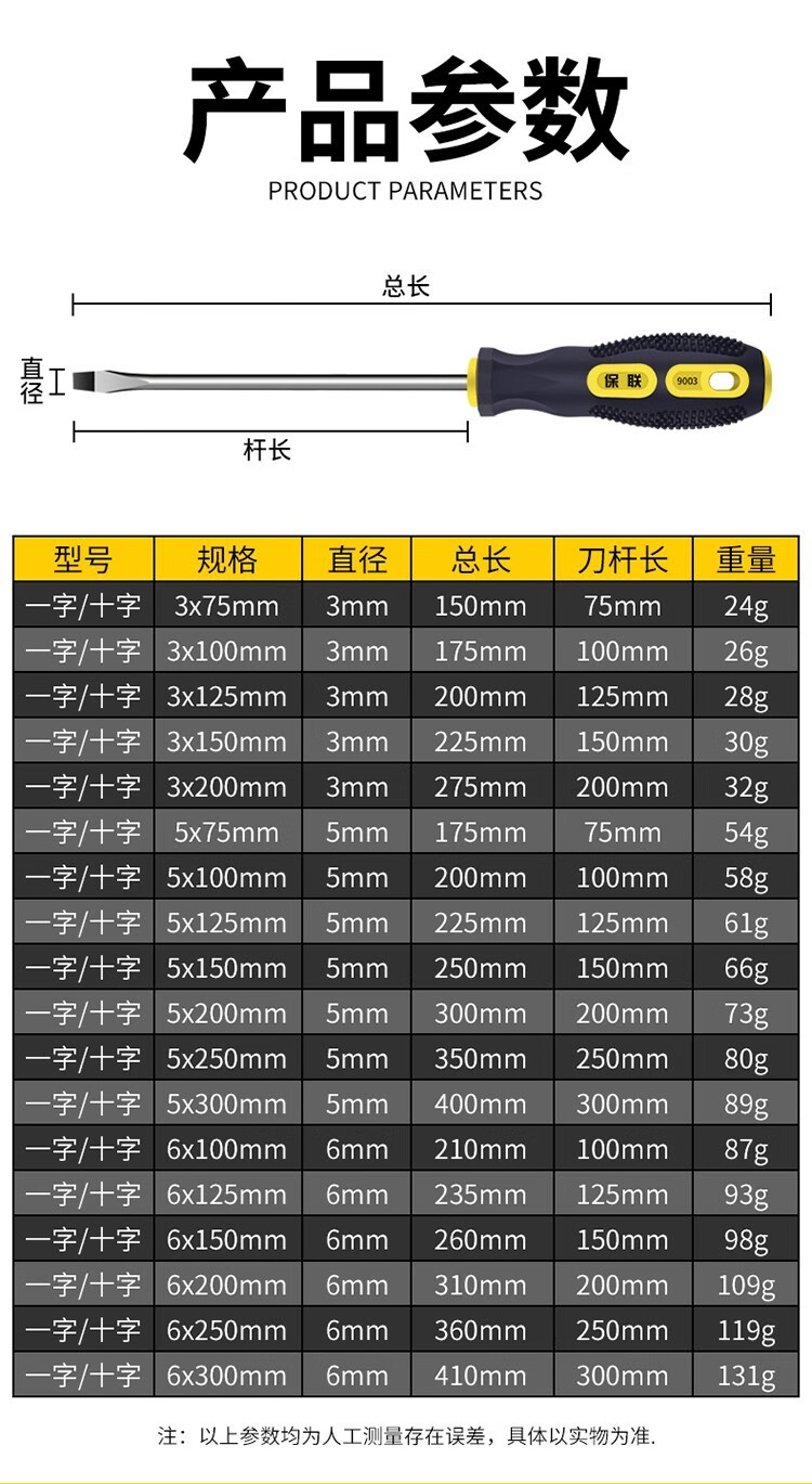 Baolian Screwdriver Industrial Grade Strong Magnetic Screwdriver Tool Set Super Hard Screwdriver Small Screwdriver 6*125 Cross