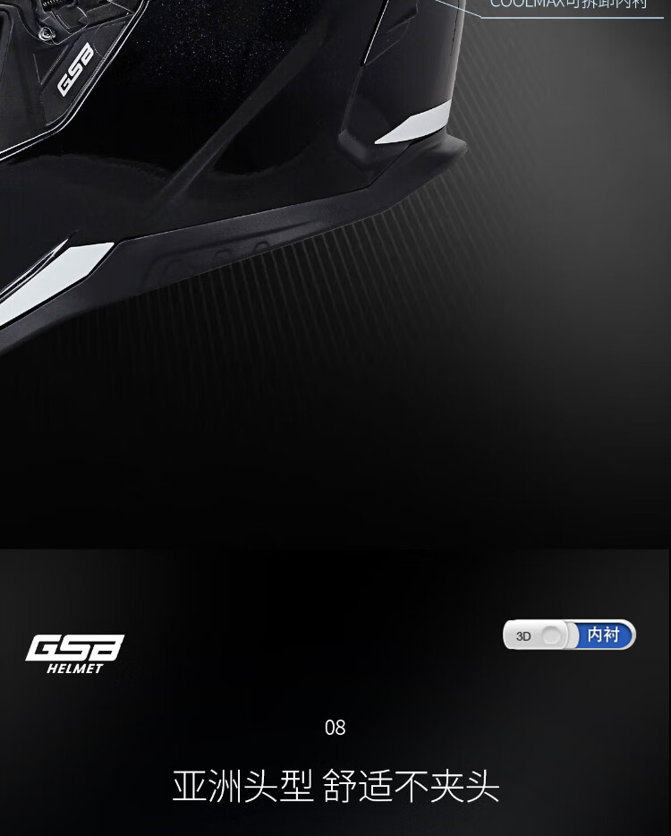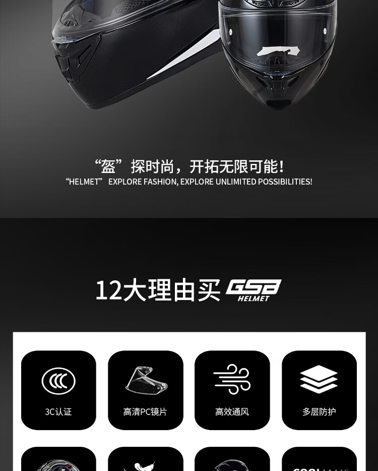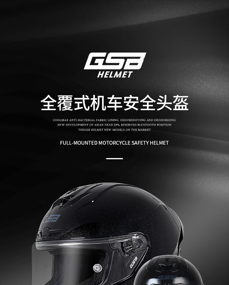 GSBgsb helmet s-361 motorcycle helmet 3C certified full-face helmet for all seasons (reserved Bluetooth headphone slot) cool gray with transparent lens (SF Express) XXXL (60-61 head circumference recommended)