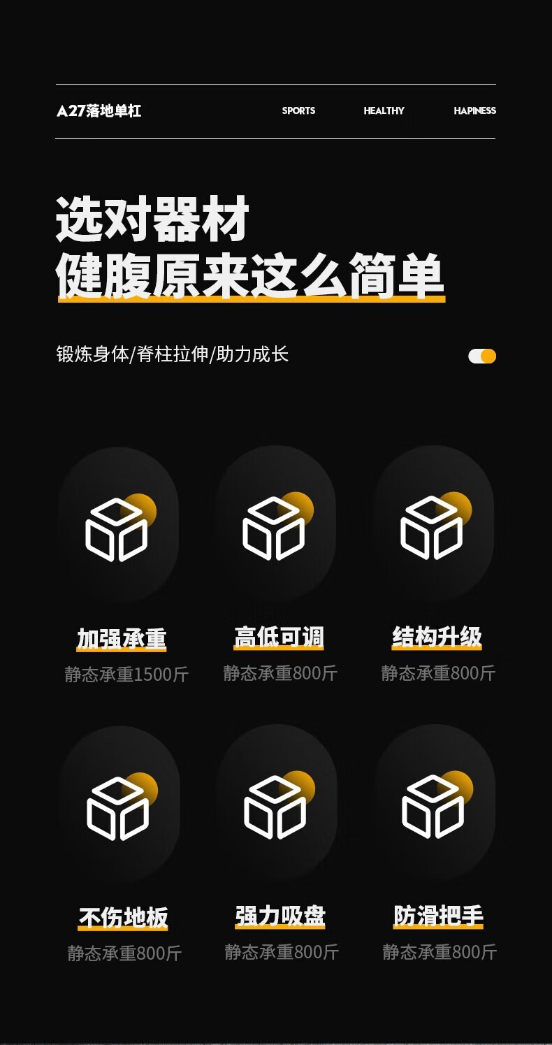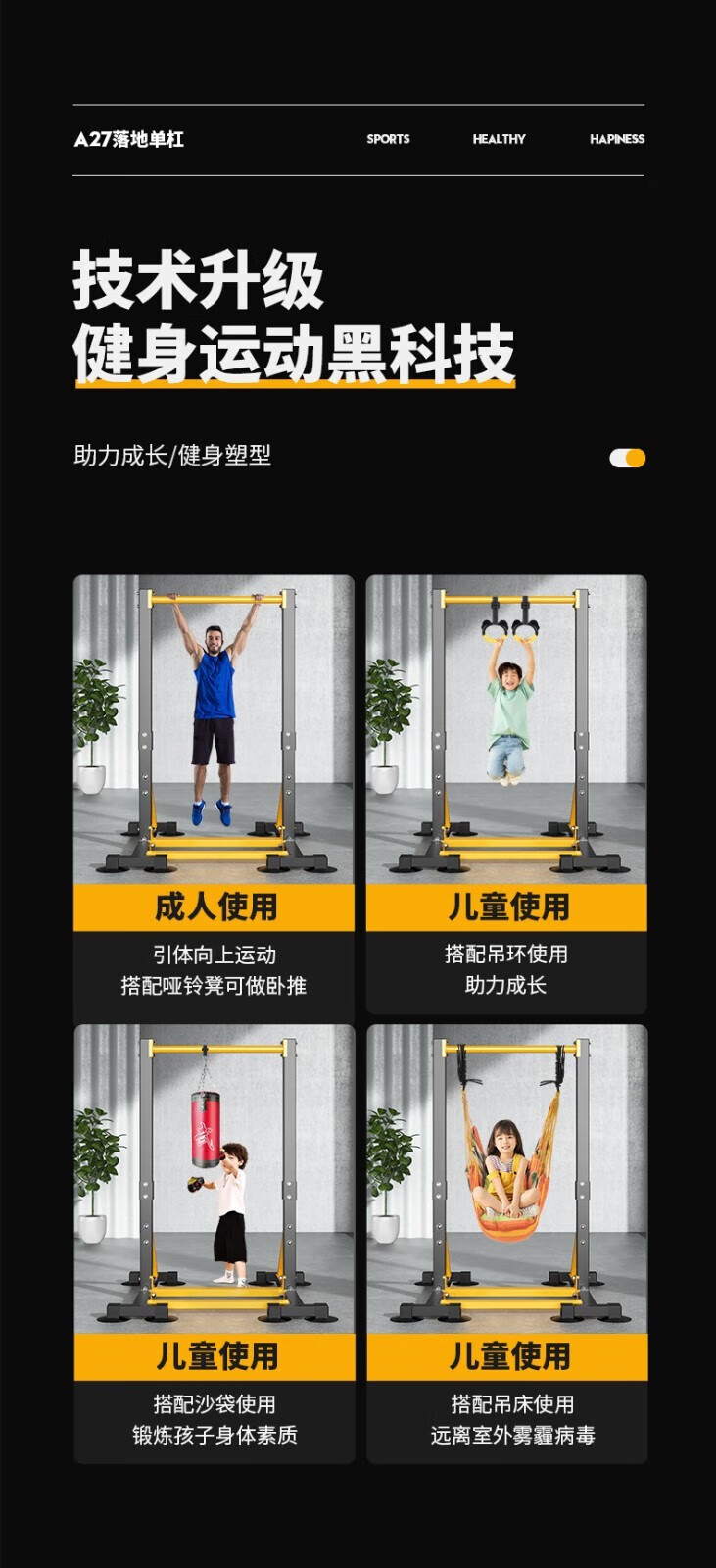 Wankai horizontal bar indoor adult student high school entrance examination pull-up device home swing stretch bar home fitness equipment newly upgraded suction cup base load-bearing 1500 pounds
