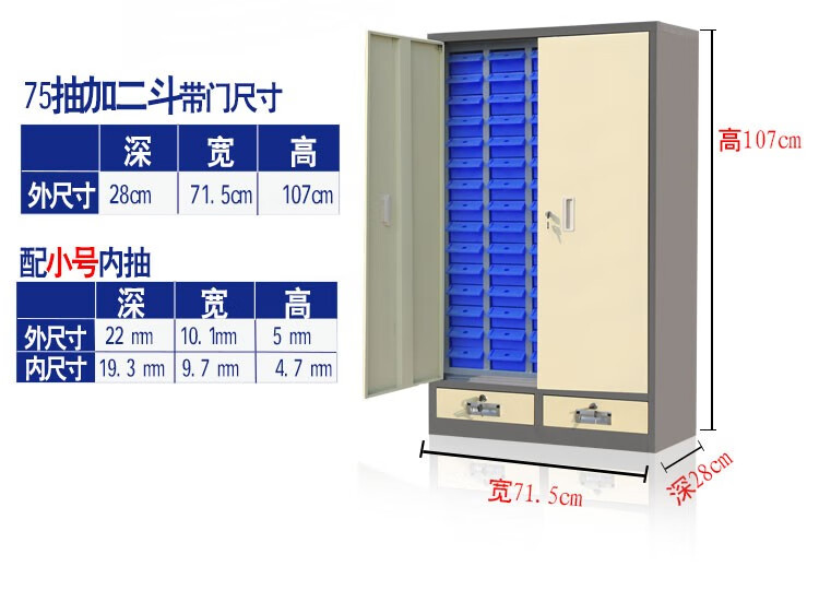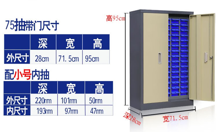 Yarun parts cabinet drawer type tool cabinet electronic components cabinet screw cabinet sample cabinet material tool cabinet thickness 0.9mm purple 200 drawer type thickened door