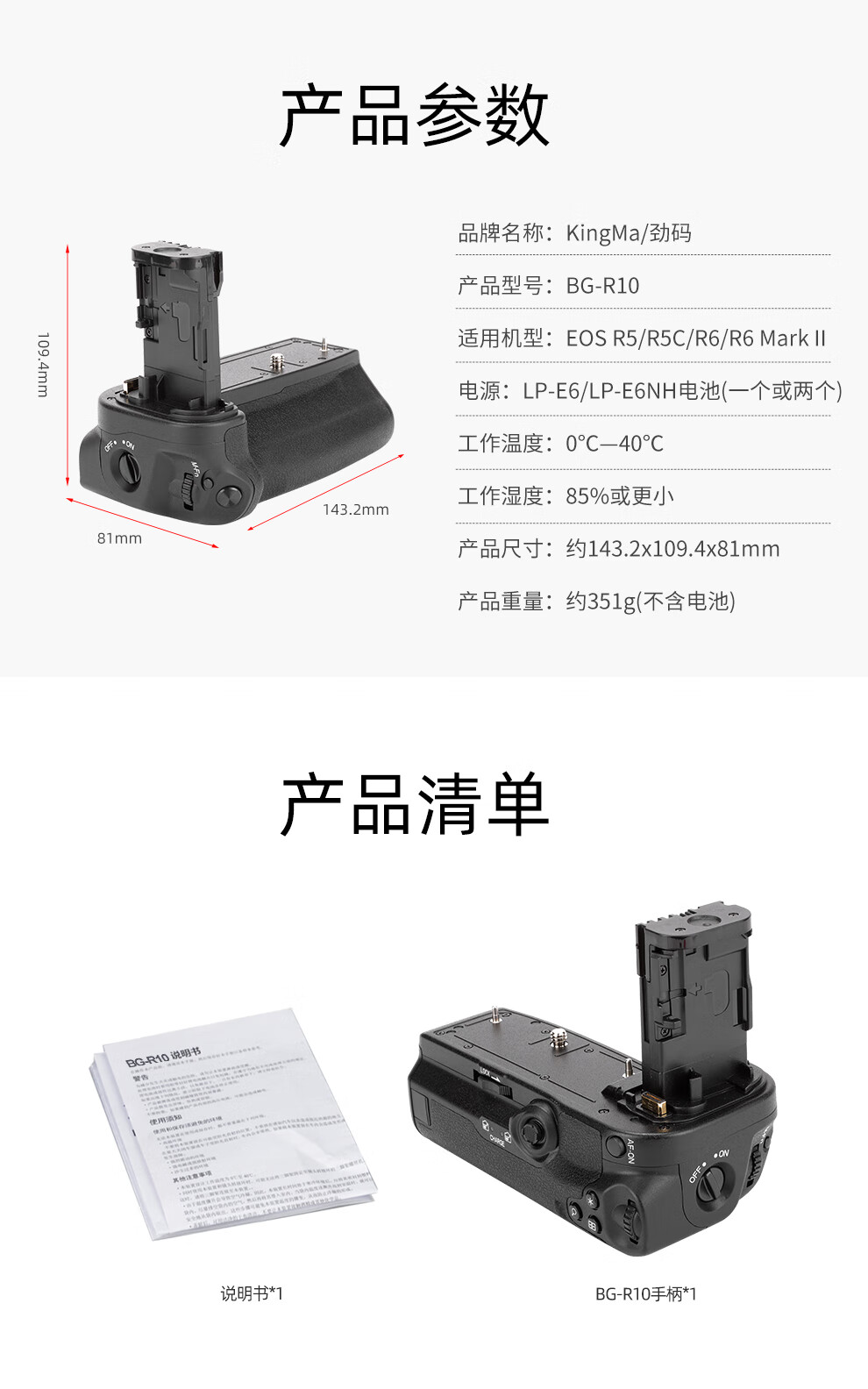Jinma BG-R10 handle battery box is suitable for EOS R5 R5C R6 second generation Mark II full-frame mirrorless camera vertical shooting accessories