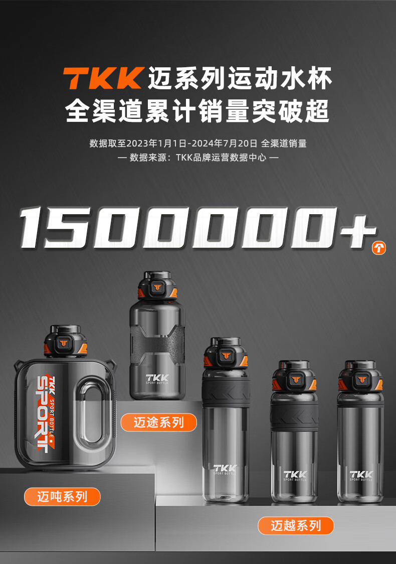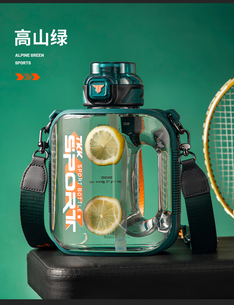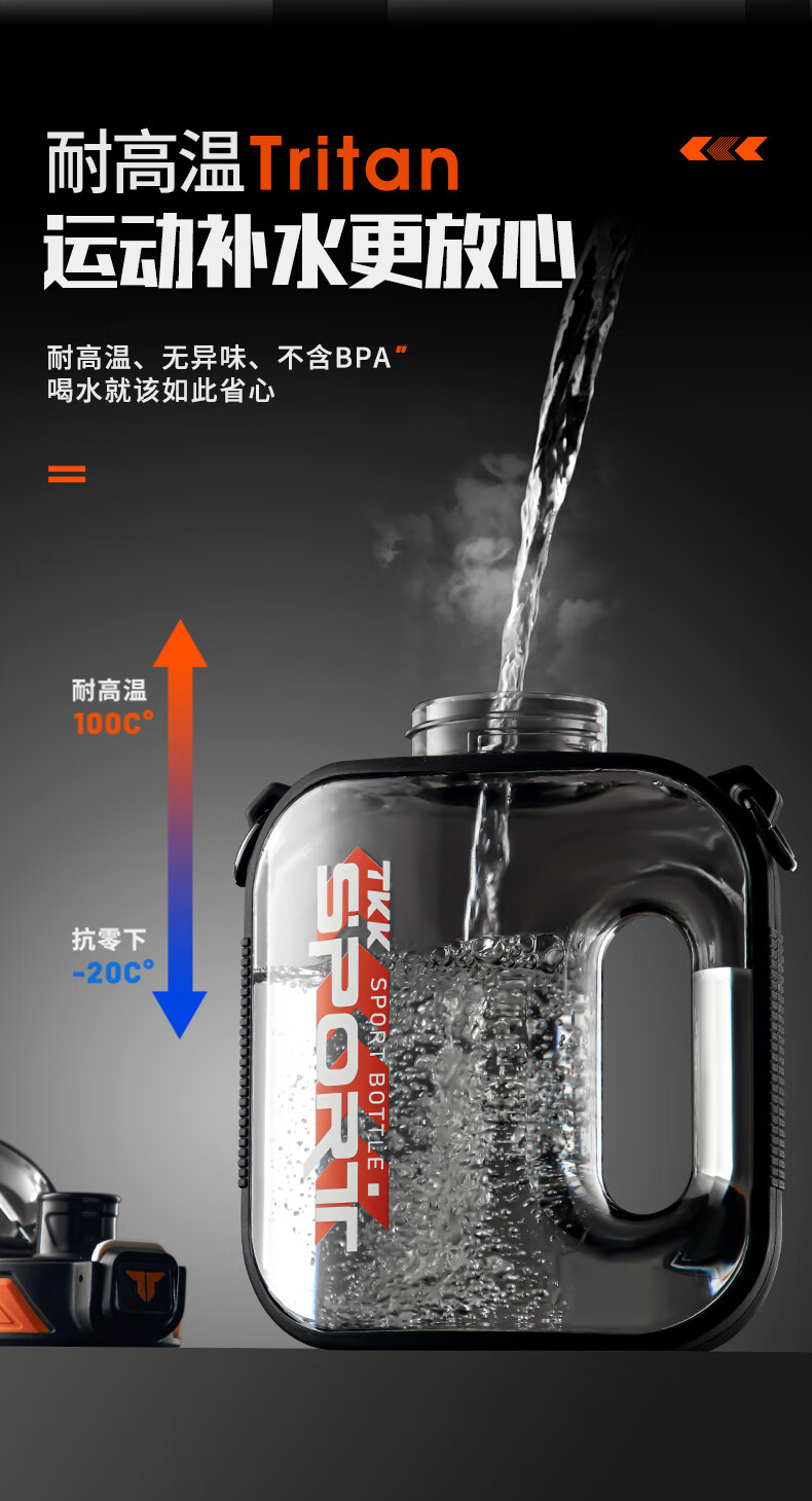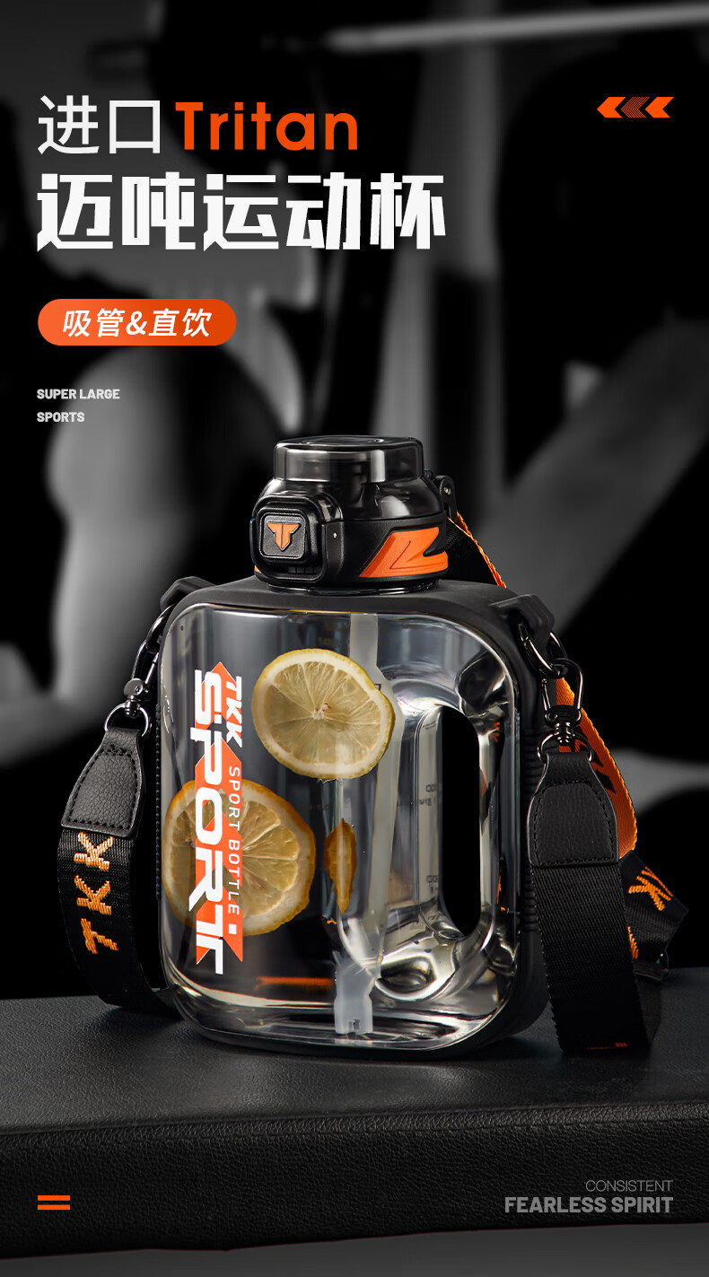 TKK Sports Water Cup Men's Extra Large Capacity Ton Bucket High Temperature Resistant Tritan Plastic Cup Military Training Fitness Ton Dun Kettle Volcanic Black High Temperature Resistant No Odor 1600ml