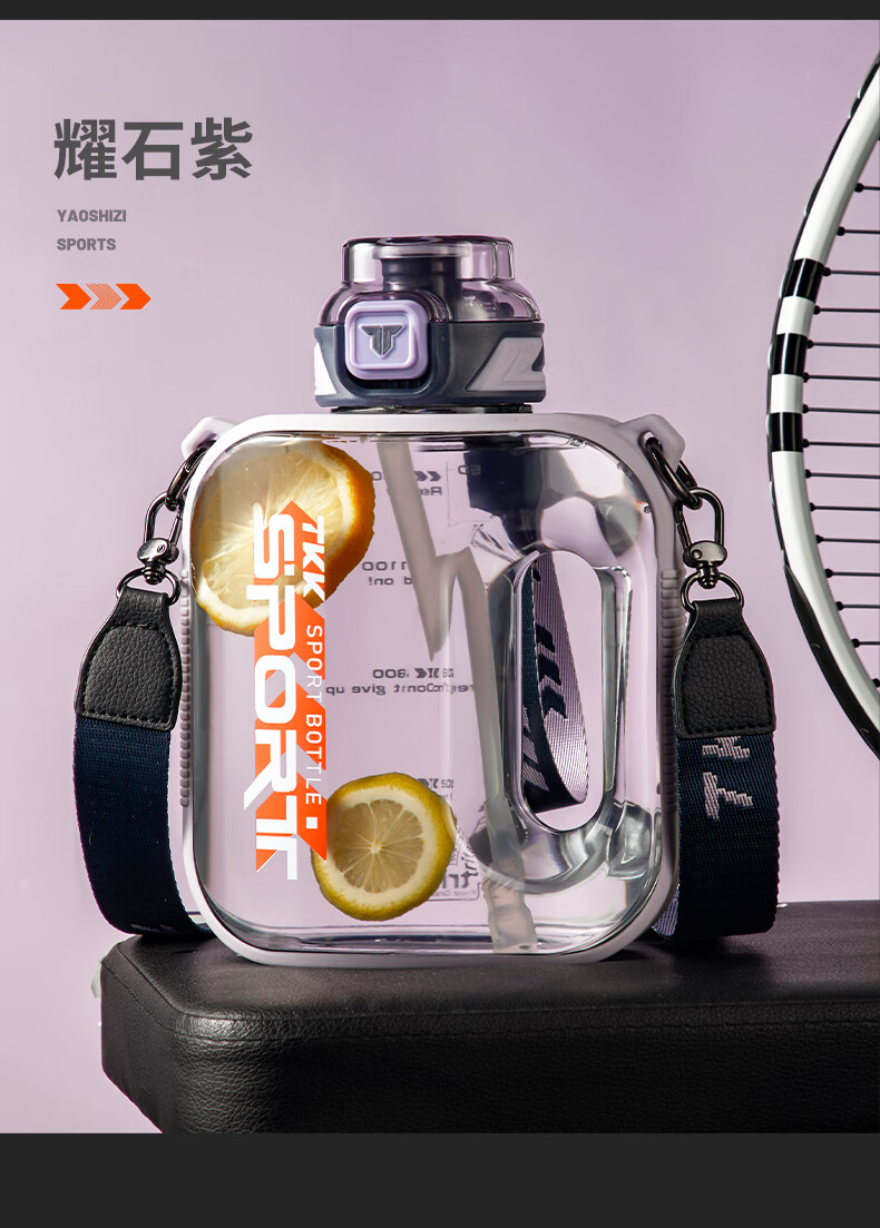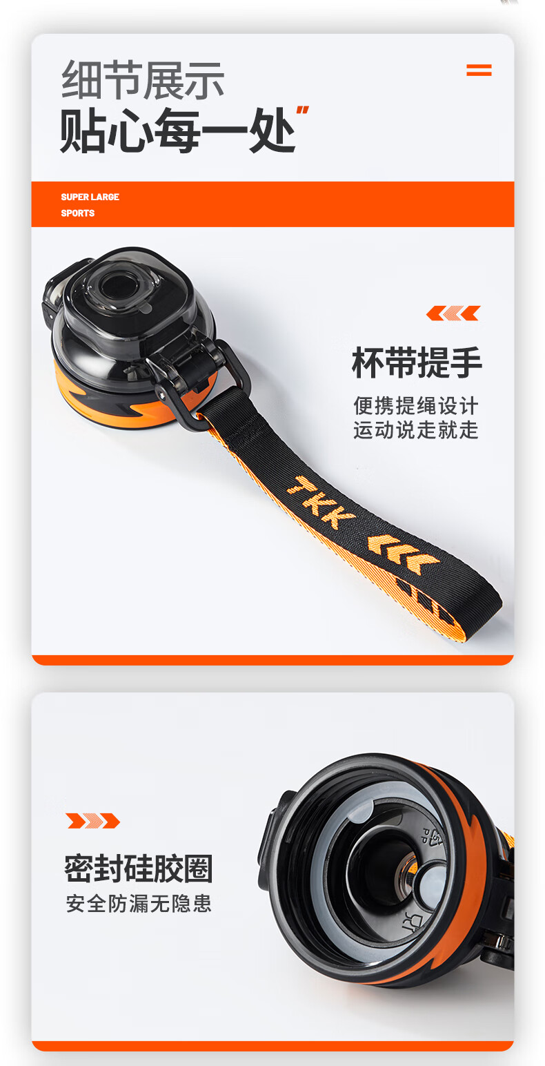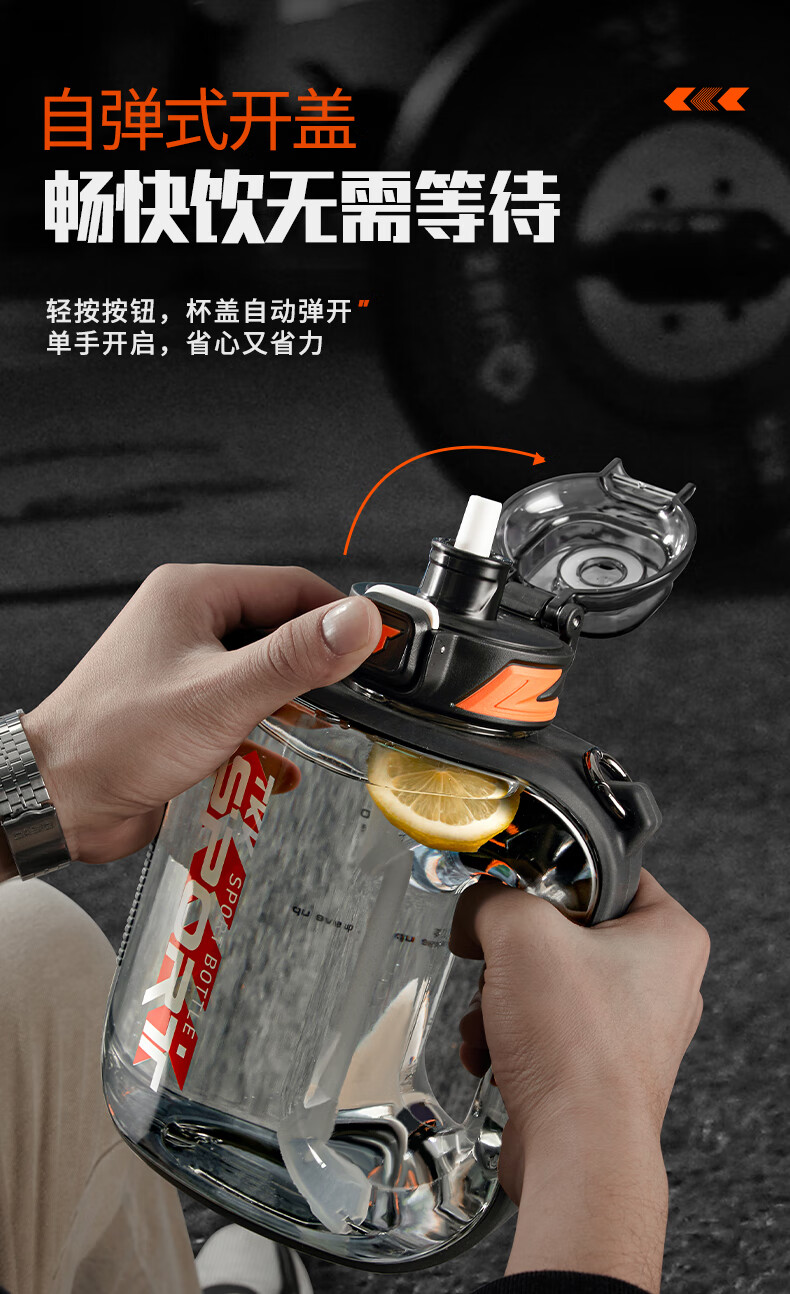 TKK Sports Water Cup Men's Extra Large Capacity Ton Bucket High Temperature Resistant Tritan Plastic Cup Military Training Fitness Ton Dun Kettle Volcanic Black High Temperature Resistant No Odor 1600ml