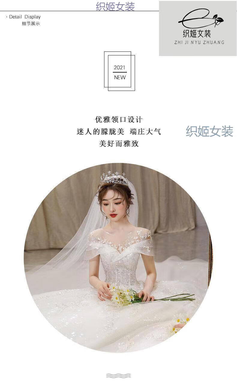 Orihime one-shoulder light wedding dress 2025 new temperament main yarn bride summer cover thick arms floor-length large tail princess style floor-length style standard mid-waist veil bustle one size M size recommended under 100 pounds