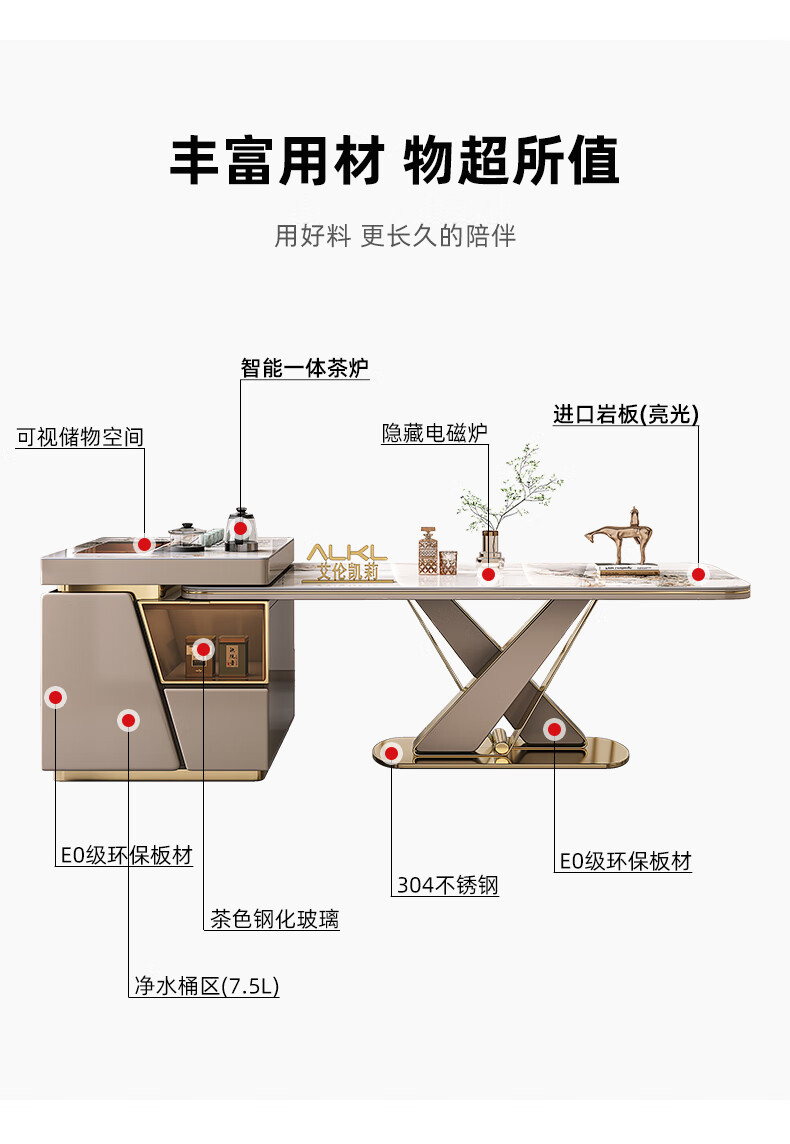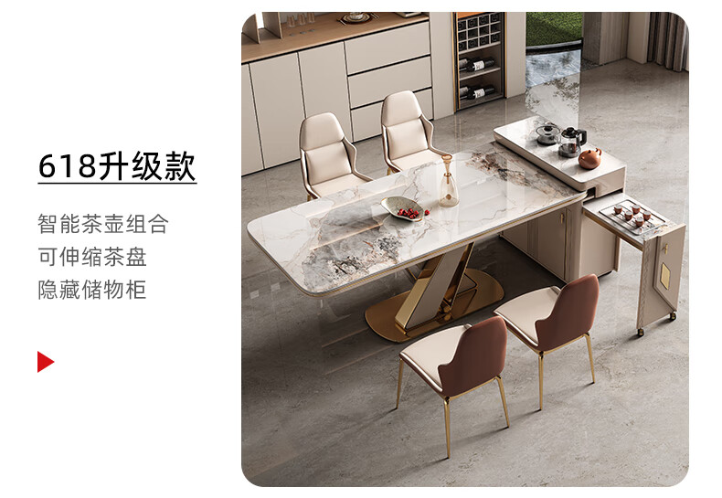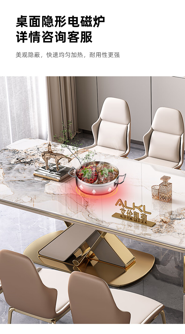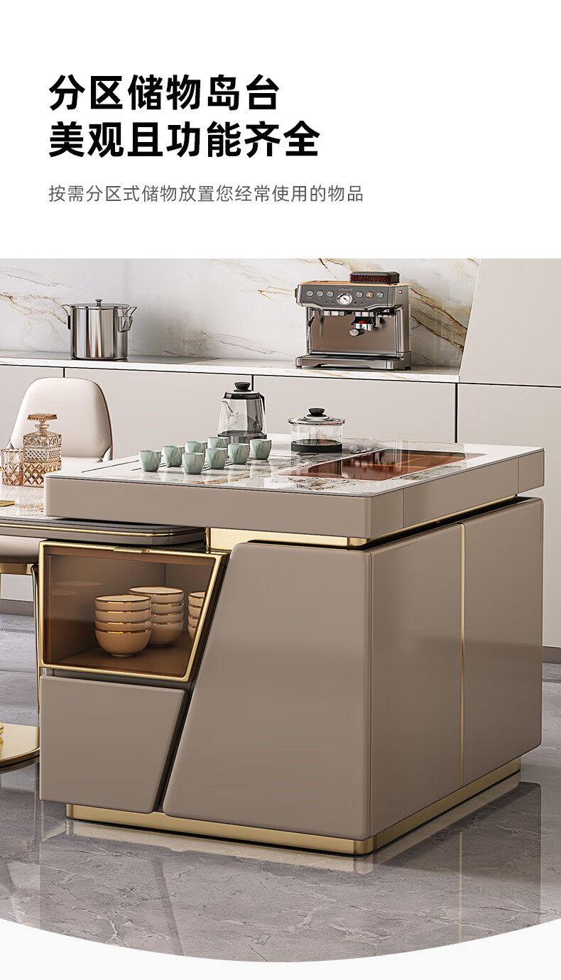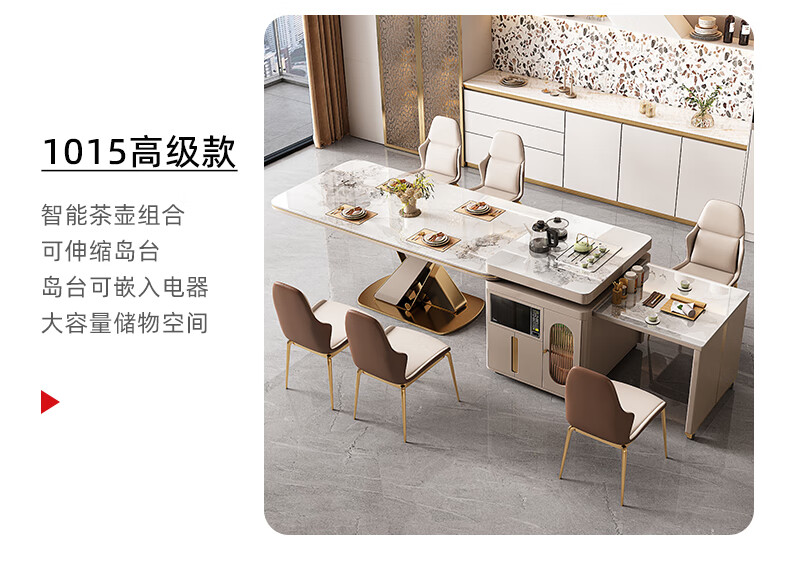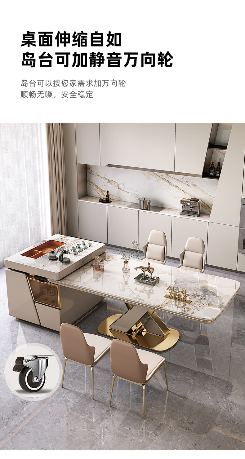 Ellen Kelly light luxury island dining table and tea table integrated retractable home high-end restaurant multi-functional slate dining table and chair combination 1.8M retractable high-end island dining table