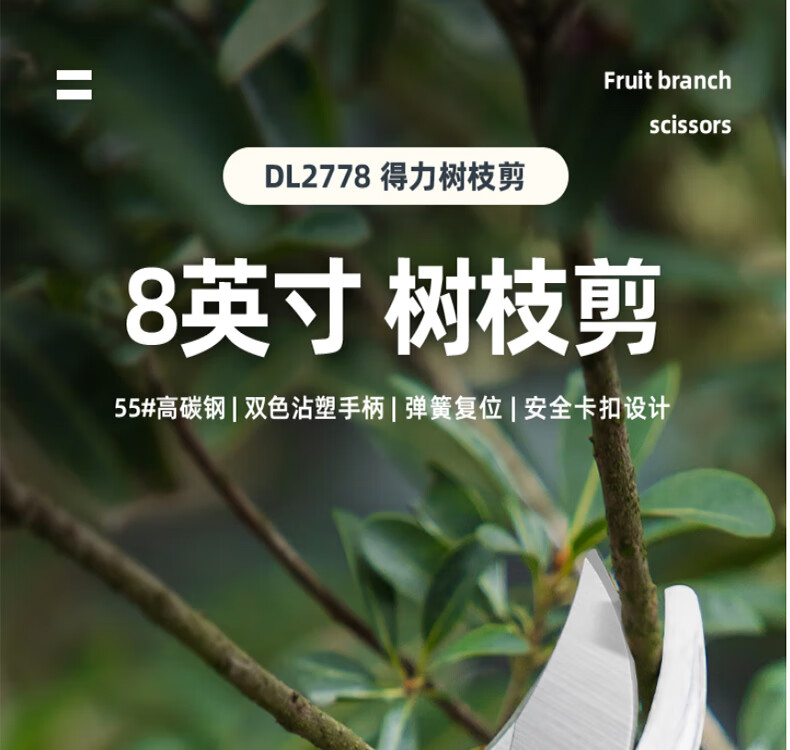 Deli pruning fruit tree pruning scissors garden pruning branches garden labor-saving flower pruning scissors household tools scissors artifact 8-inch labor-saving model high carbon steel pruning shears