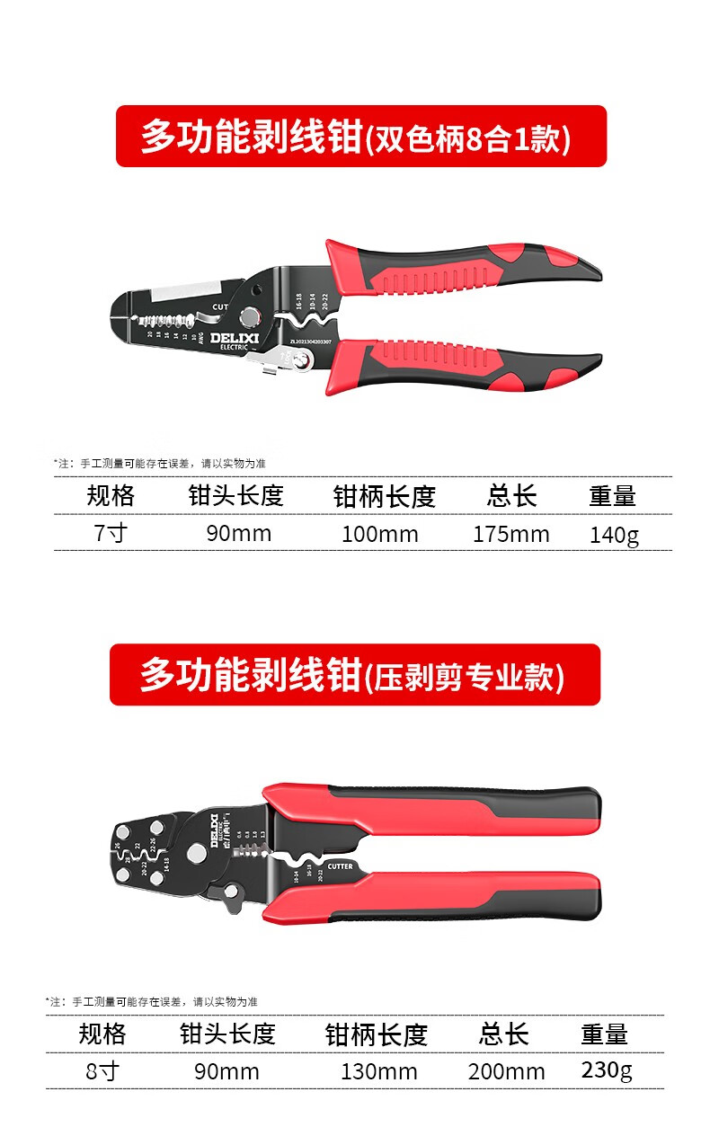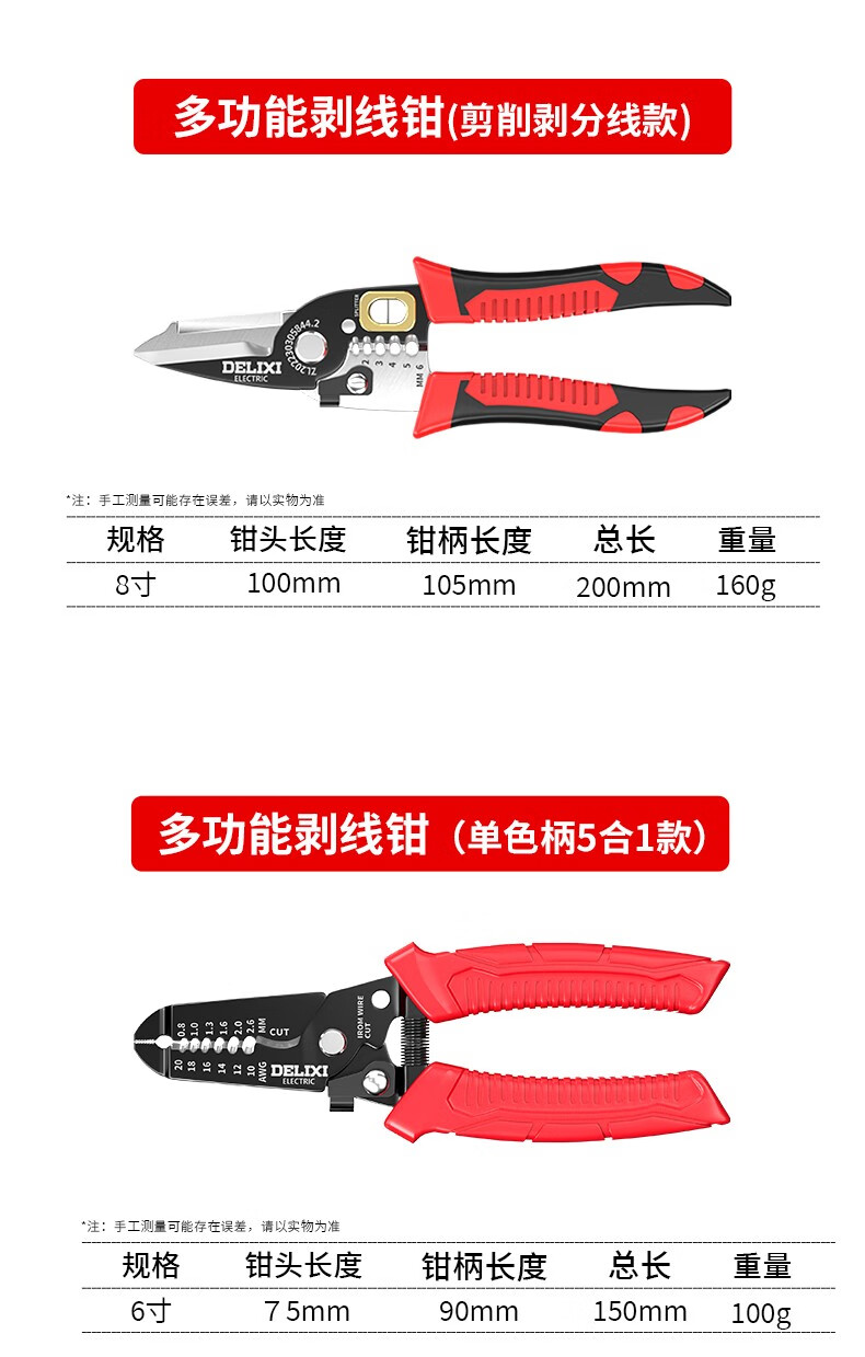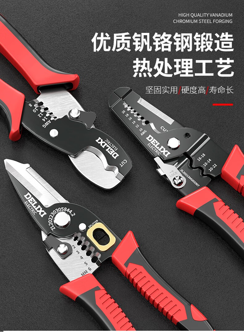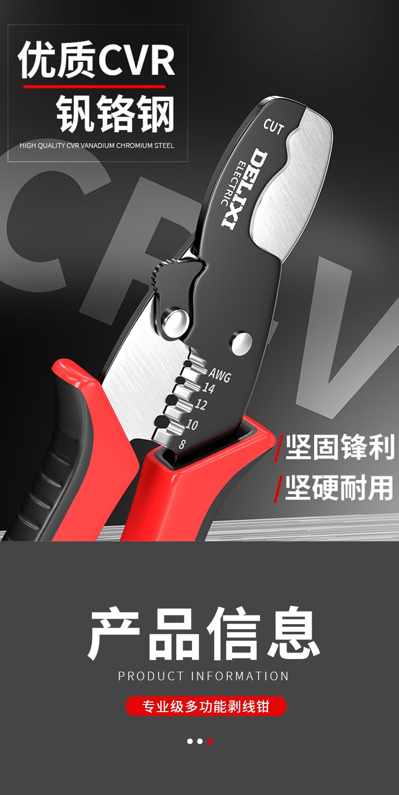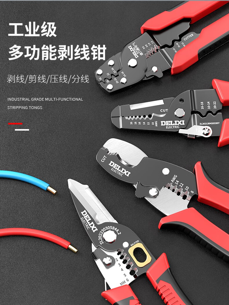 Delixi Electrical Wire Stripping Pliers Electrician Wire Unplugging and Wire Cutting Pliers 7-inch Multifunctional Cable Wire Wiring Artifact Stripper Stripping Pliers Tool 9-in-1 Multifunctional Wire Stripping Pliers + Electrical Tape