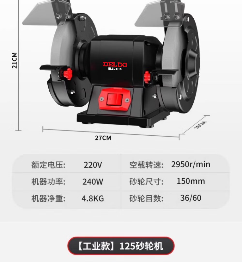 Delixi desktop grinder small electric grinder grinder special grinder household industrial grade protective cover professional upgraded 125 grinder