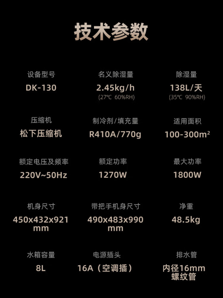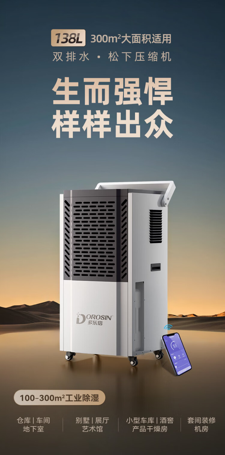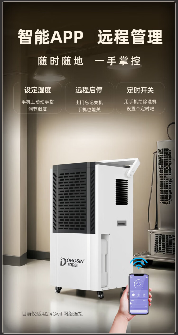 Duluxin DK-130 dehumidifier 138L/day APP mobile remote control 8-liter large water tank High-power dehumidifier dedicated to dehumidification in villa basement workshop warehouse 138L/day smart model Panasonic compressor