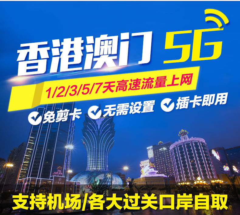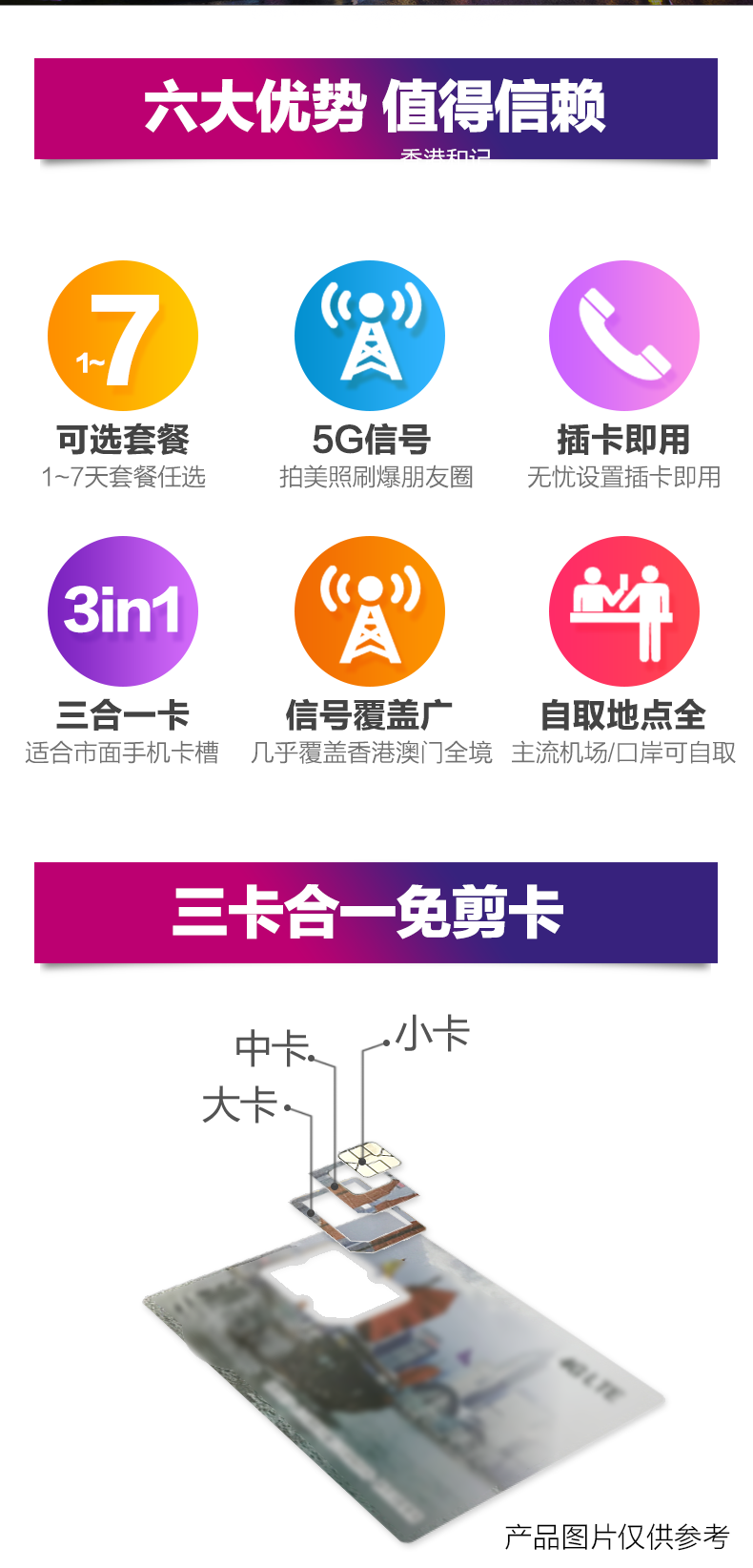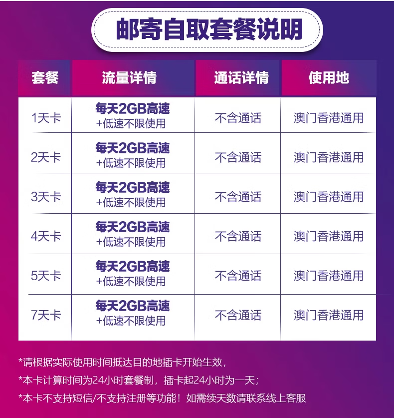 Hong Kong and Macau calling card 5G/4G mobile phone 1/2/3-day unlimited traffic card package for Hong Kong and Macau can be picked up by mail Hong Kong and Macau 2-day unlimited traffic card