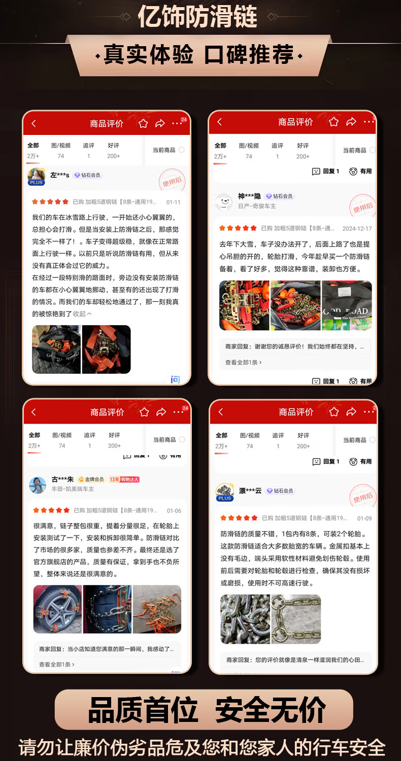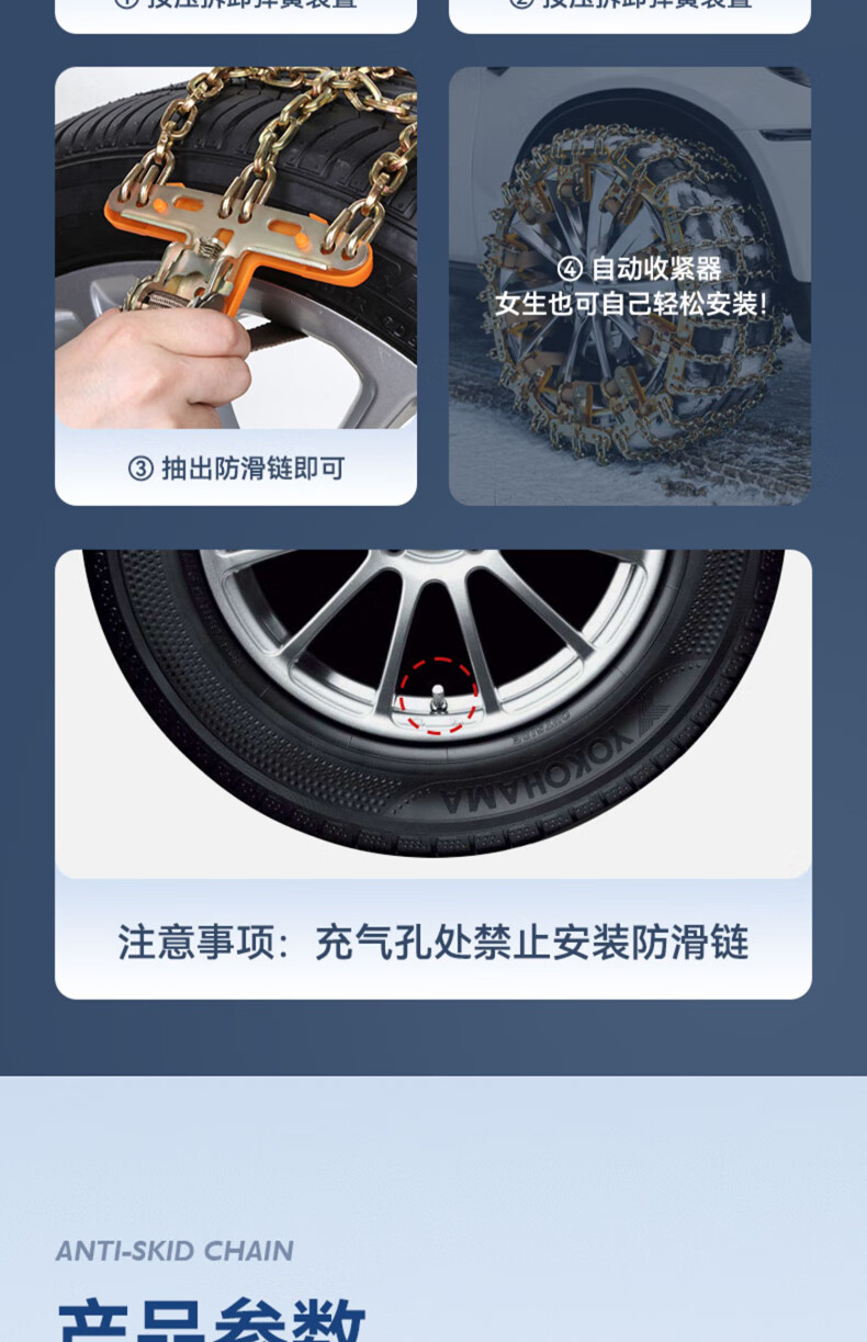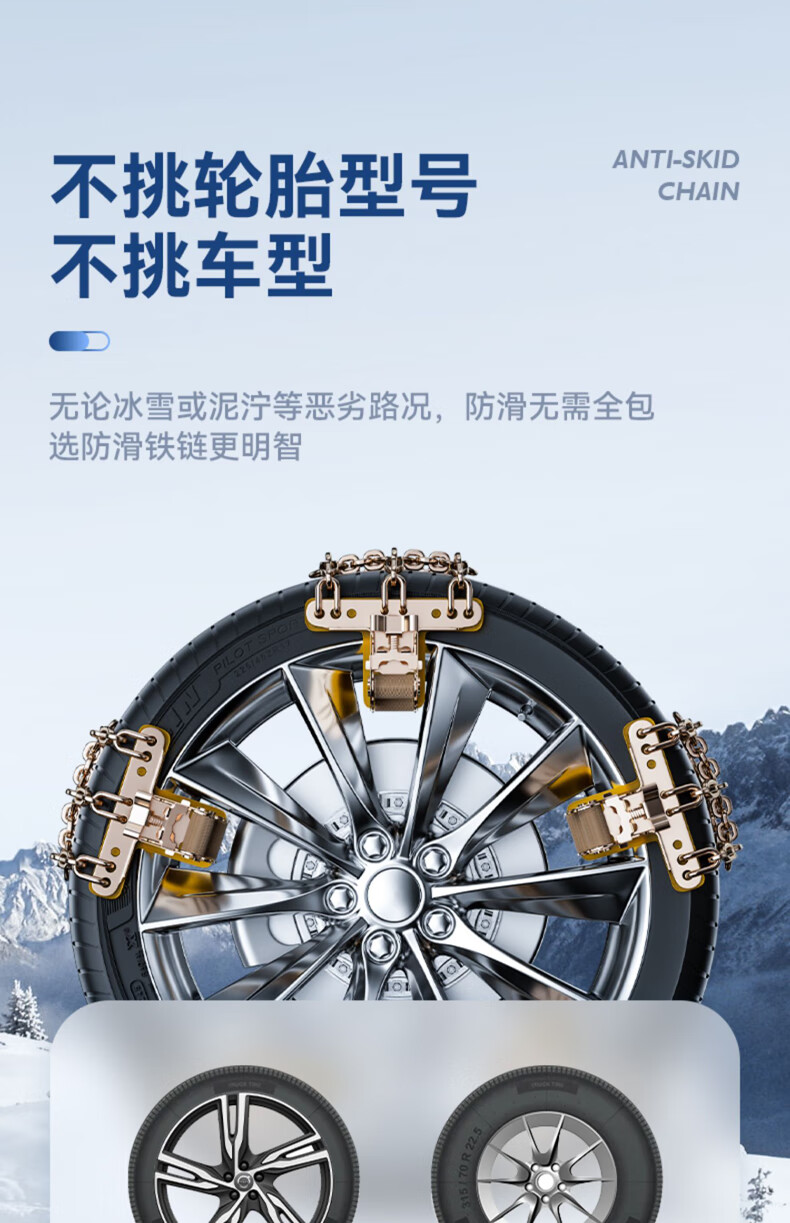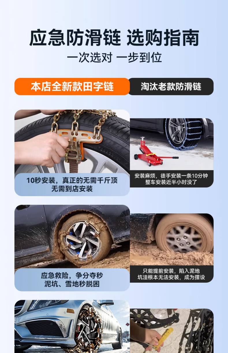 Yishi car anti-skid chain, SUV car, winter snow, universal bold special manganese steel chain, metal all-inclusive, no damage to tires, bold Tianzi steel chain 8 pieces, universal 195-275, fast arrival in Central China and North China