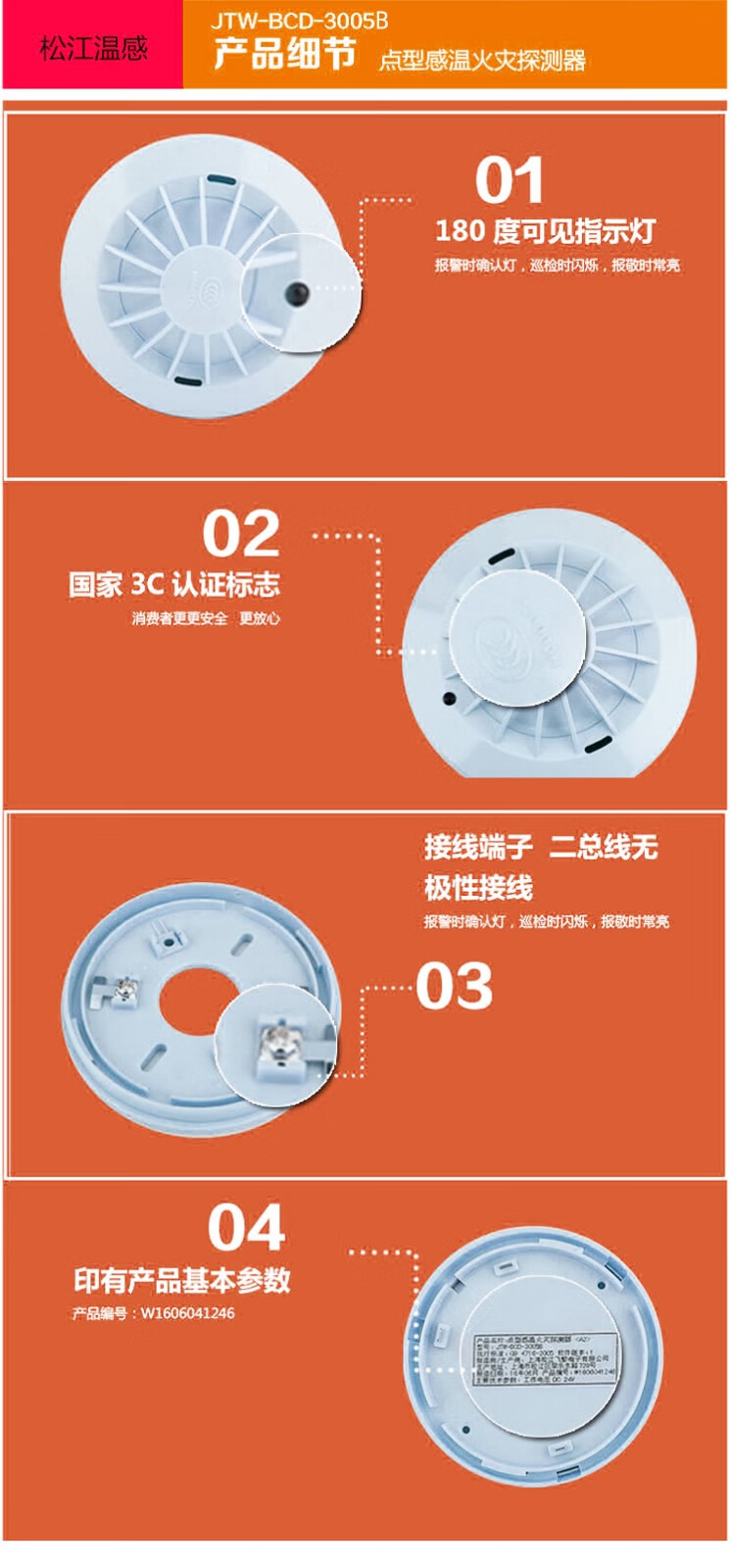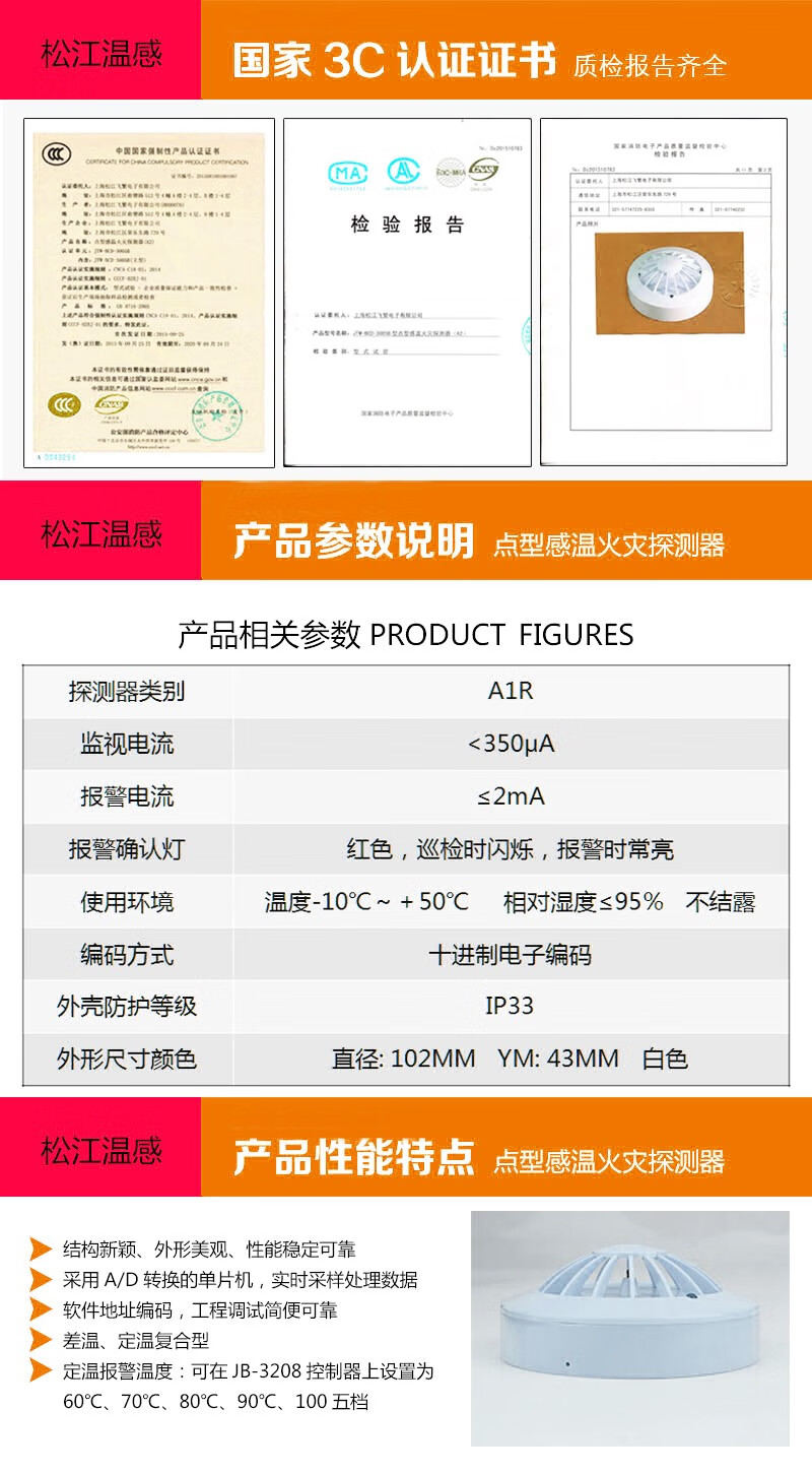 Shanghai Songjiang temperature sensing JTW-BCD-9005A point type temperature sensing fire detector replaces 3005A/3005B JTW-BCD-9005A does not include the base