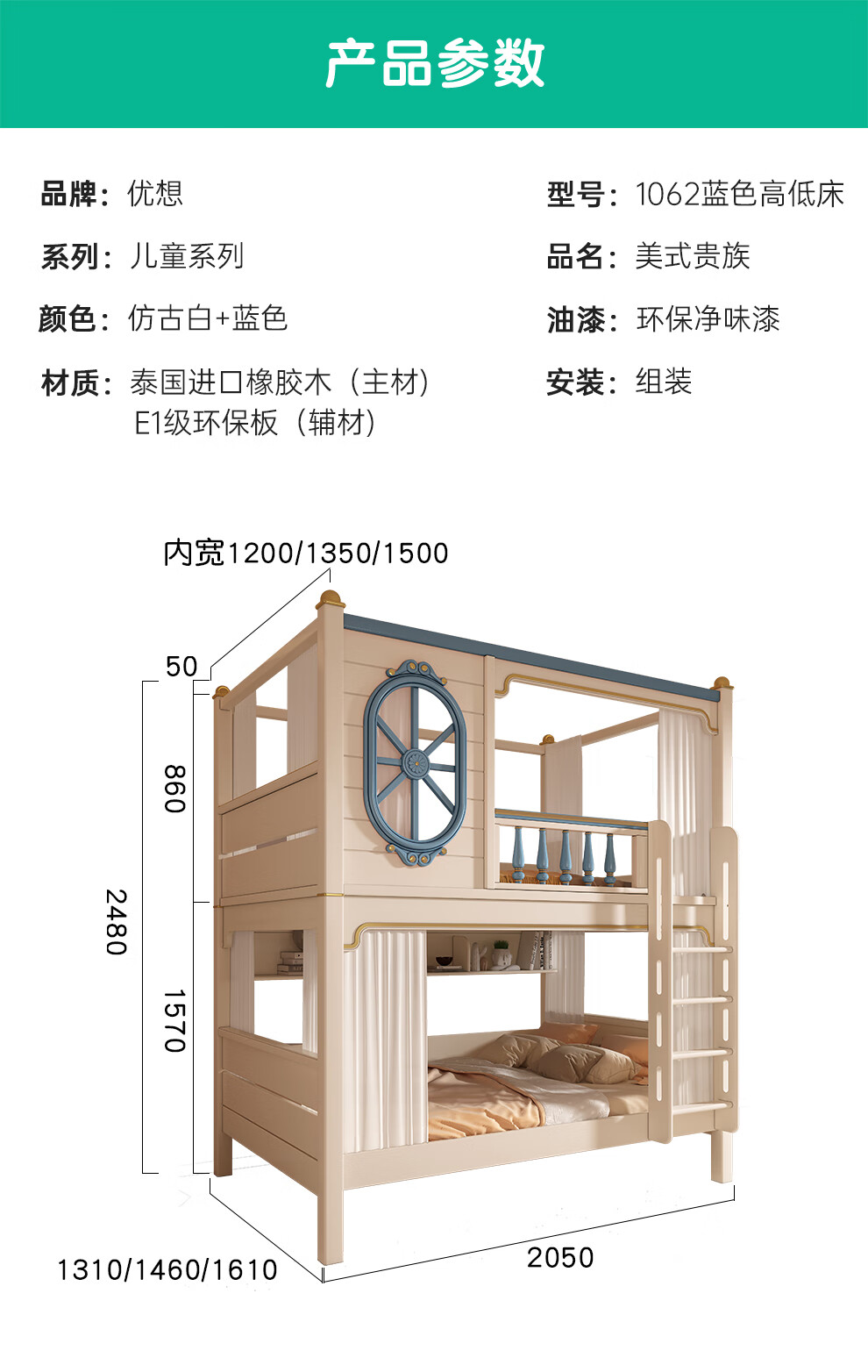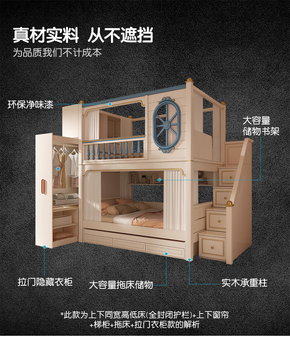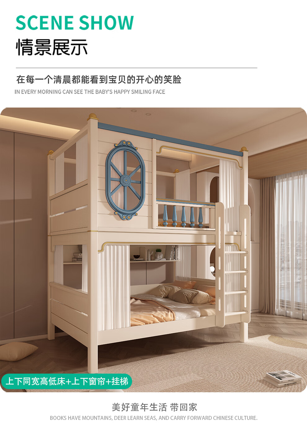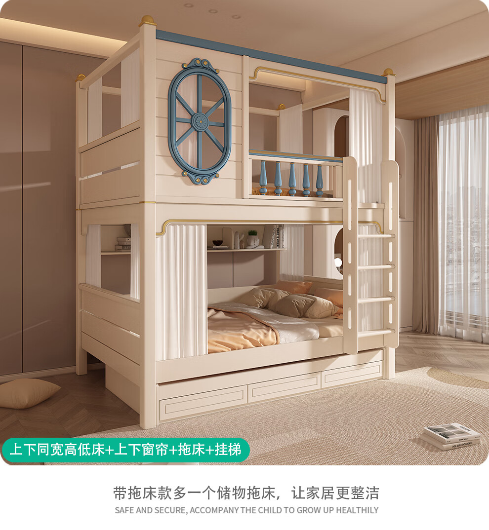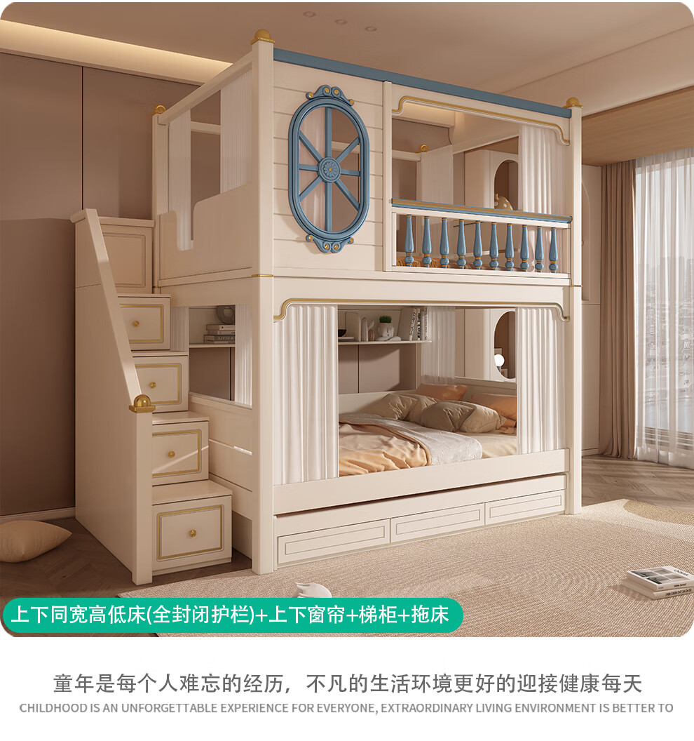 Youxiang high and low beds, mother and child beds, bunk beds, mother and child beds, boy beds, double children's beds, plus high guardrails, upper and lower beds + drag beds + ladder cabinets + upper and lower six-sided curtains 1500mm*1930mm
