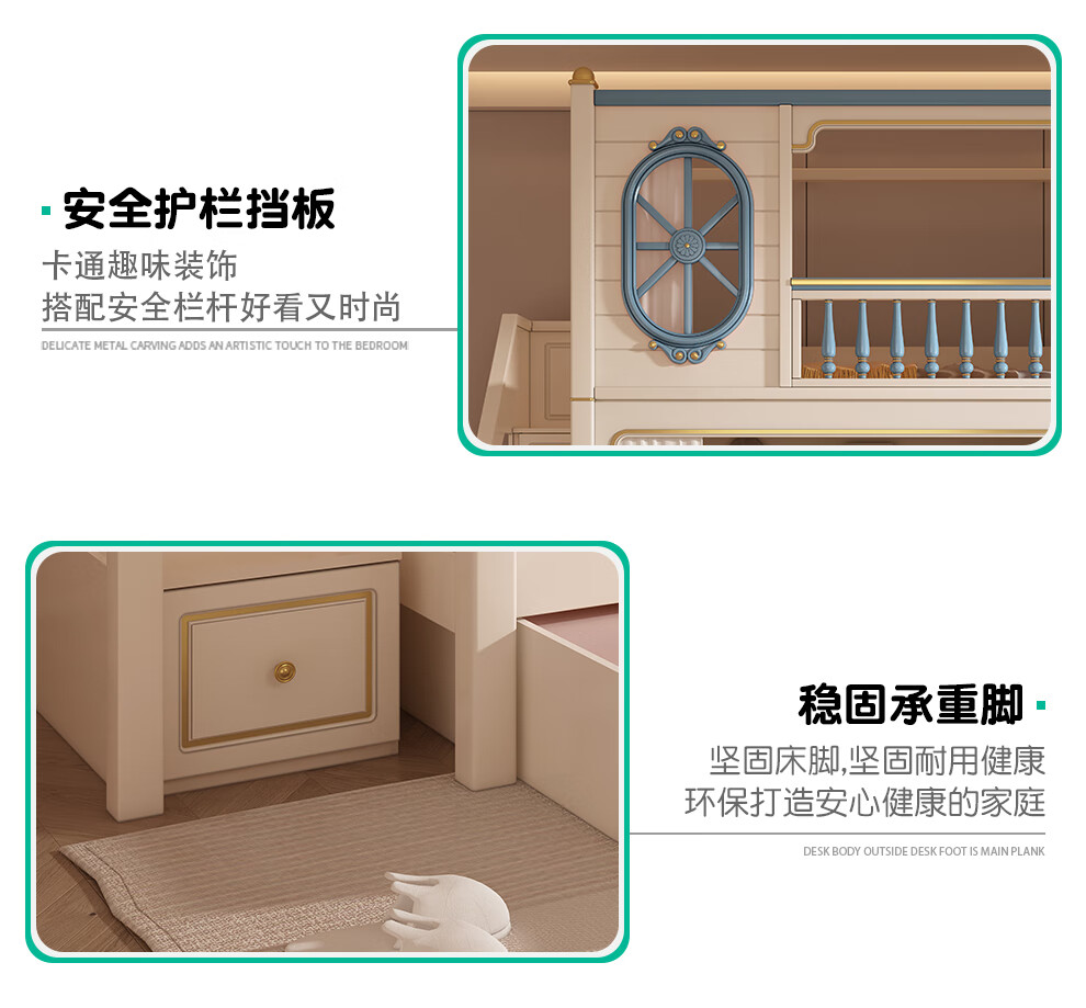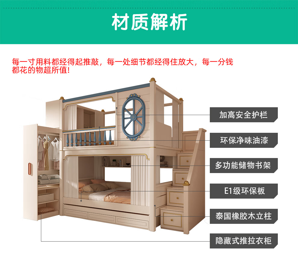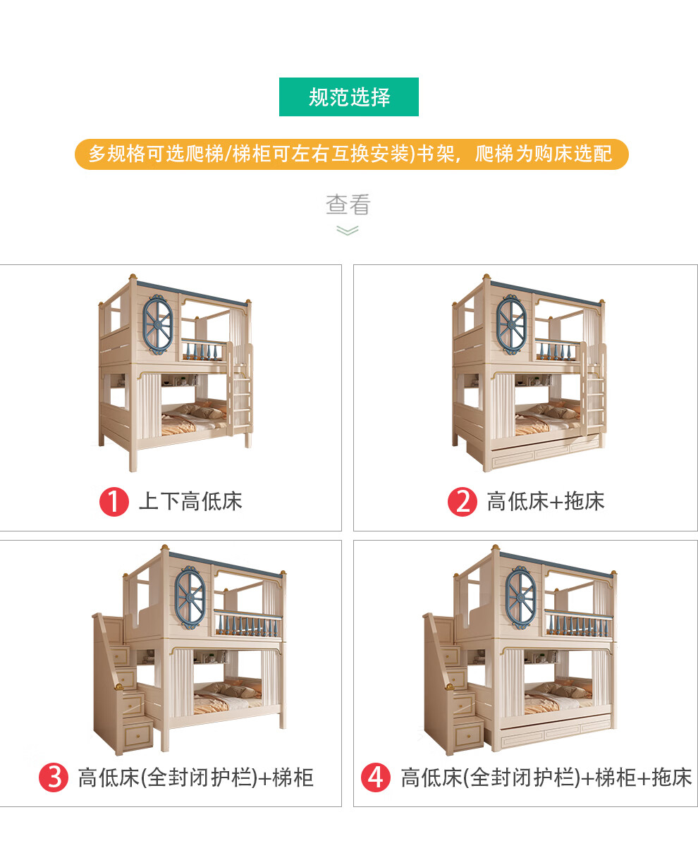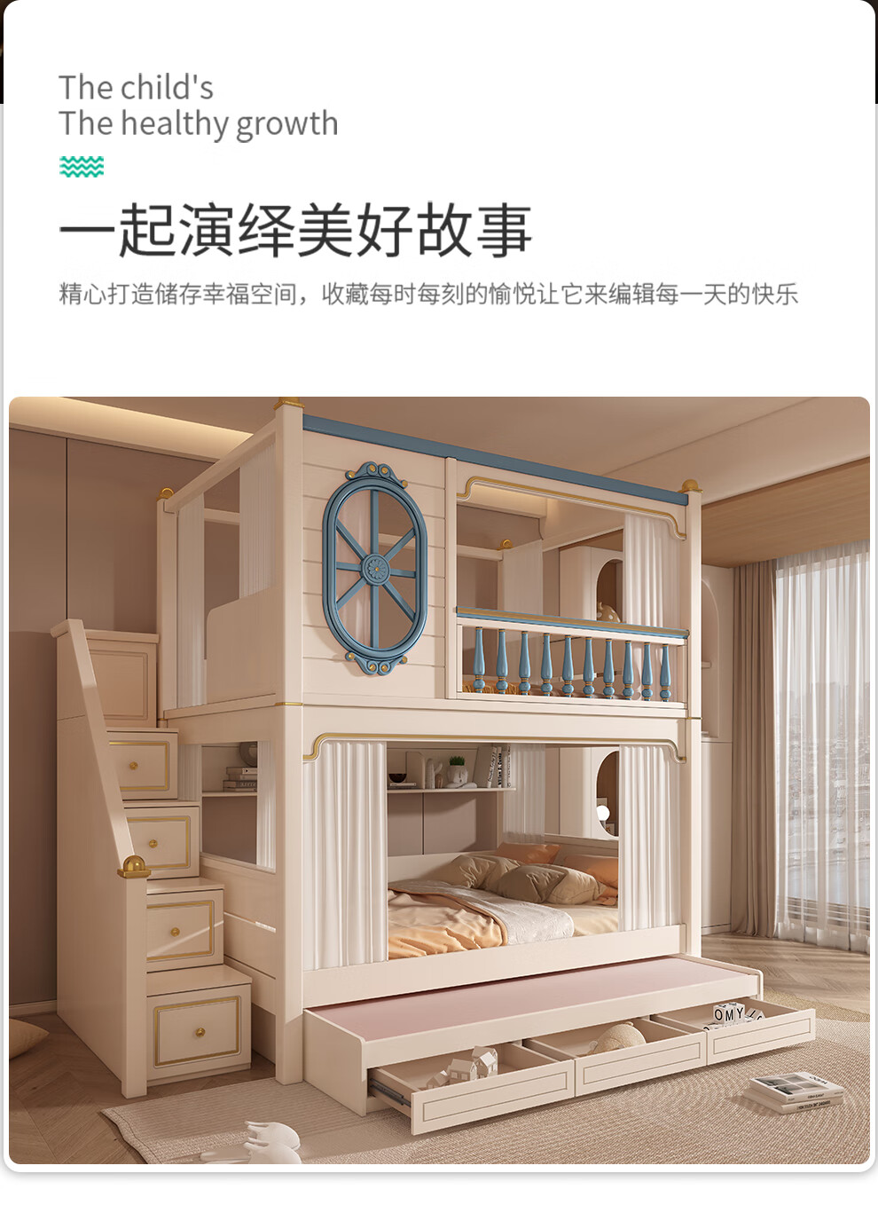 Youxiang high and low beds, mother and child beds, bunk beds, mother and child beds, boy beds, double children's beds, plus high guardrails, upper and lower beds + drag beds + ladder cabinets + upper and lower six-sided curtains 1500mm*1930mm