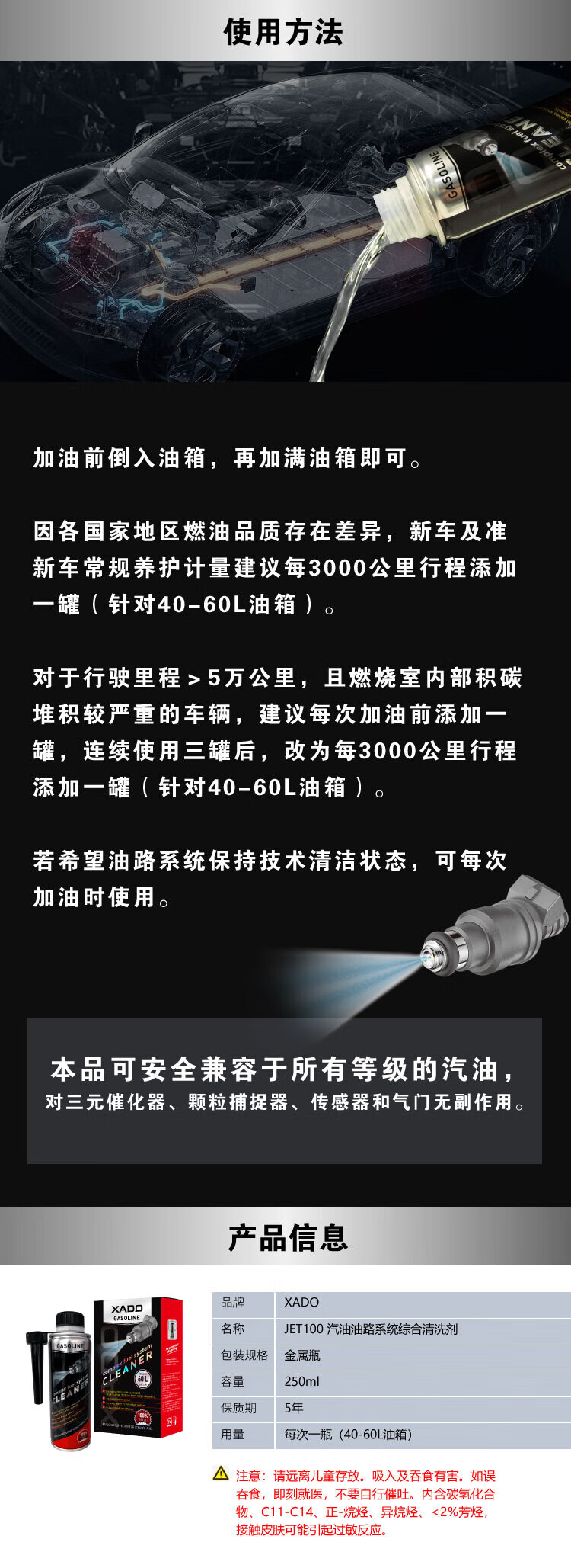XADO Hado JET100 gasoline oil line comprehensive cleaning agent removes carbon deposits and cleans fuel injectors to improve power 250ML gasoline version