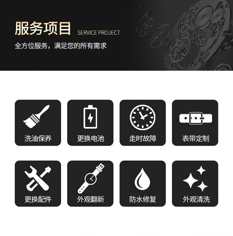 Watch repair shop, watch repair service, watch mechanical watch maintenance, repair, oil cleaning, battery replacement, refurbishment and polishing of famous watches