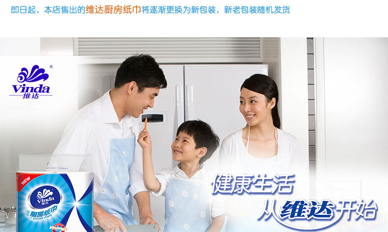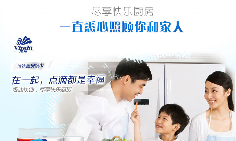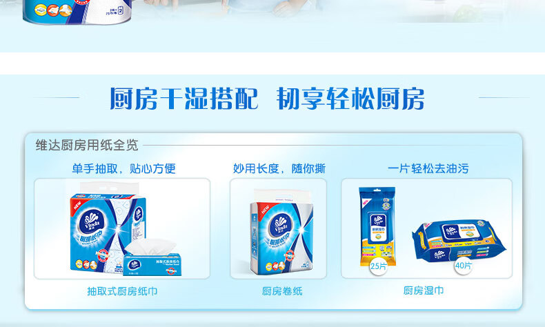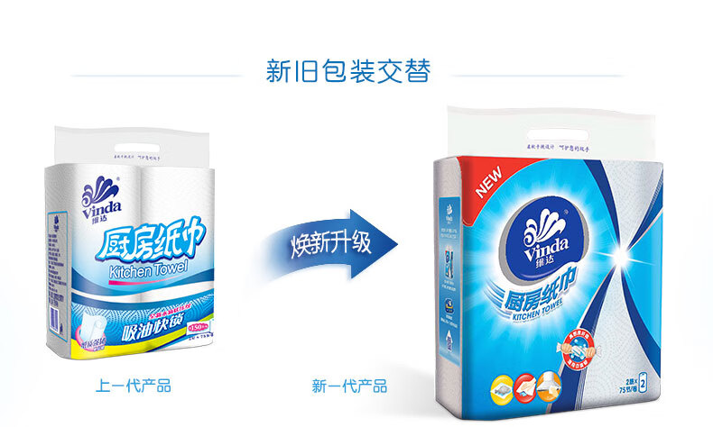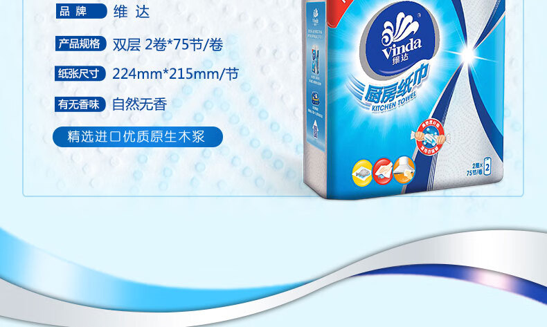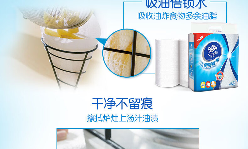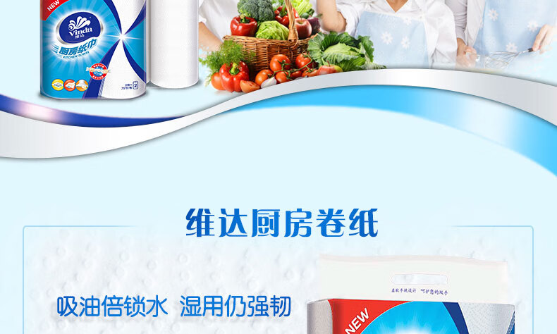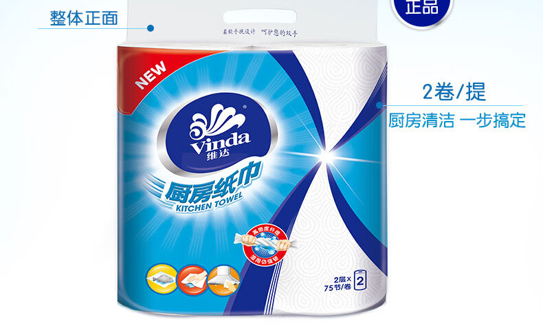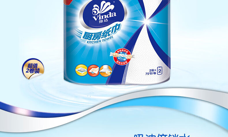 Vinda kitchen paper 75 knots/roll Household oil-removing and oil-absorbing paper kitchen paper toilet paper 2 layers 75 knots*2 rolls